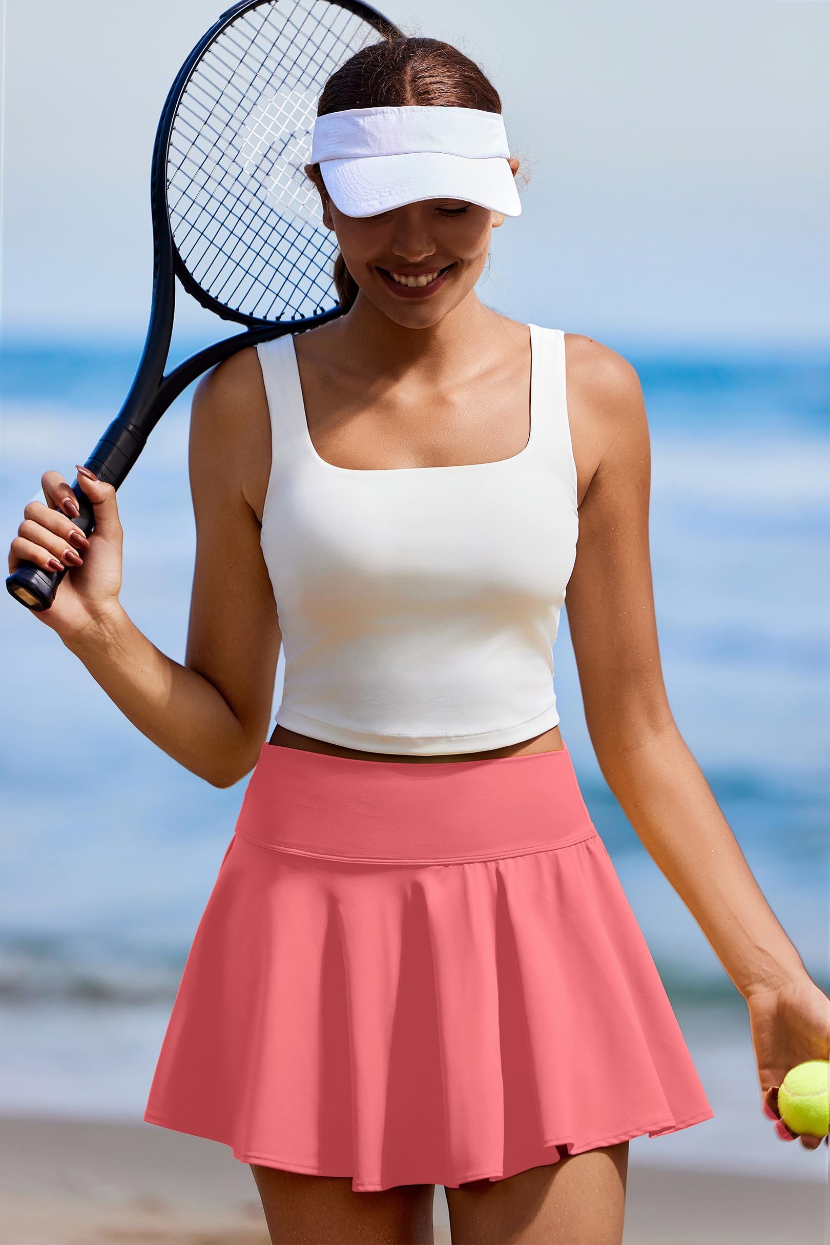 Stylish Pleat Design: The 14" workout skirt enhances your sporty-chic with cute flowy pleats, while making you move freely. Please consider your height and preferred length when ordering.