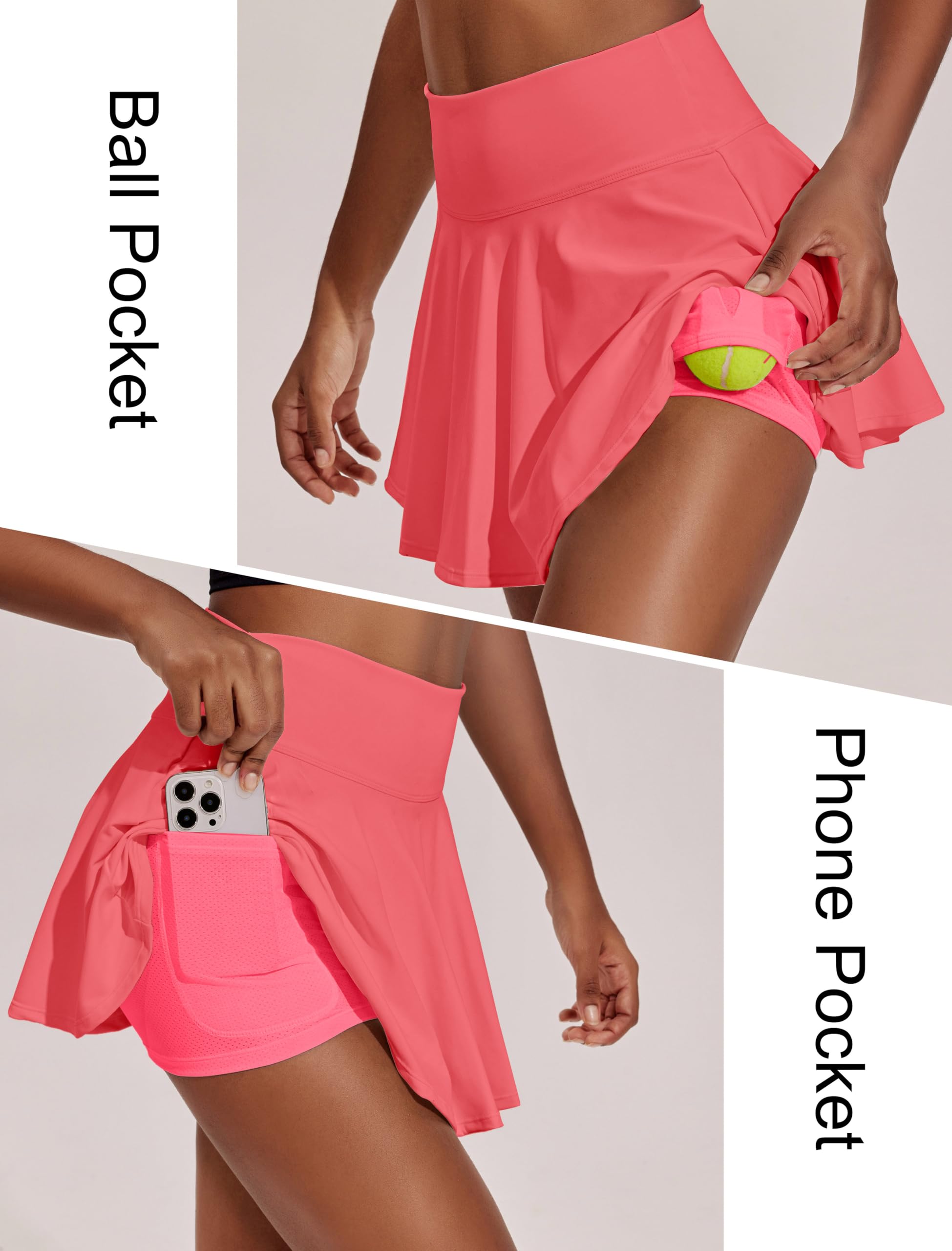 2 Pockets on Inner Shorts: The athletic skort features a built-in shorts liner with a left upside down pocket and a right phone pocket.