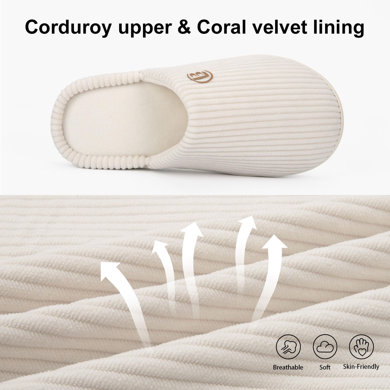 Premium Fabric:Crafted with quality corduroy for the upper and lined with skin-friendly, breathable coral fleece, these women’s slippers keep feet dry and deliver ultimate comfort with every step.