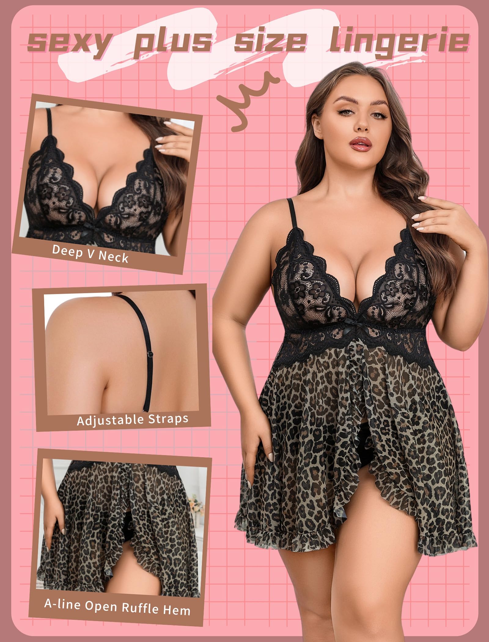 【Unique Design】This plus size sexy lingerie is featuring deep V-neck, adjustable spaghetti straps. The details of the lingerie fully meet your imagination.