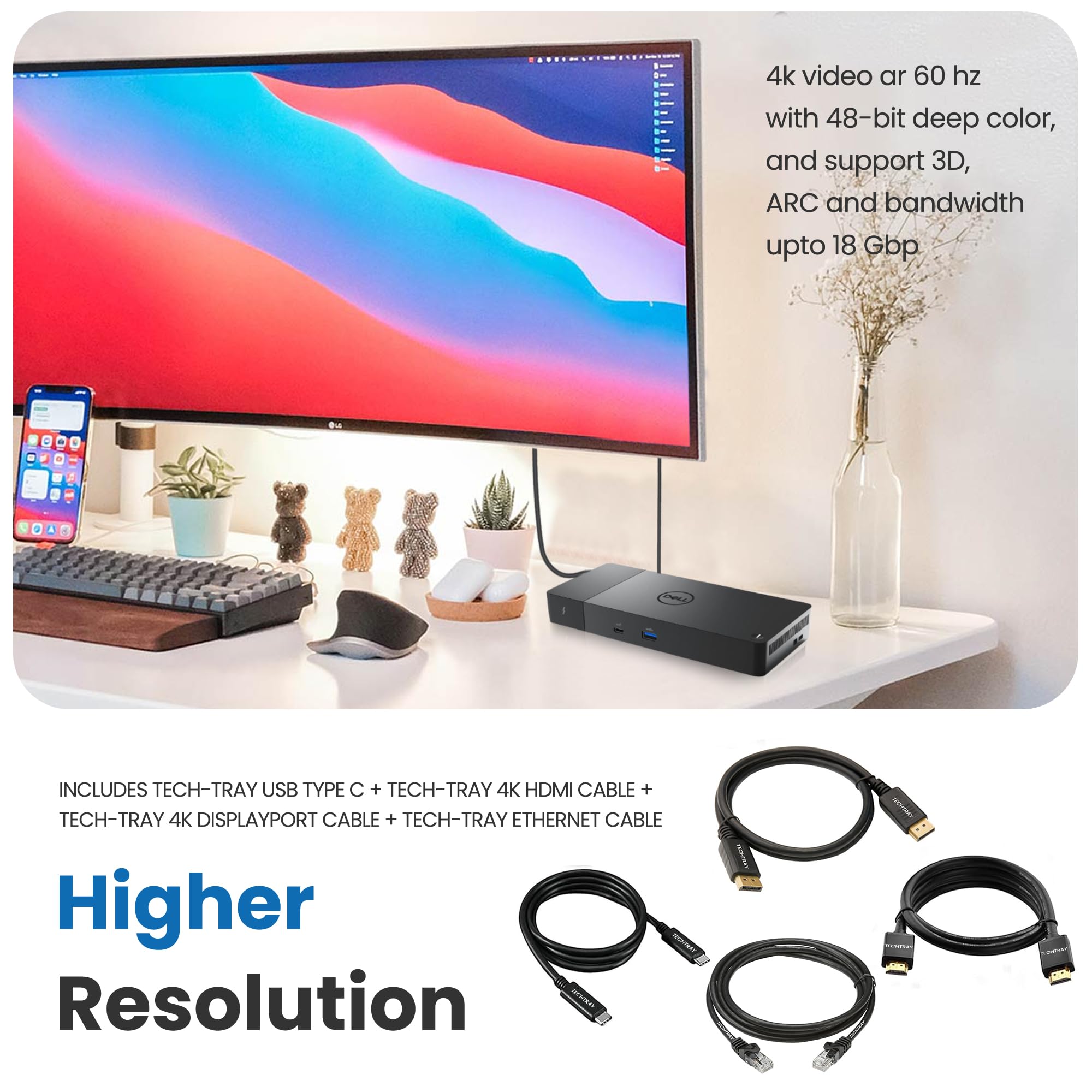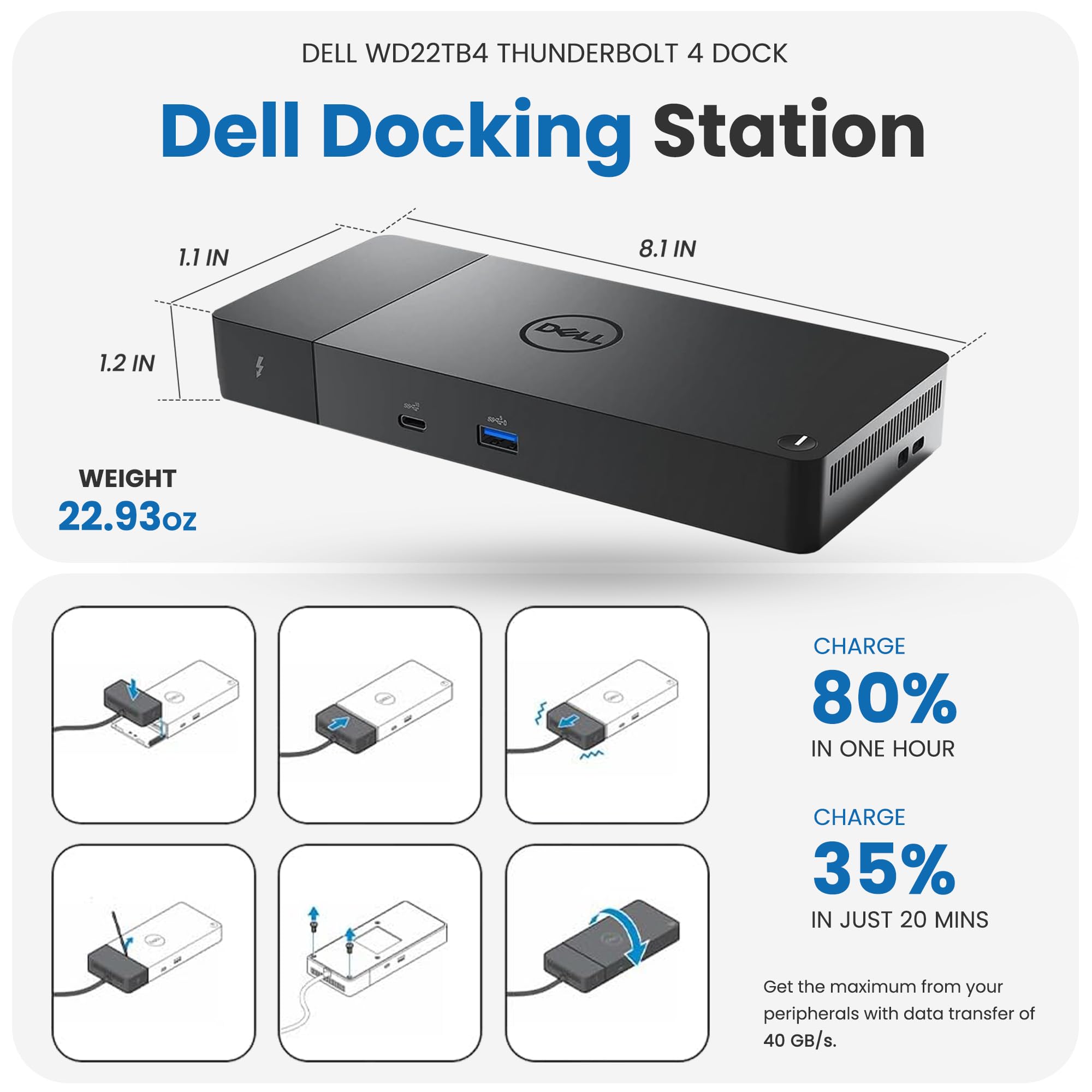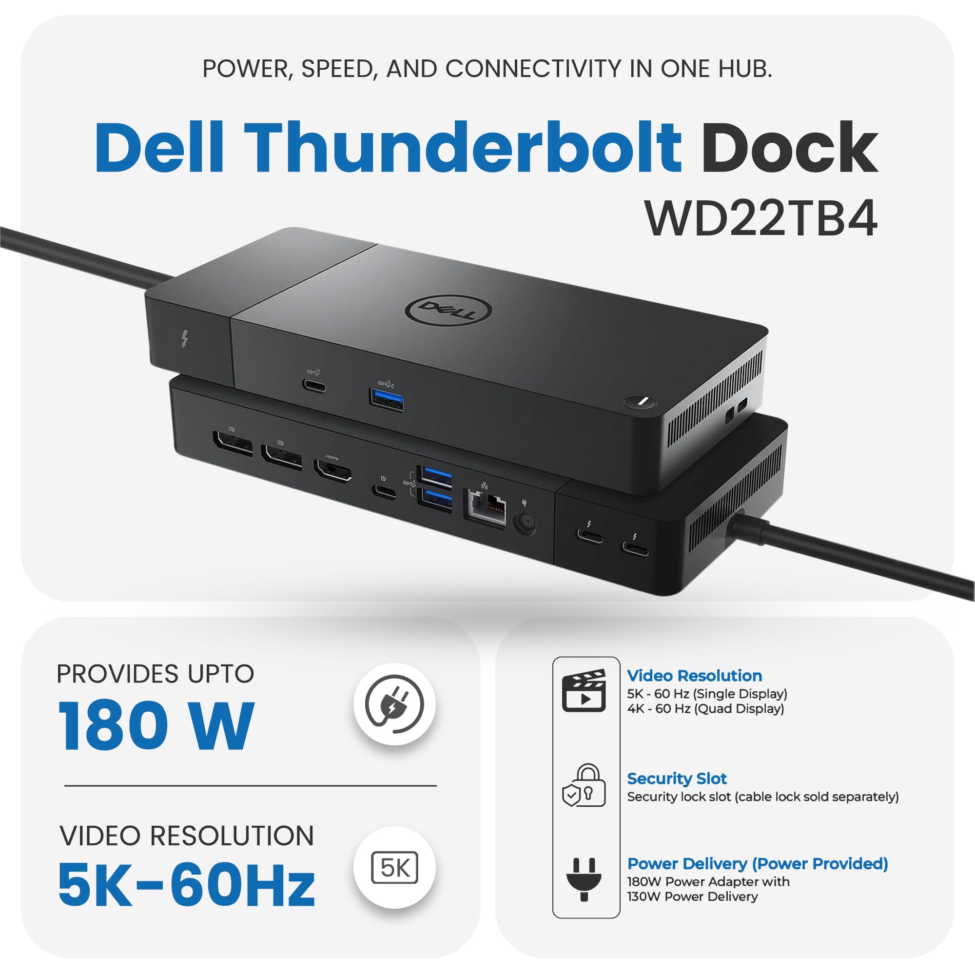 [130 Energy Supply] - The WD22TB4 delivers up to 130 of energy delivery, making it perfect for Thunderbolt or USB-C host devices, including laptops with larger screens. With a single cable, you can supply energy to your laptop while seamlessly supplying energy to multiple connected devices for an efficient and clutter-free workspace.