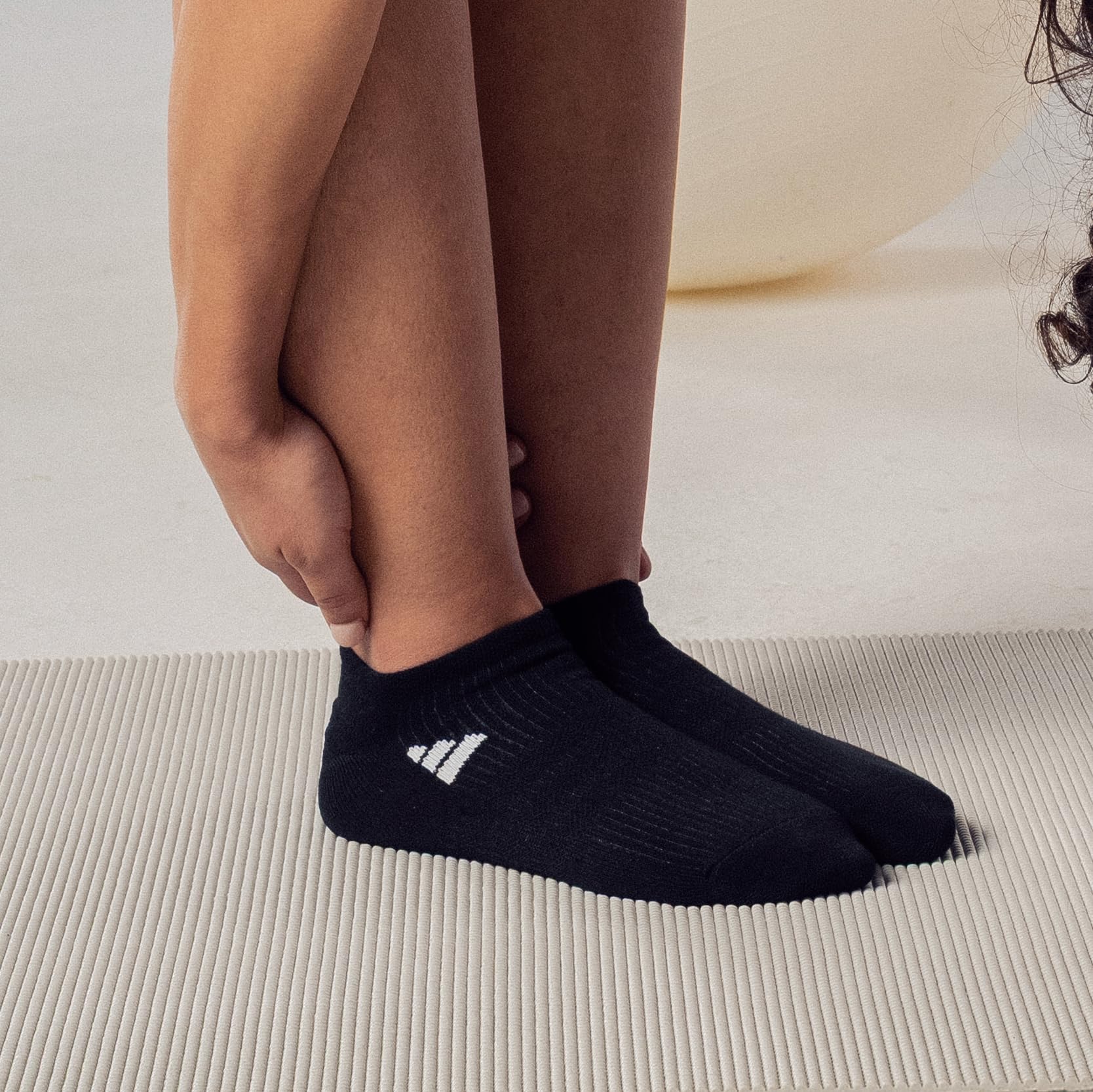 Description Who wants to think about their feet all day? With a super-light construction and no-show length, these adidas socks stay off your mind while upping your comfort. Arch compression helps support your feet, while moisture-wicking yarn keeps them sweat-free and happy.