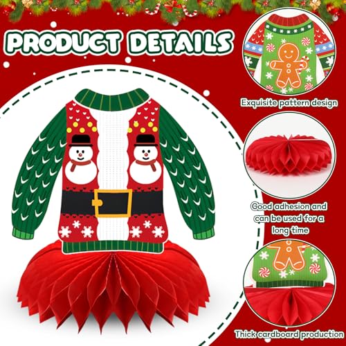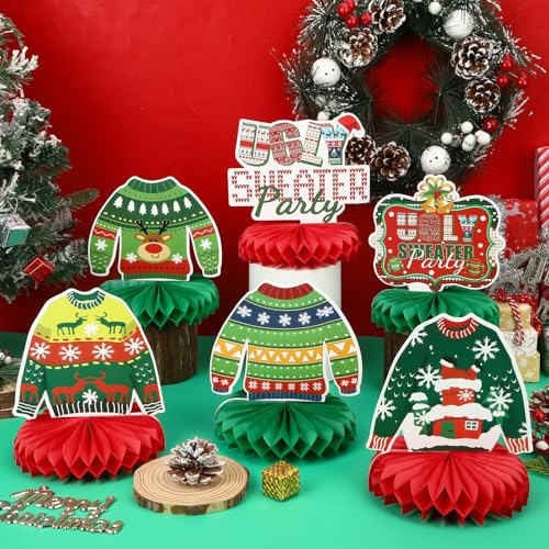 Versatile Holiday Decor: Ideal for ugly sweater theme parties, Christmas gatherings, birthdays,winter celebrations, and even photo backdrops. Use these ugly sweater table centerpieces to decorate homes, offices, or classrooms, or repurpose them as fun party favors or keepsakes after the event.Ugly sweater honeycomb centerpieces can be placed on the dining table, fireplace, counter, desk, or under the Christmas tree
