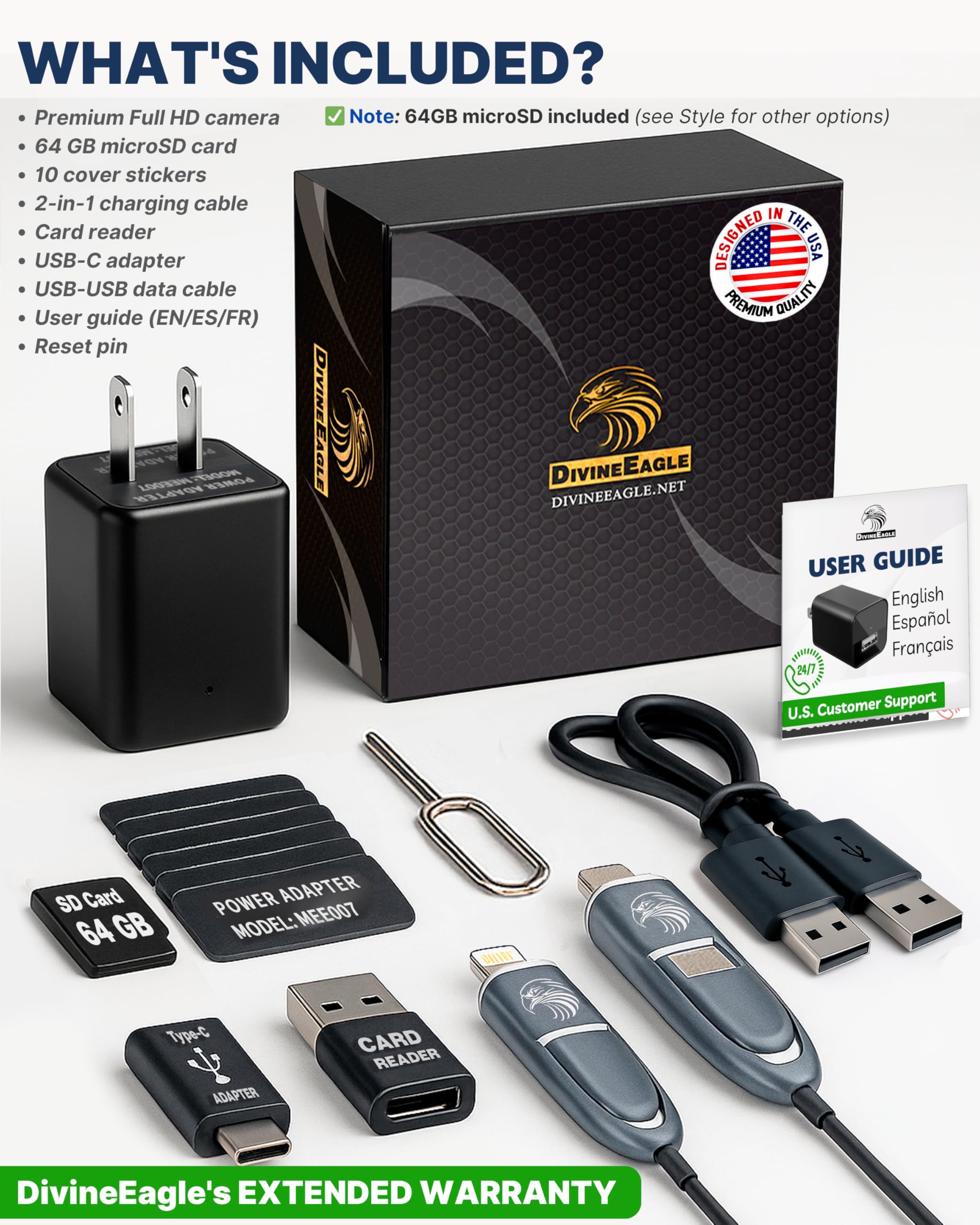 ★ User-Friendly: Insert a microSD card, connect to a power source, and start recording. Access videos easily via the included microSD reader and USB cable.