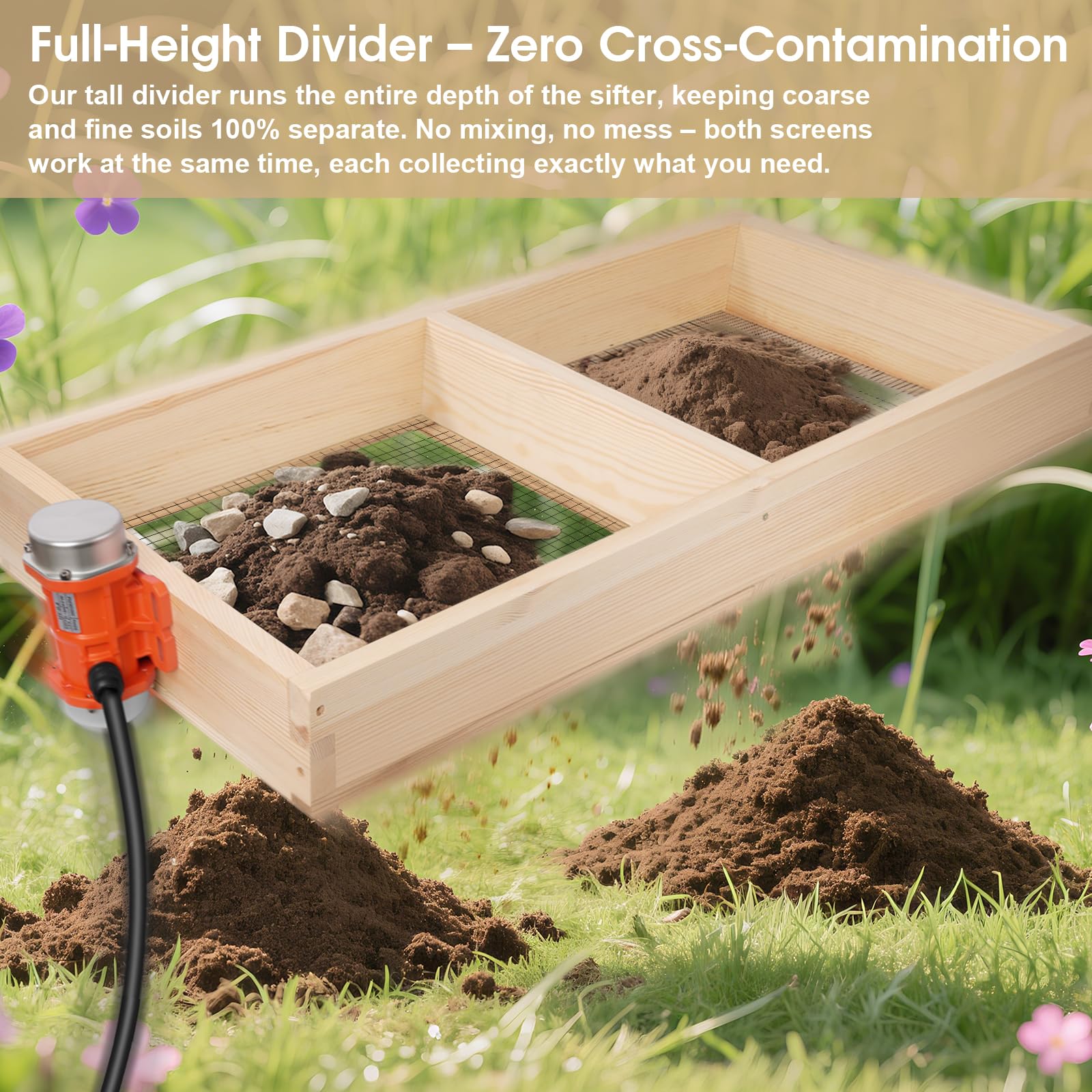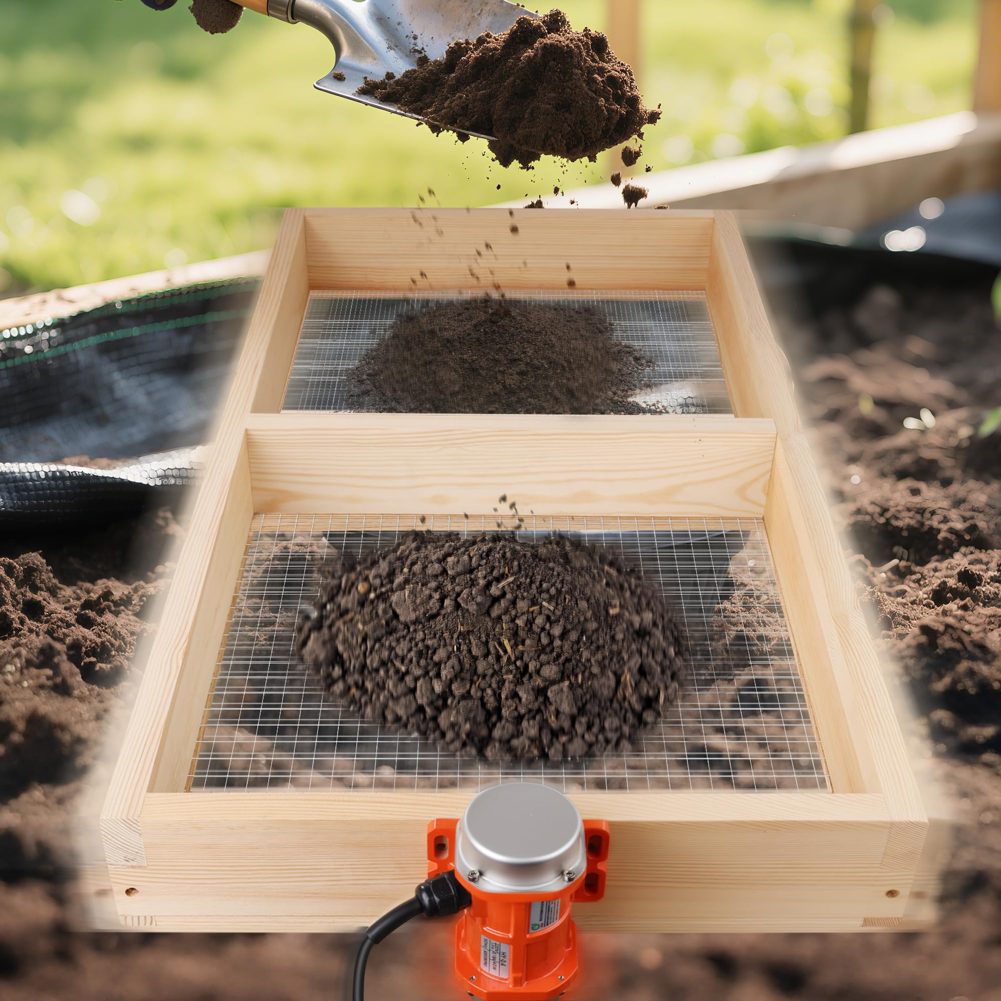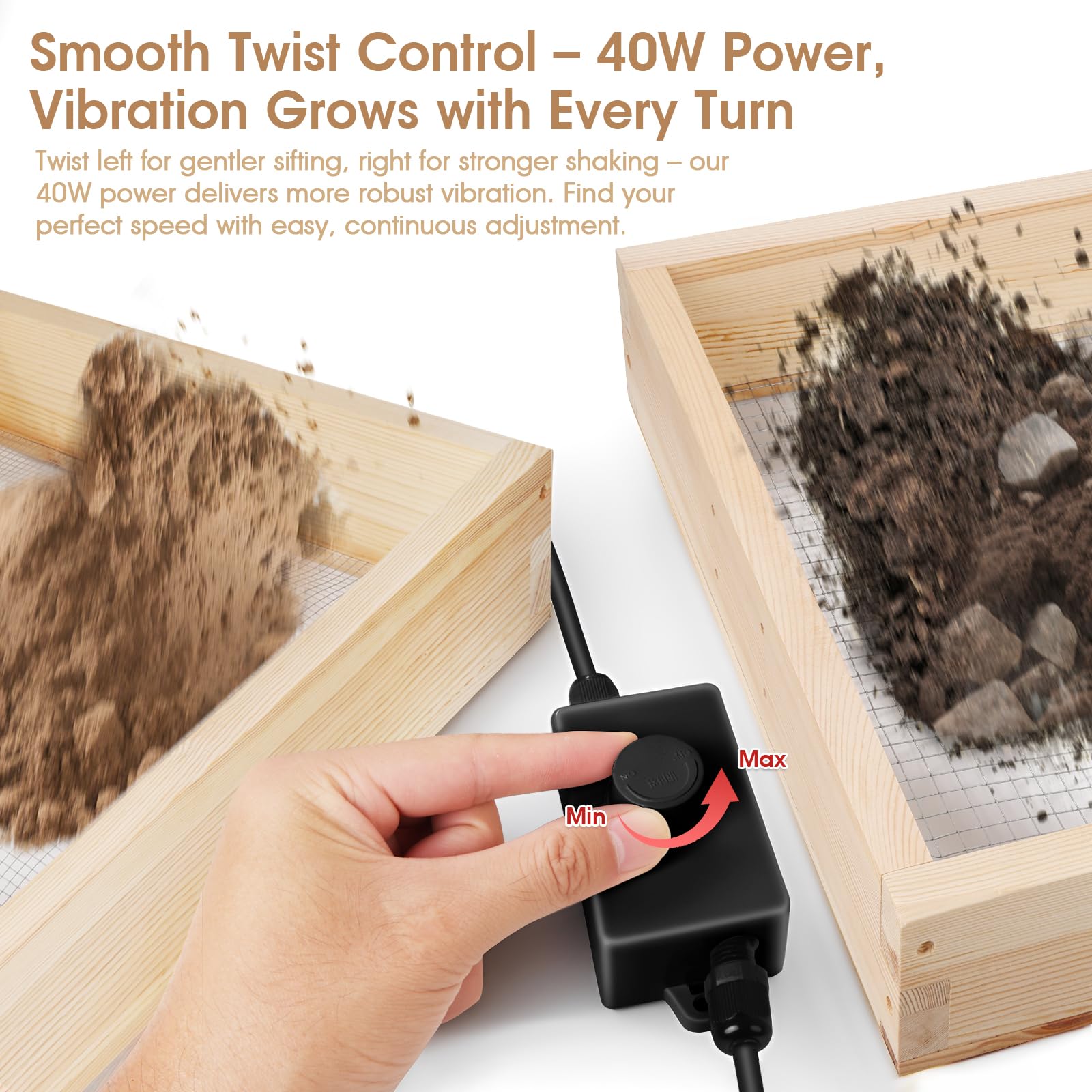 Powerful 40W Motor with Adjustable Vibration: Equipped with a high-performance 40W motor , this sifter delivers stronger, more efficient vibration. Plus, the vibration control switch lets you customize intensity for different soil types, ensuring precise and effective screening every time.
