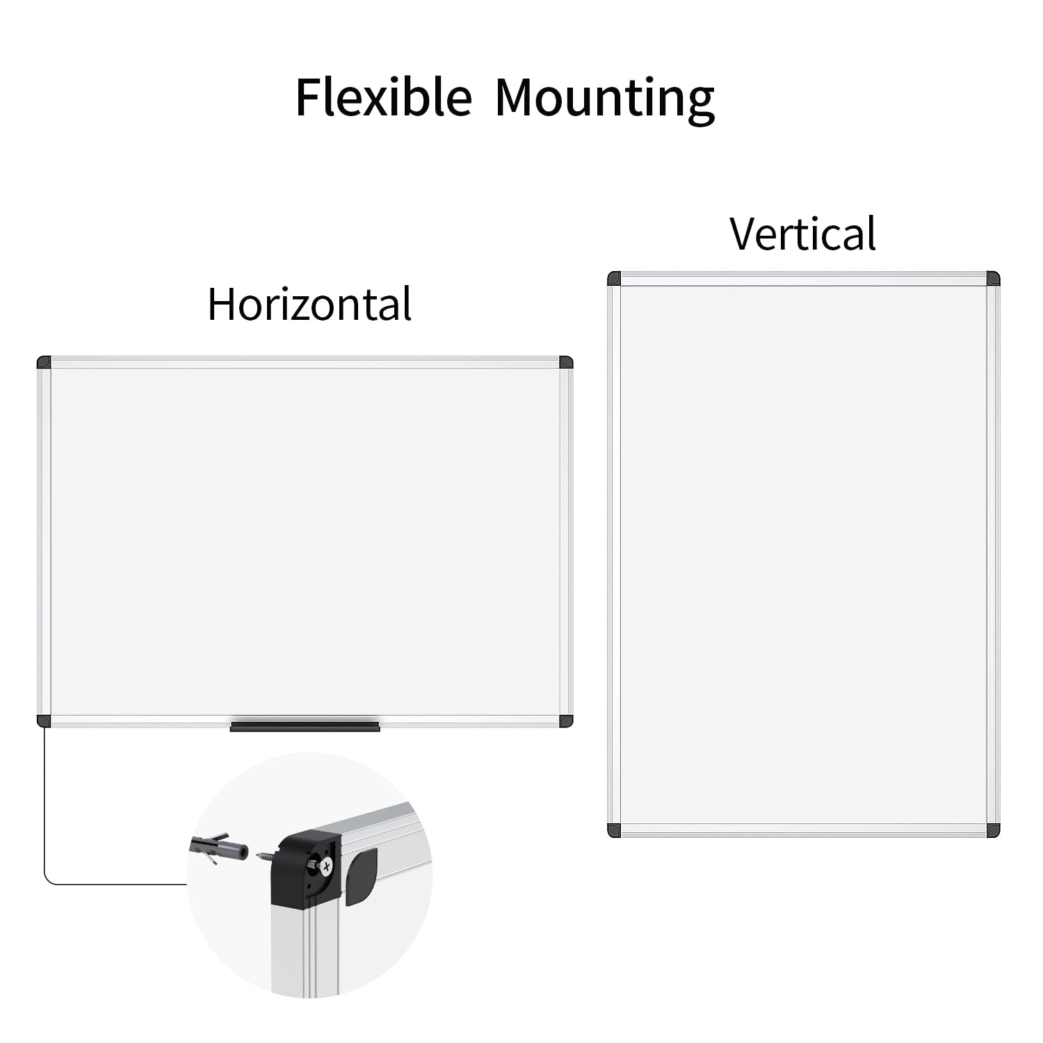 [Versatile Installation] Flexible mounting allows you to set up your whiteboard either horizontally or vertically. Marker tray may be not fit when installing vertically. Easily customize the board orientation to fit your space and needs.