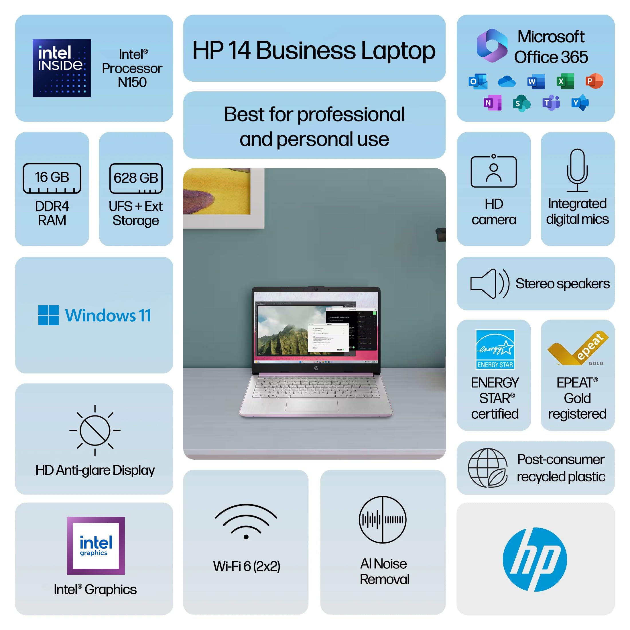 [13th Gen 4-Core Intel N150 Processor] 13th Gen Intel N150 (Up to 3.6 GHz with Intel Turbo Boost Technology, 6 MB L3 Cache, 4 cores, 4 threads). Save time and increase productivity with powerful performance and smooth multitasking. Access fast web applications, edit photos and videos, and get the responsiveness you're looking for.
