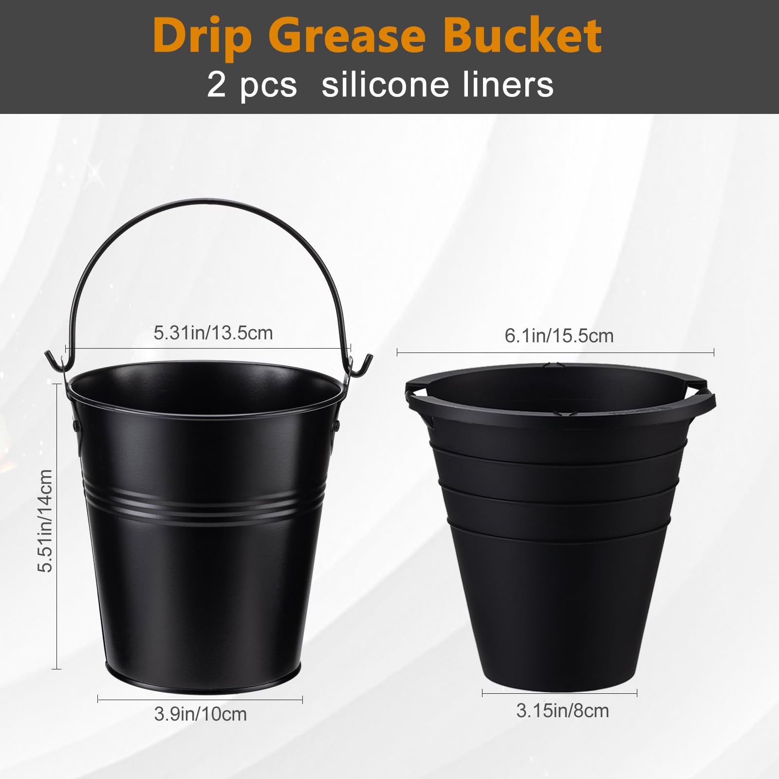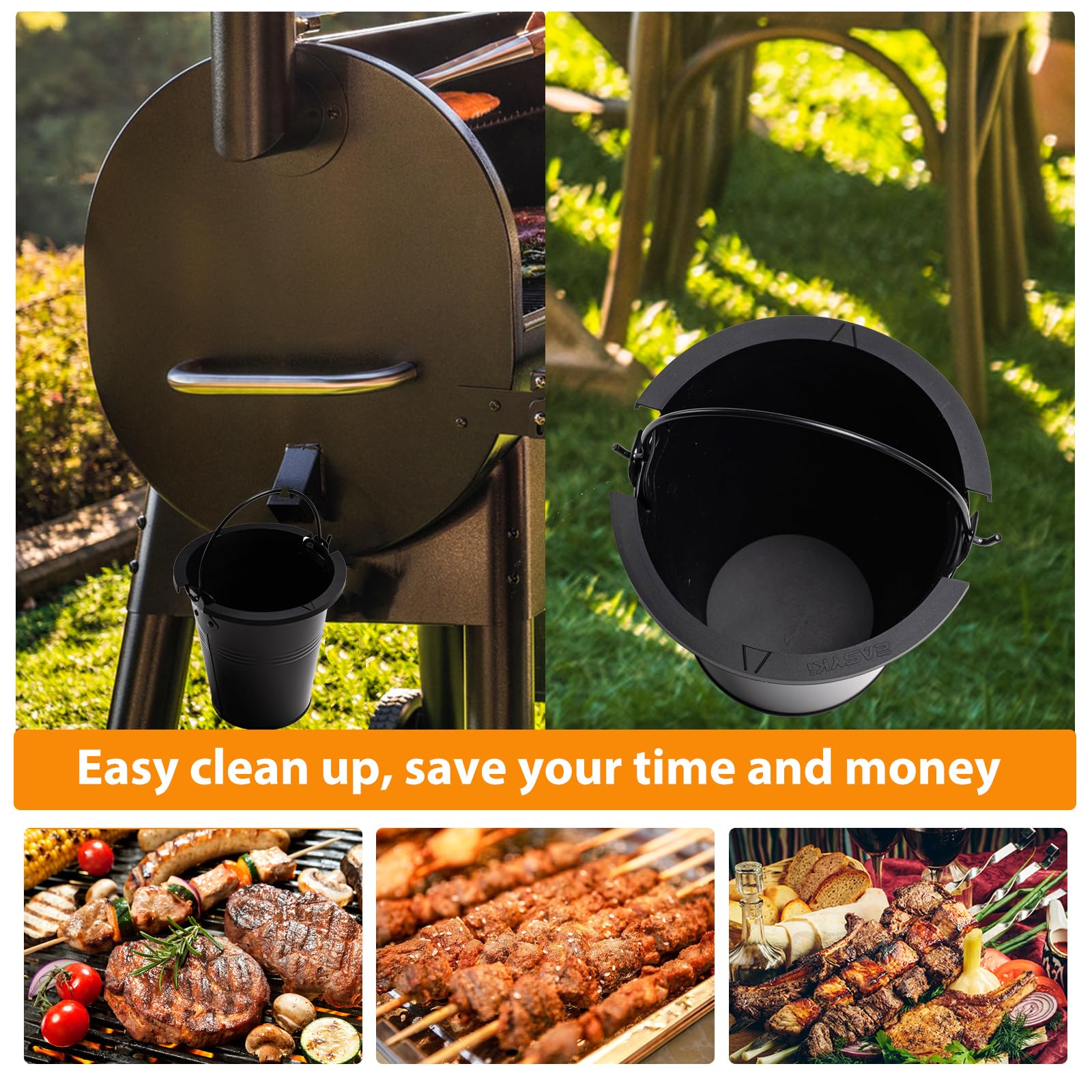 【GREASE BUCKET】- Made of high quality materials of durable galvanized steel ,this weather-resistant galvanized steel smoker grease bucket won't rust or absorb outdoors.Size: 5.5in /14cm (W) x 5.9in/15cm (H)