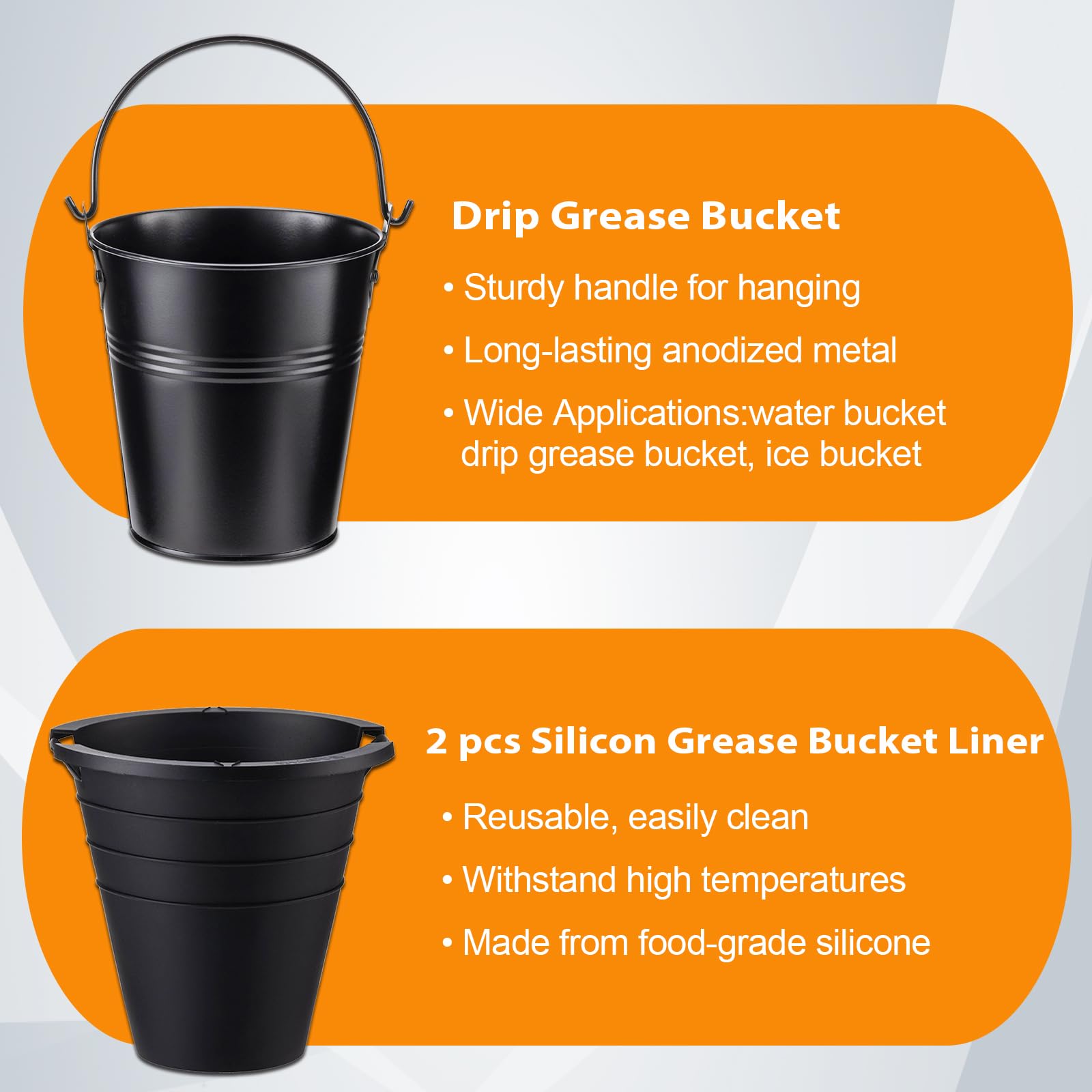 【High Quality Material】This silicone Grease bucket liner are made of heat-resistant ,100%foodgrade silicone material and reusable. They'll last for years, providing you with a reliable and convenient way to keep your bucket clean , a must-have for the pellet Grill Accessories.