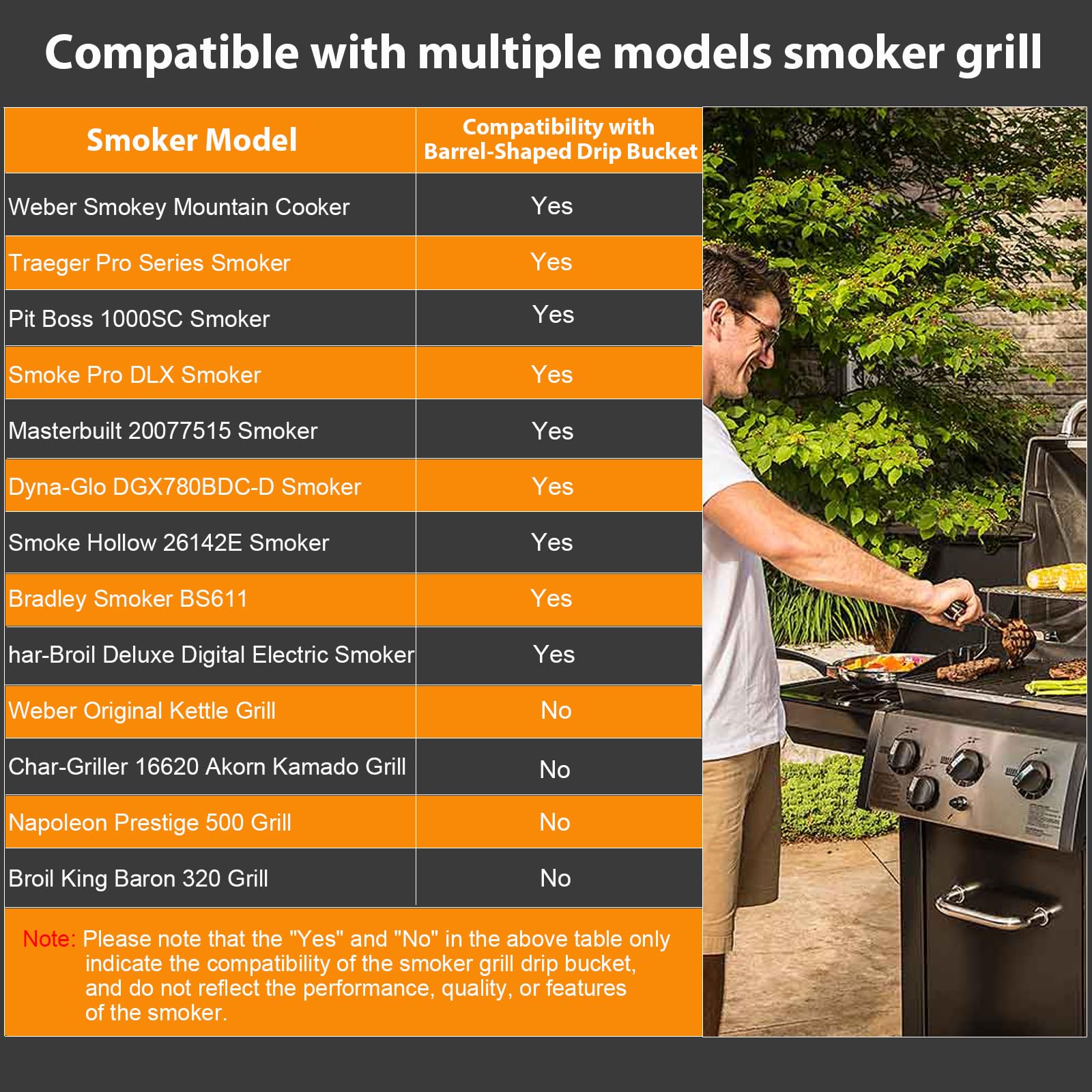 【COMPATIBILITY】- This silicone Grease bucket liner / Drip pail / Drip tray liner works well with most offset grill Compatible with Traeger New Pro Series 575, 780, Ironwood 650, 885, 20 22 34 Series Oklahoma Joe's, Z Grill, GMG Pit Boss, grills.