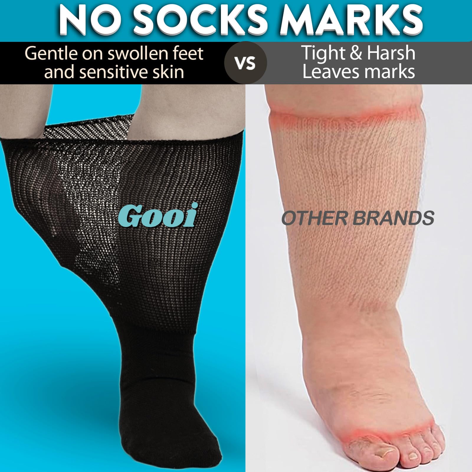 Non-binding Top: The loose, stretchy cuff reduces pressure on the leg and avoids restricting circulation, helping to prevent swelling. Gooi Socks with an ultra-wide, non-binding top are ideal for swollen ankles and calves, ensuring comfort without tight elastic bands.