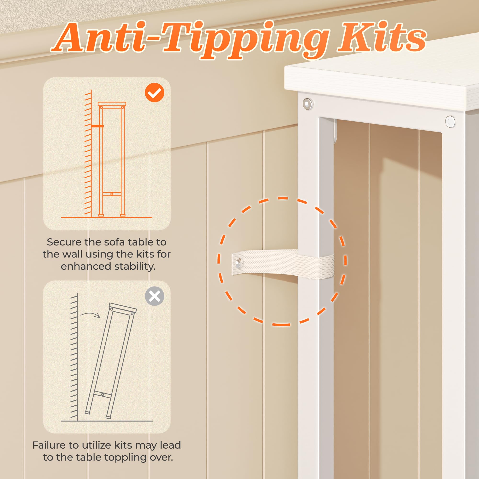 【Strong, Stable & Safe】Made from high-quality engineered wood and a sturdy metal frame, this behind the sofa table is built for daily use. Anti-tip kit included for wall-mount safety, plus upgraded larger adjustable feet keep it steady on uneven floors, much more stable than smaller leg bases