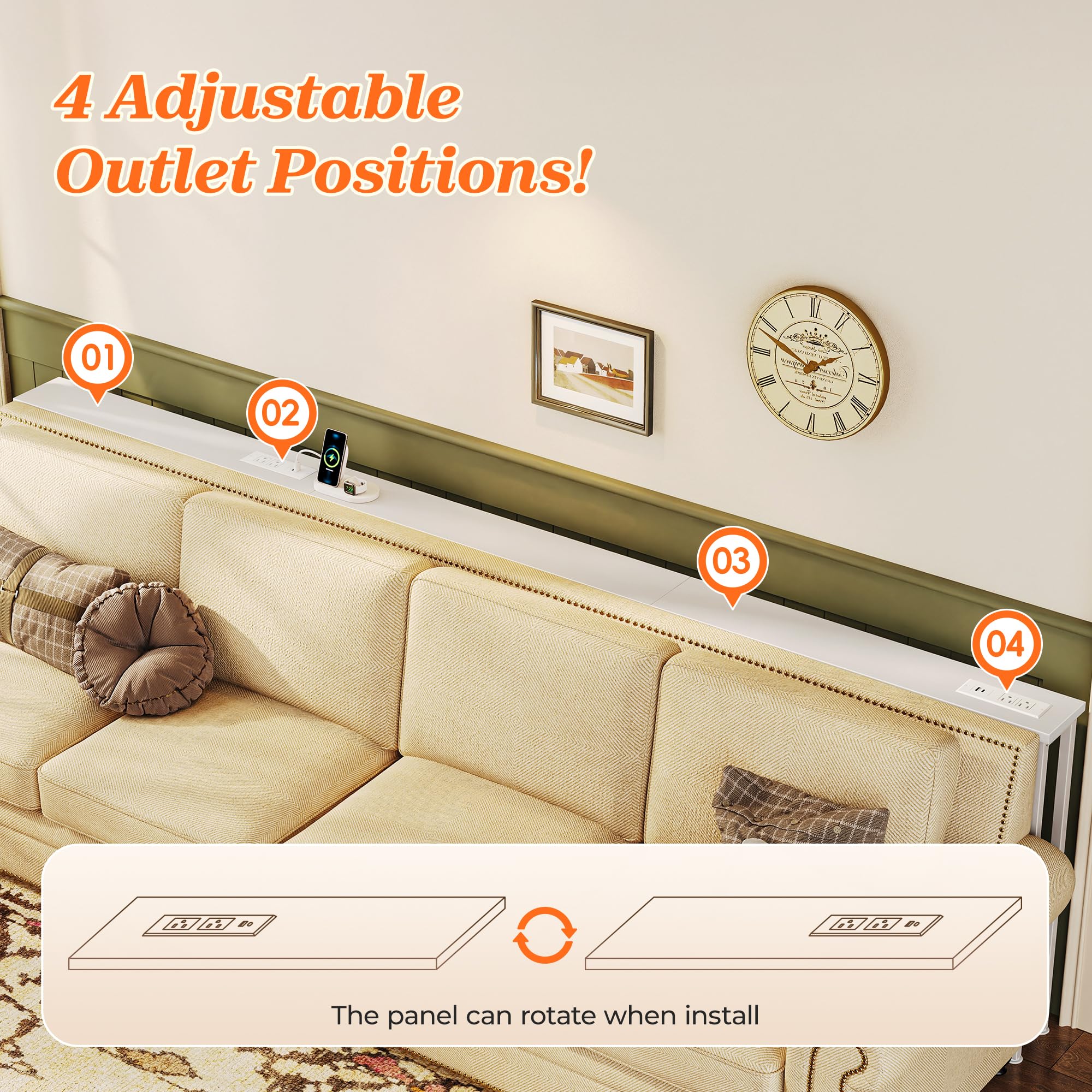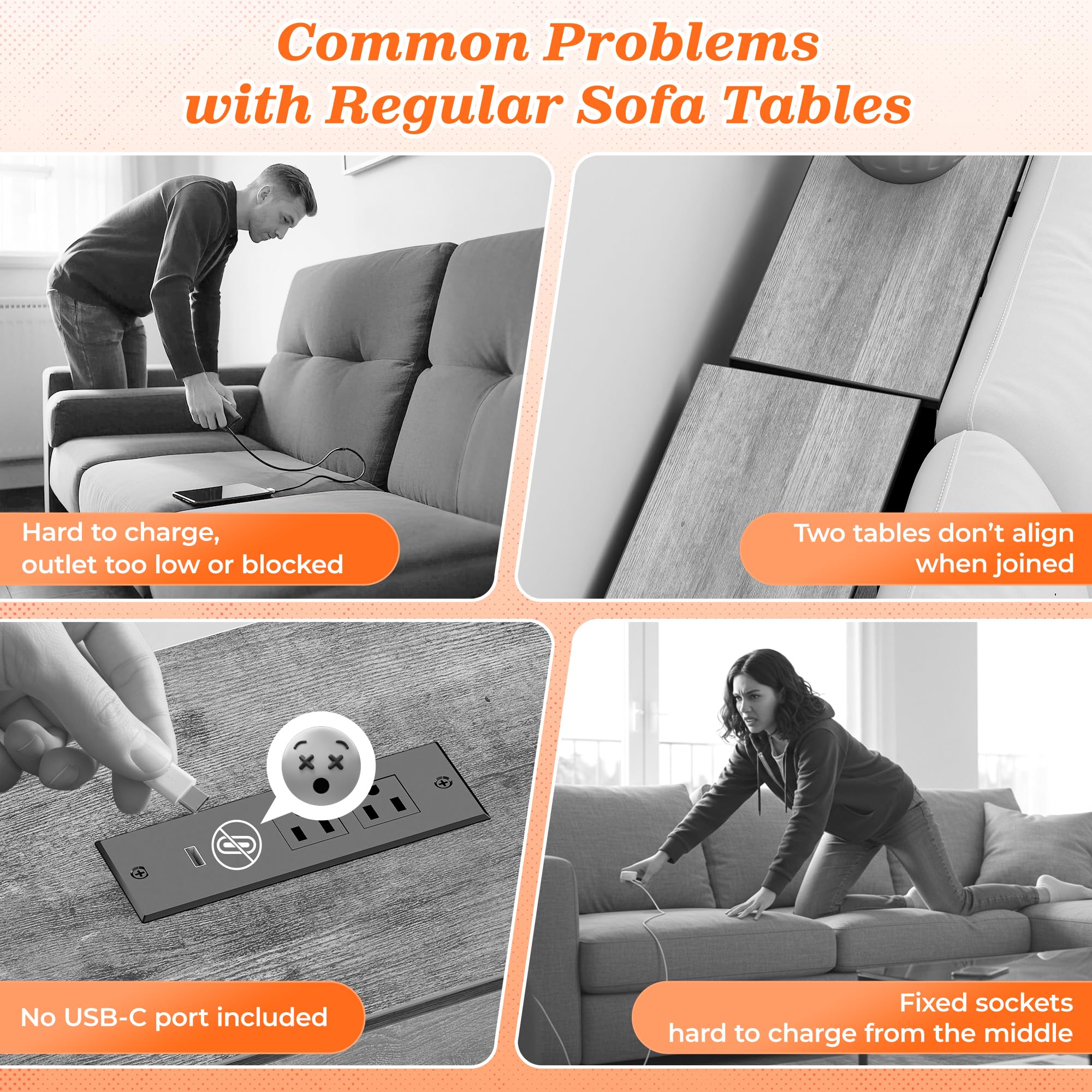 【Easy to Assemble & Fits Anywhere】Whether behind a sofa, in an entryway, or along a narrow wall, this couch table behind sofa is the perfect storage solution for tight spaces. Designed to leave room for wall vents and easy airflow. Comes with clear instructions, labeled parts, and tools included, you'll have this sofa table with outlet set up in no time