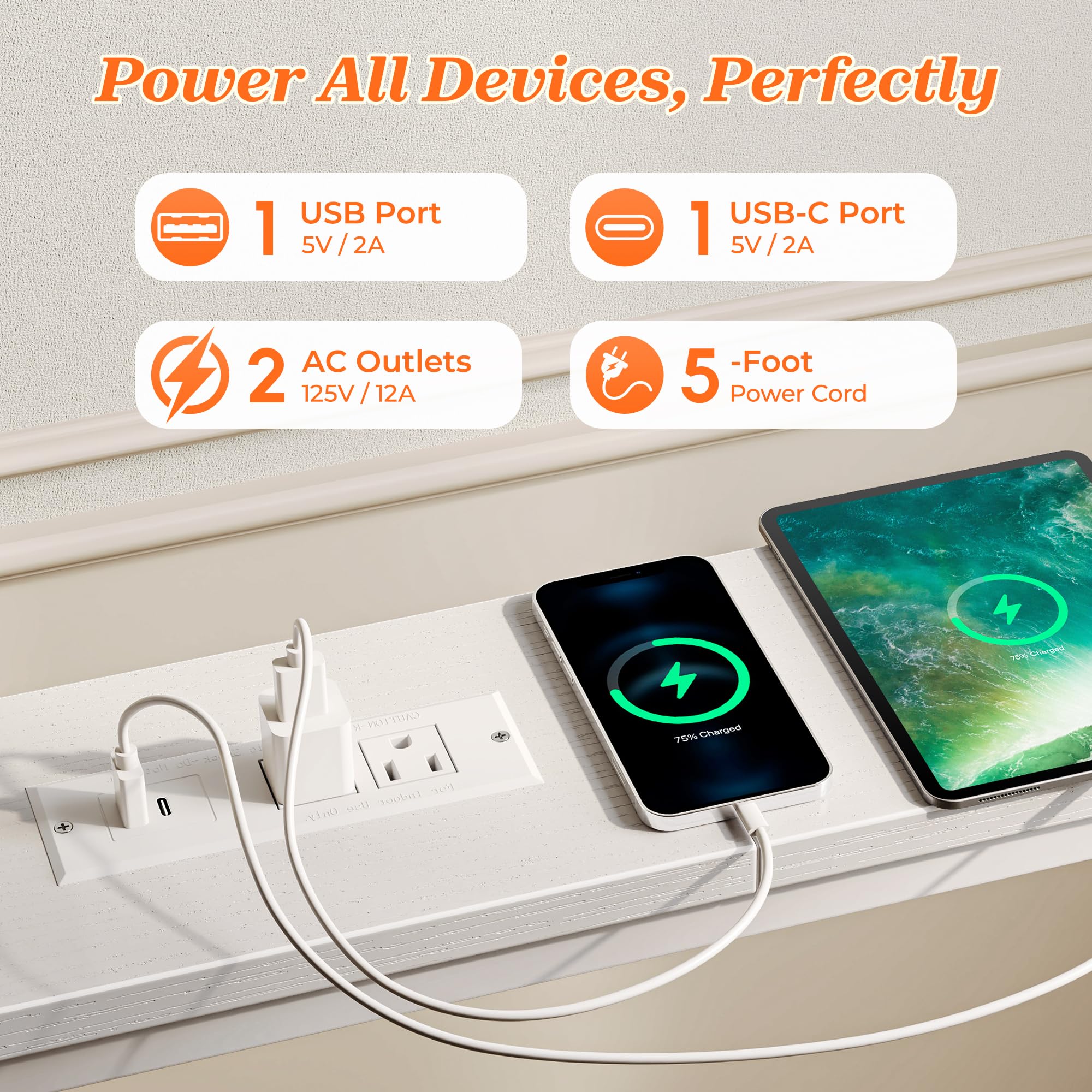 【2 Flexible Power Strips】This long console table features 2 built-in power strips, each with 2 AC outlets, 1 USB port, and 1 USB-C port. And guess what? You can place the outlets anywhere along the narrow sofa table (except the center board) to fit your setup. Whether you're charging a laptop, phone, tablet, or game controller, you won't need to bend over or struggle with wall outlets blocked by furniture anymore