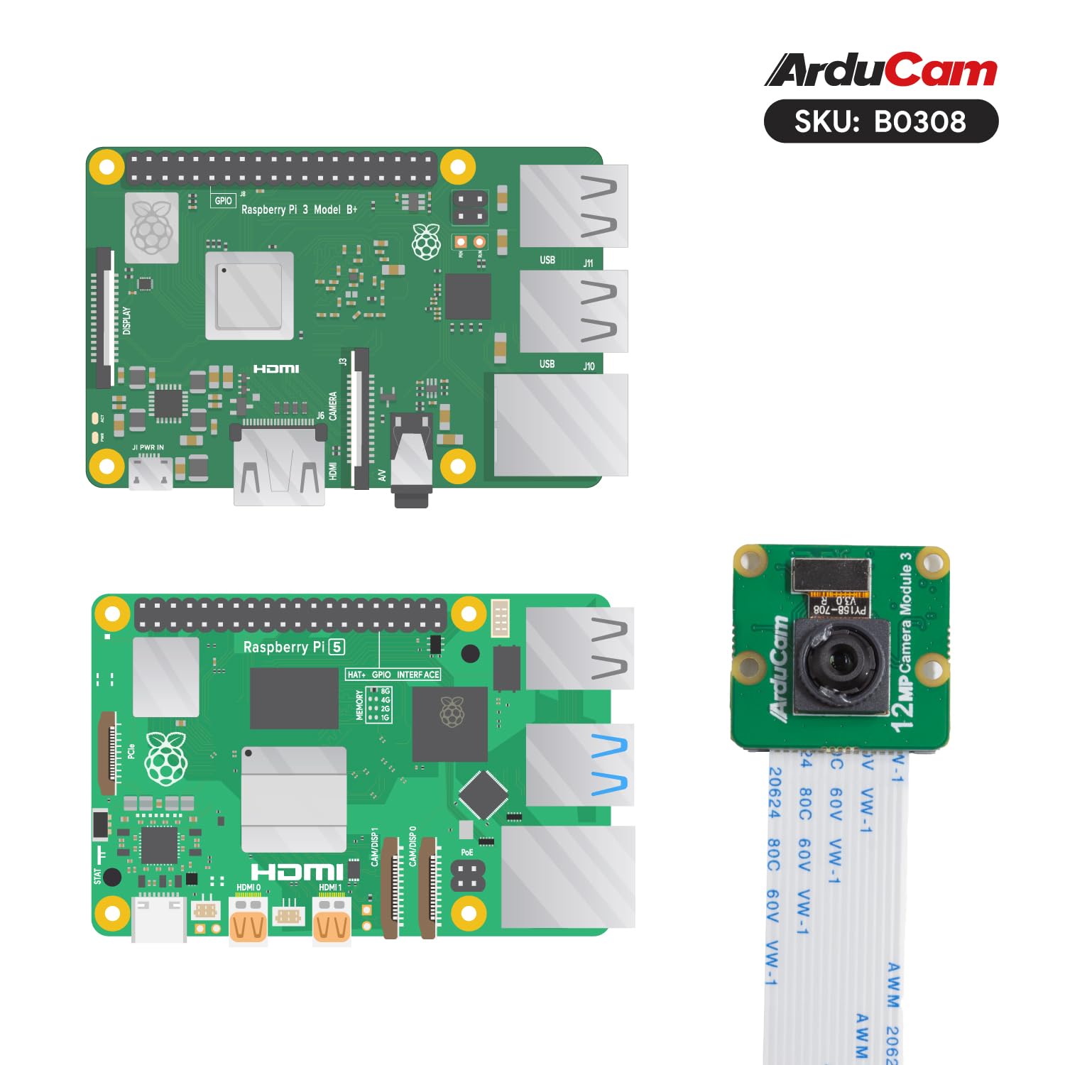 Arducam for Raspberry Pi camera v3 is compatible with Raspberry Pi all boards, 5/4B/3B, Pi Zero W/2 W.