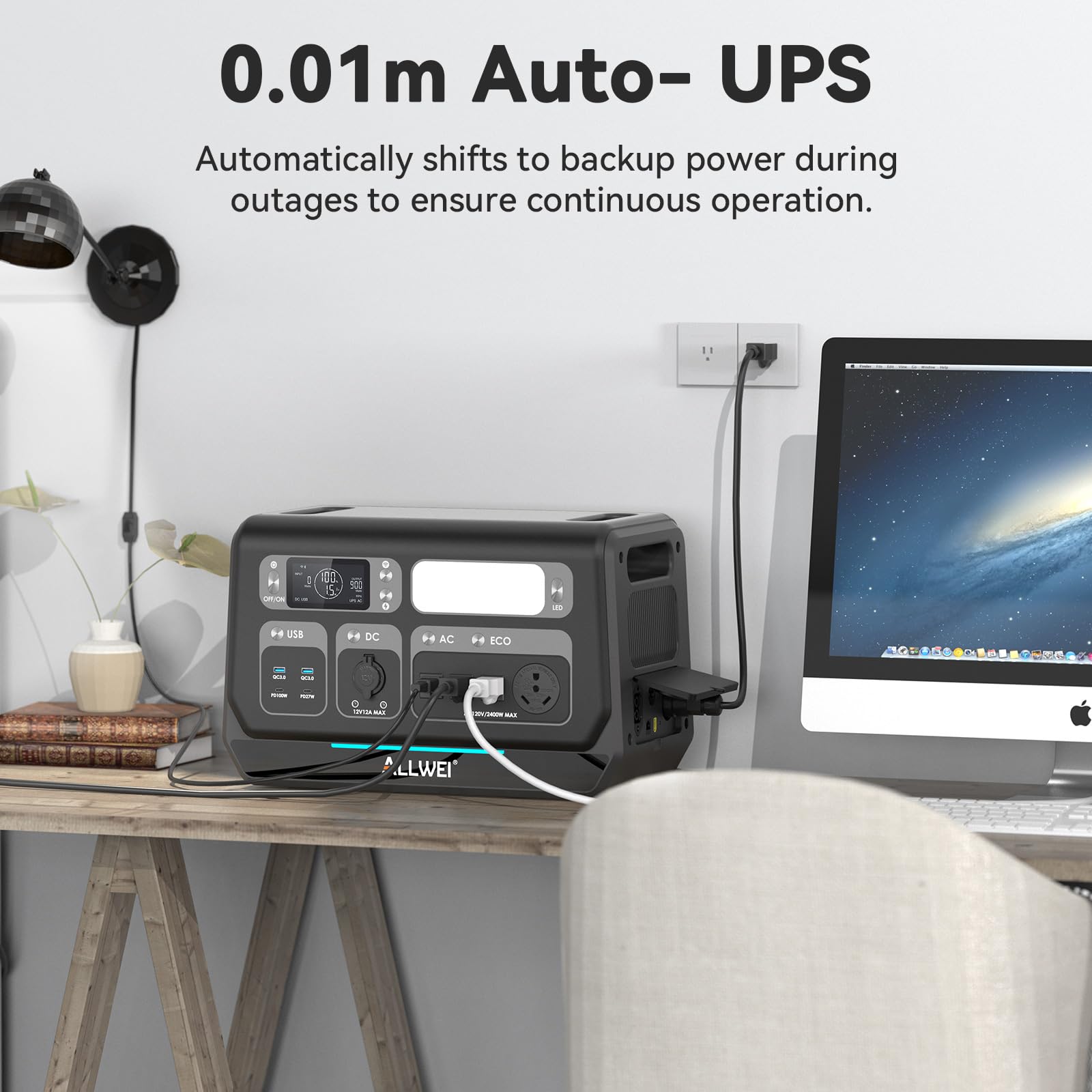 【Portable Power Station with 10-Year Lifespan】With long-lasting technology and LiFePO4 batteries, ultra-durable electronics, temperature control, and an impact-resistant design, ALLWEI PPS2400-3 is 3500+ Cycle Life, built to last over a decade, even with everyday use.