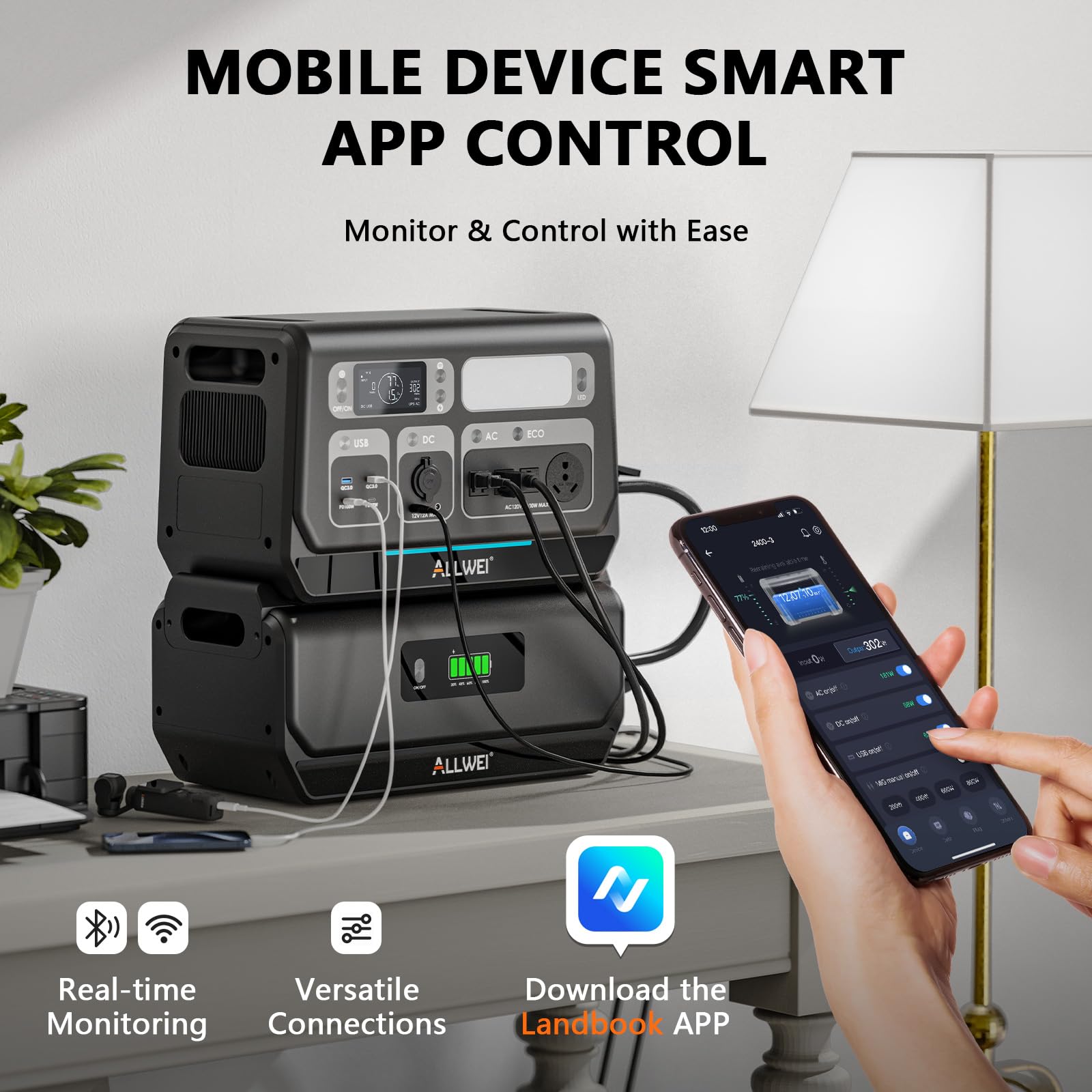 【Smart App Function】Smart Remote Control the 2400-3 remotely with ALLWEI Landbook APP via Wi-Fi or Bluetooth for device connection, software update, multiple customized settings, monitor remaining battery.