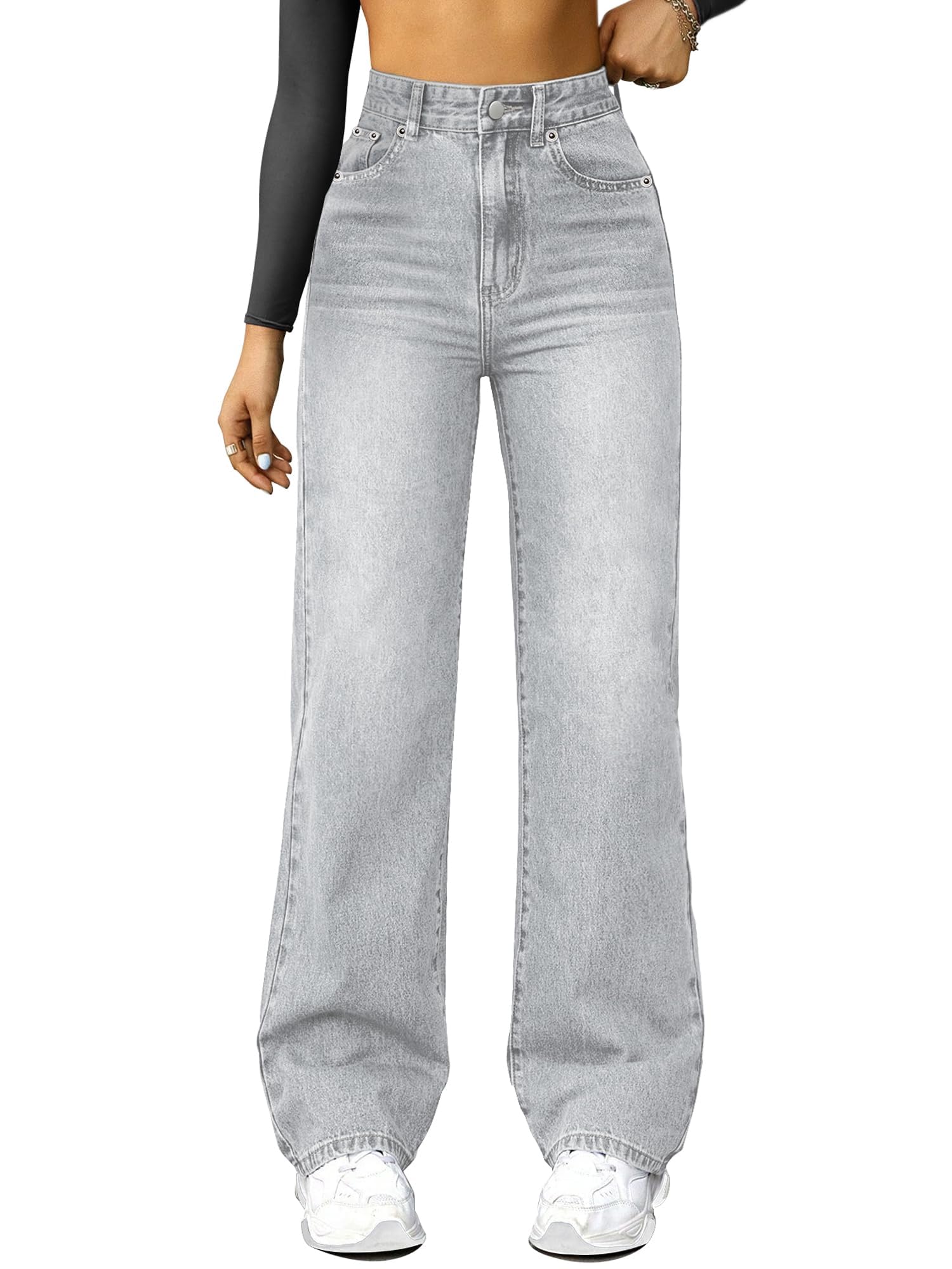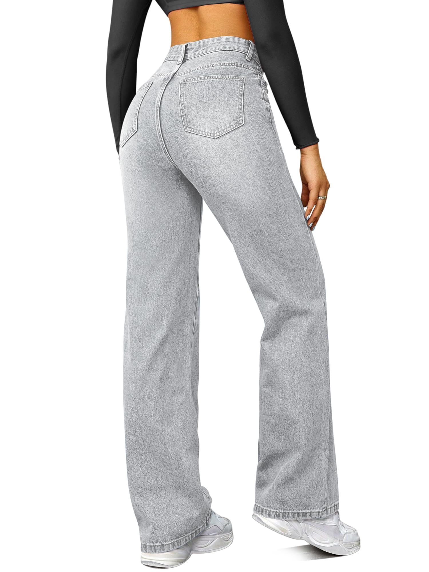 NOTE:The product size is measured manually and may have a discrepancy of 1-2 cm. Please noted that the size in the size chartis the size of the jean, not the body size.NOTE:Runs large – consider sizing down Stylish High-Rise Design: This pair of high-rise, straight-cut, wide-leg boyfriend jeans boasts a trendy high waist design, exuding a unique sense of fashion that positions you as a trendsetter.