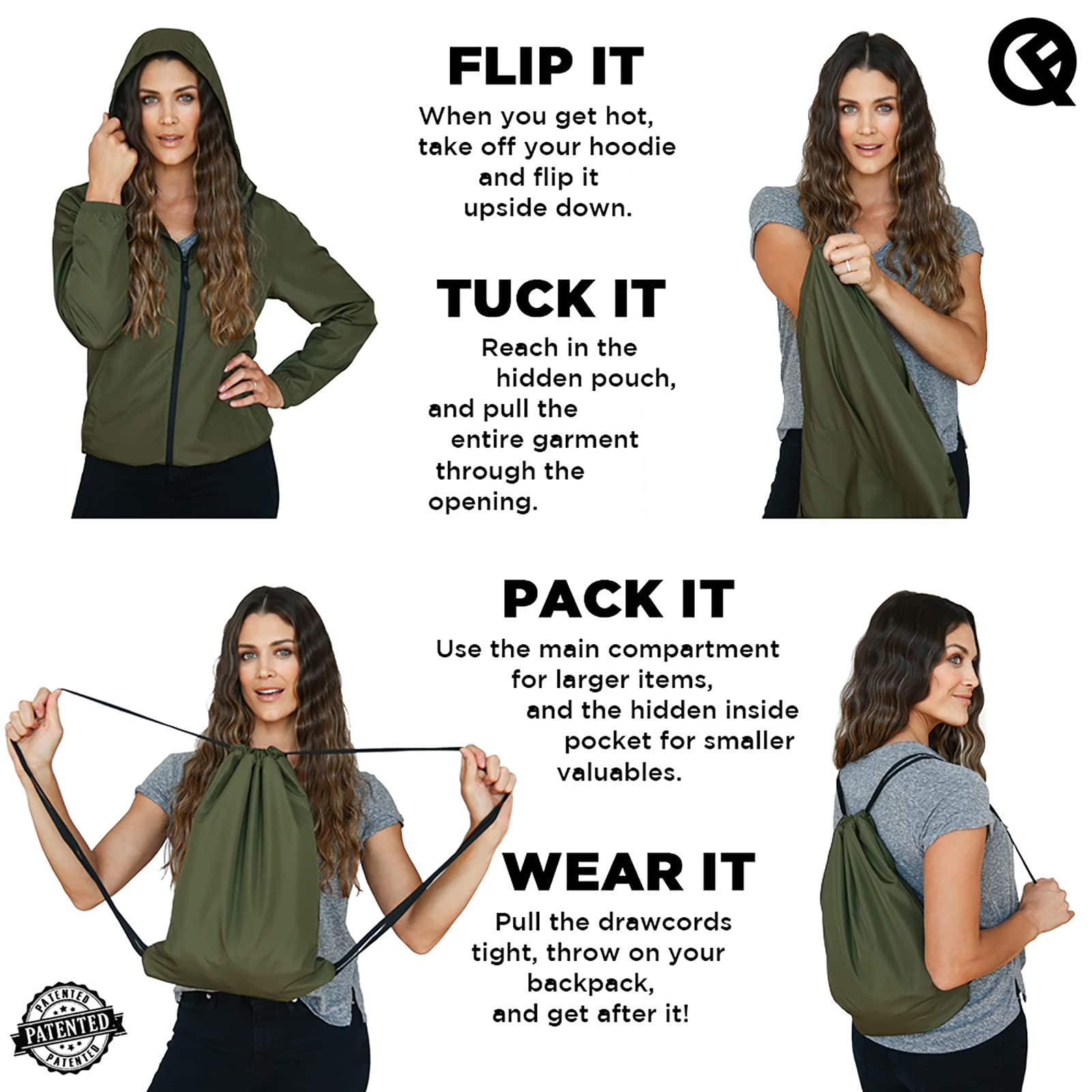 TIME MAGAZINE "BEST INVENTIONS OF 2019" - As Seen on Shark Tank! This moisture wicking windbreaker quickly and easily converts into a functional backpack using our patented Quikflip conversion technology. Soft to the touch, versatile, and great for layering, the Dryflip Windbreaker packs easily and is great for all weather conditions. Watch the video demo next to the product pics.