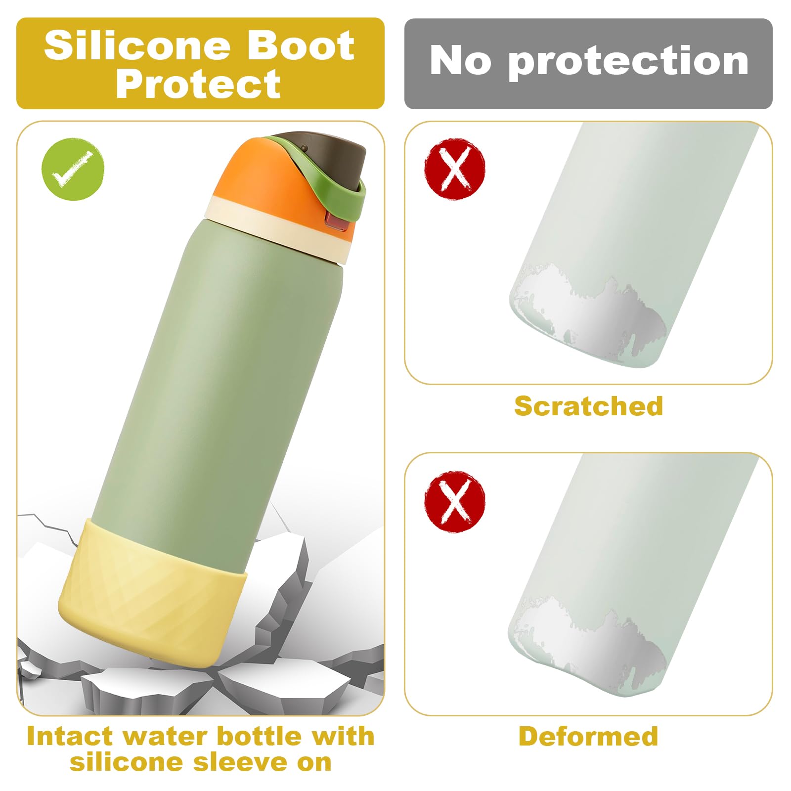 【Perfect Compatiblity】The silicone boot is suitable for Owala 32oz FreeSip, Twist, and Flip stainless steel water bottles. It is precisely made according to the size of the original cups, which perfectly fits the cup bottom and won't fall off easily.