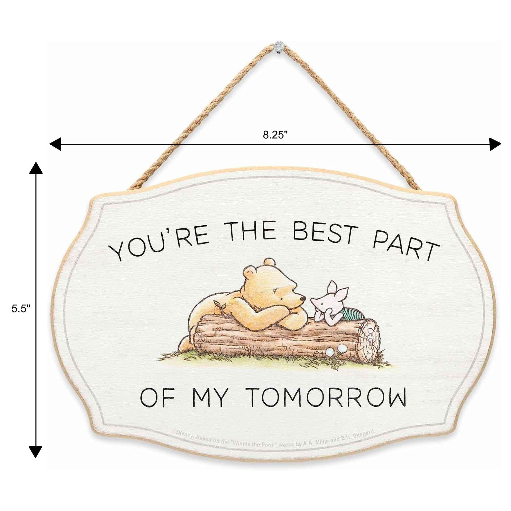 Fun Vintage Sign: Featuring Pooh and Piglet daydreaming on a log amidst the words, "You're the best part of my tomorrow," this sign brings all the whimsy and charm of Disney to your little one's everyday life.