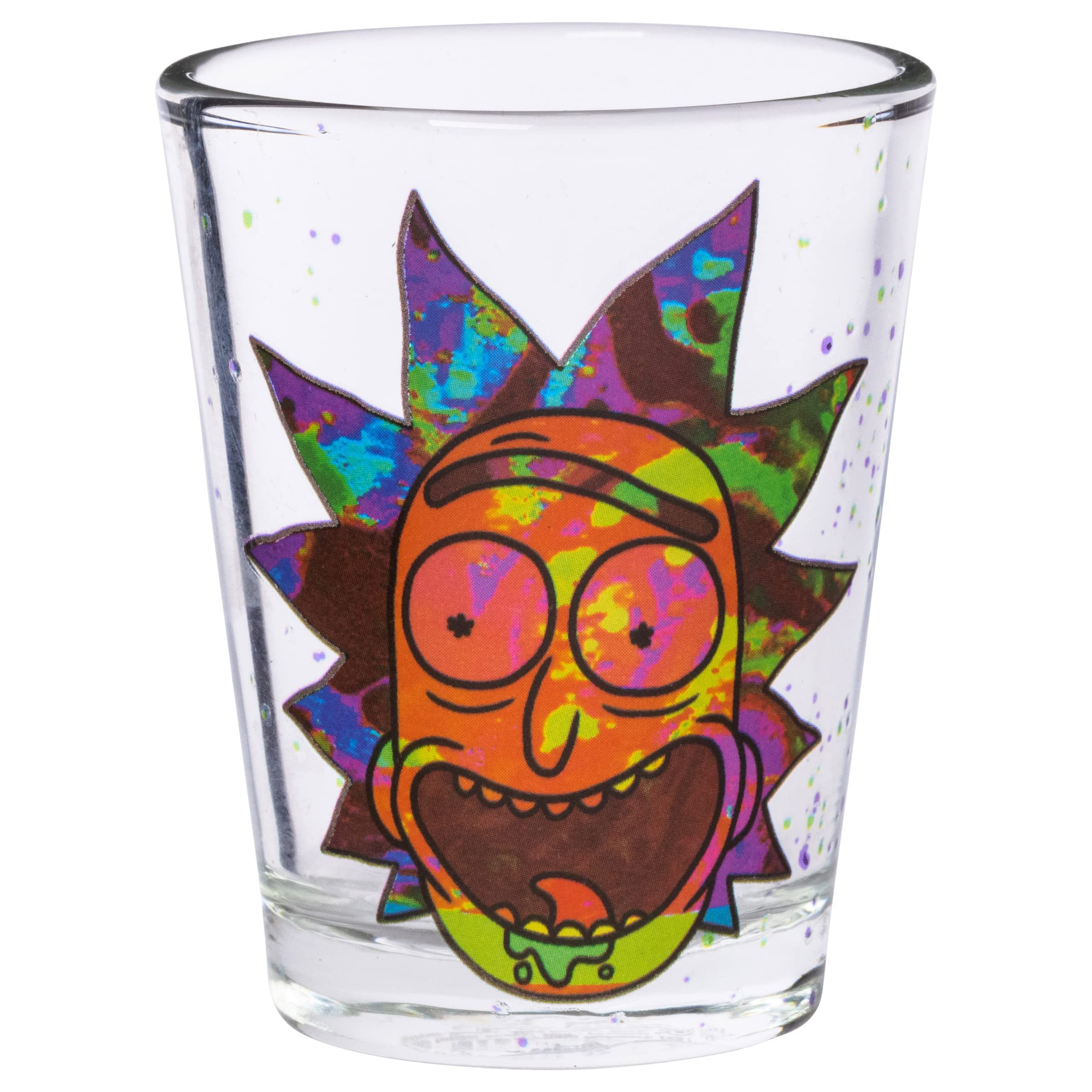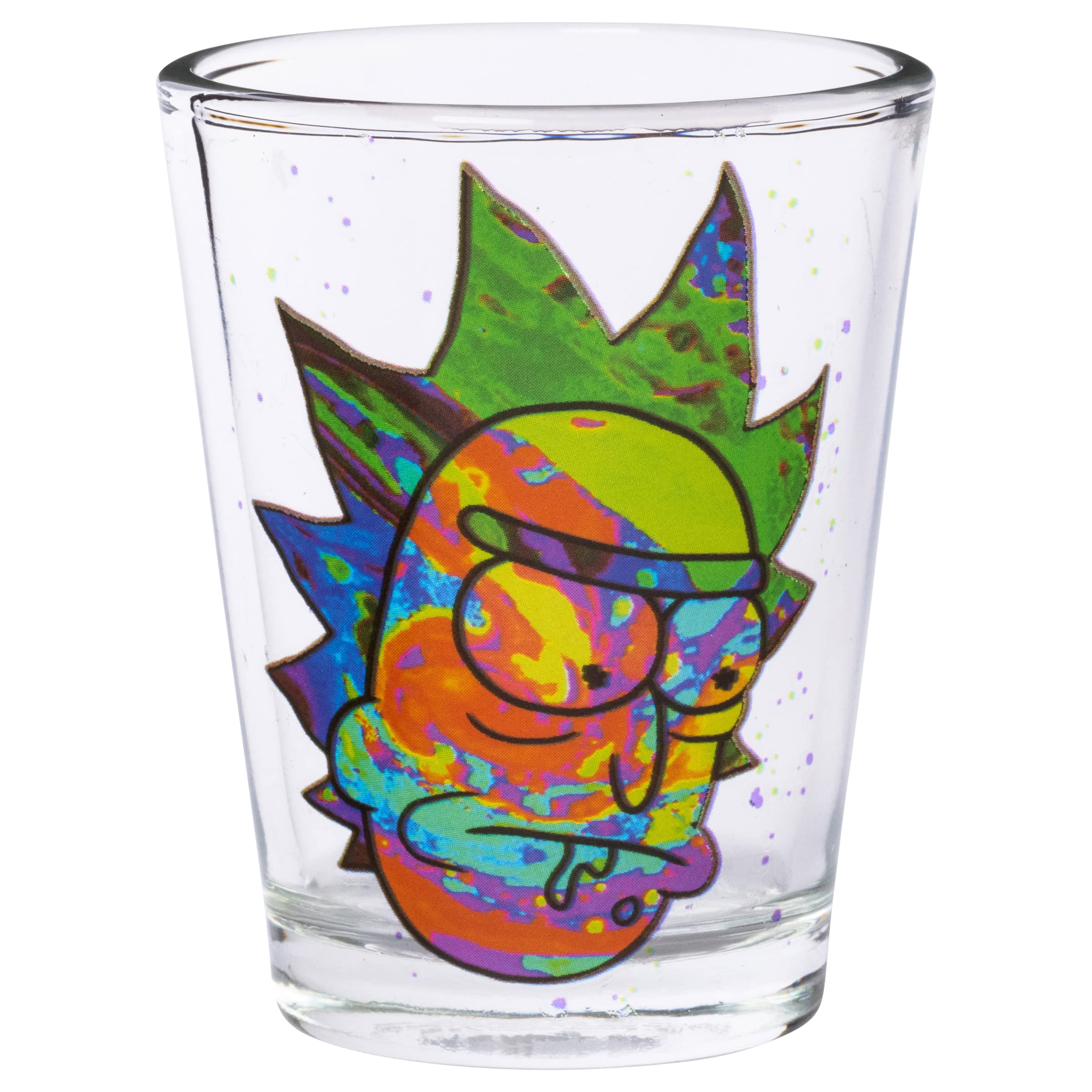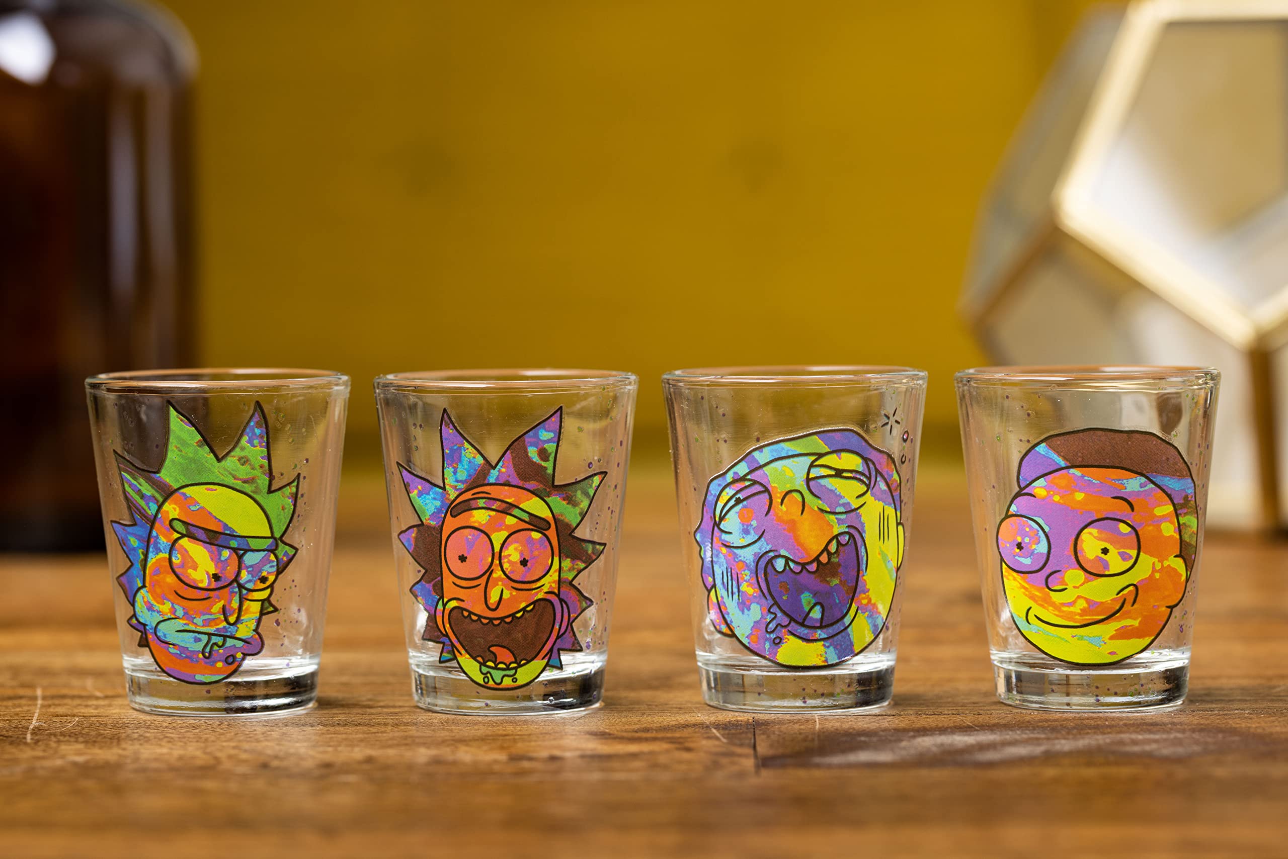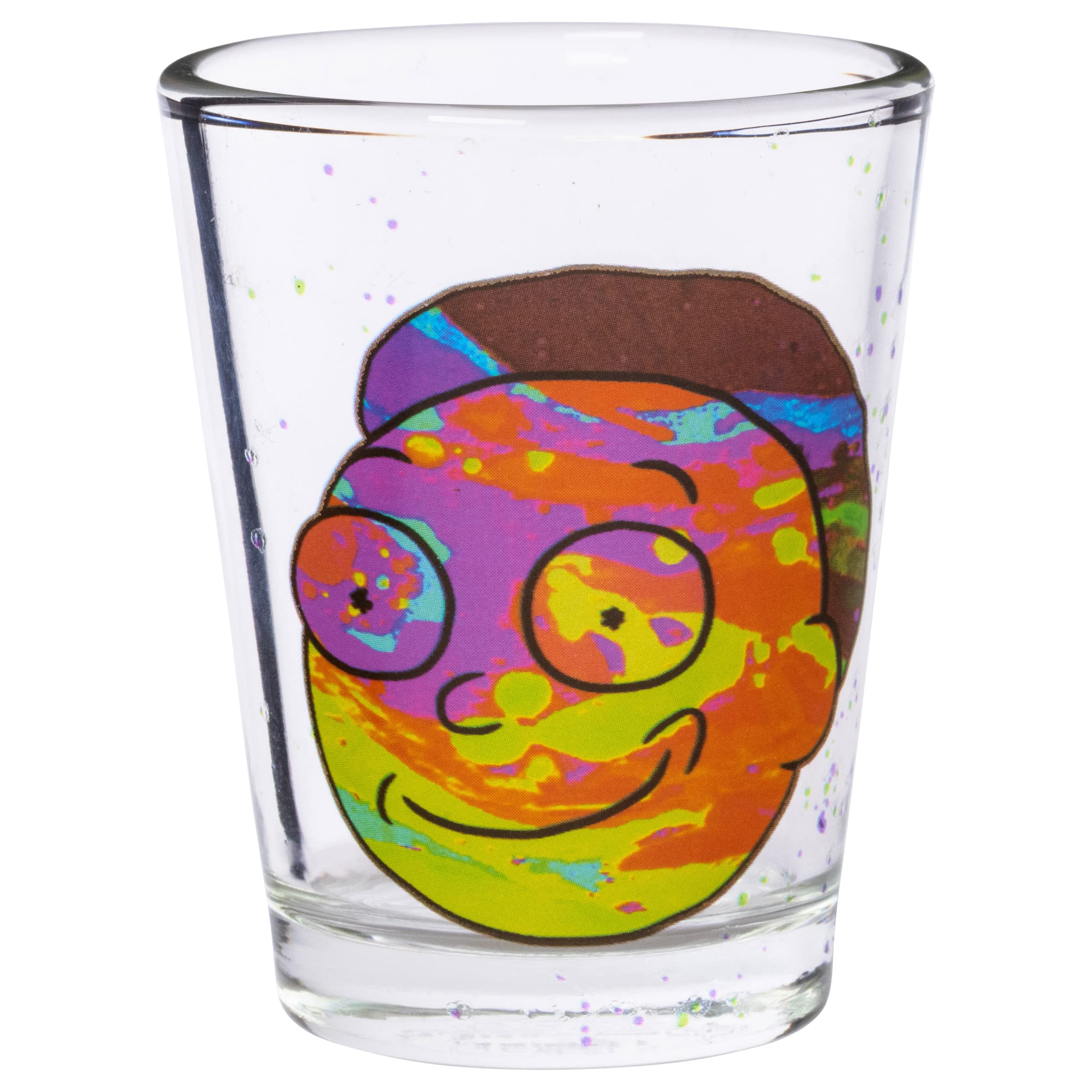 MINI GLASS: Officially licensed Rick and Morty mini glasses that feature colorful character faces from the TV show. Each glass holds 1. 5 ounces of liquid and features a different colorful character face on the front