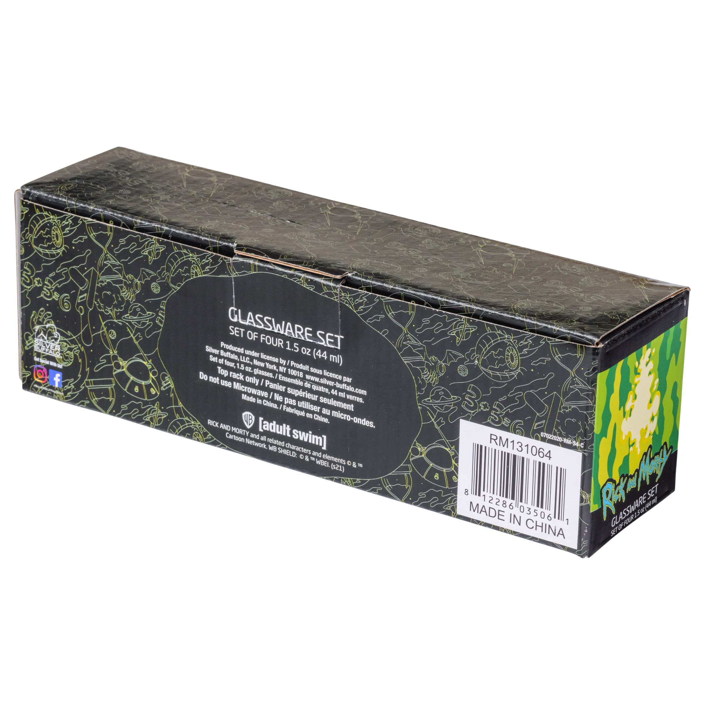 Join Rick and Morty for a pick-me-up with this set of four glasses featuring colorful characters from your favorite show. Whether you’re sipping a cocktail, beer, water or juice, These fun mini glasses show your love of Rick and Morty. Each glass features a different face. The officially licensed Mini glass set makes an ideal gift for a Rick and Morty lover! Top-rack dishwasher-safe, not suitable for microwave. Silver Buffalo is a trend setting housewares and home decor company based in the heart of New York City. Working in collaboration with our licensors and brands, we develop unique, creative and ground-breaking products with a devotion to detail and commitment to innovation while staying true to current trends. We pride ourselves on manufacturing and distributing exciting product that connects with the child or fanatic) in all of us, providing everything we love and need to bring memories to life.