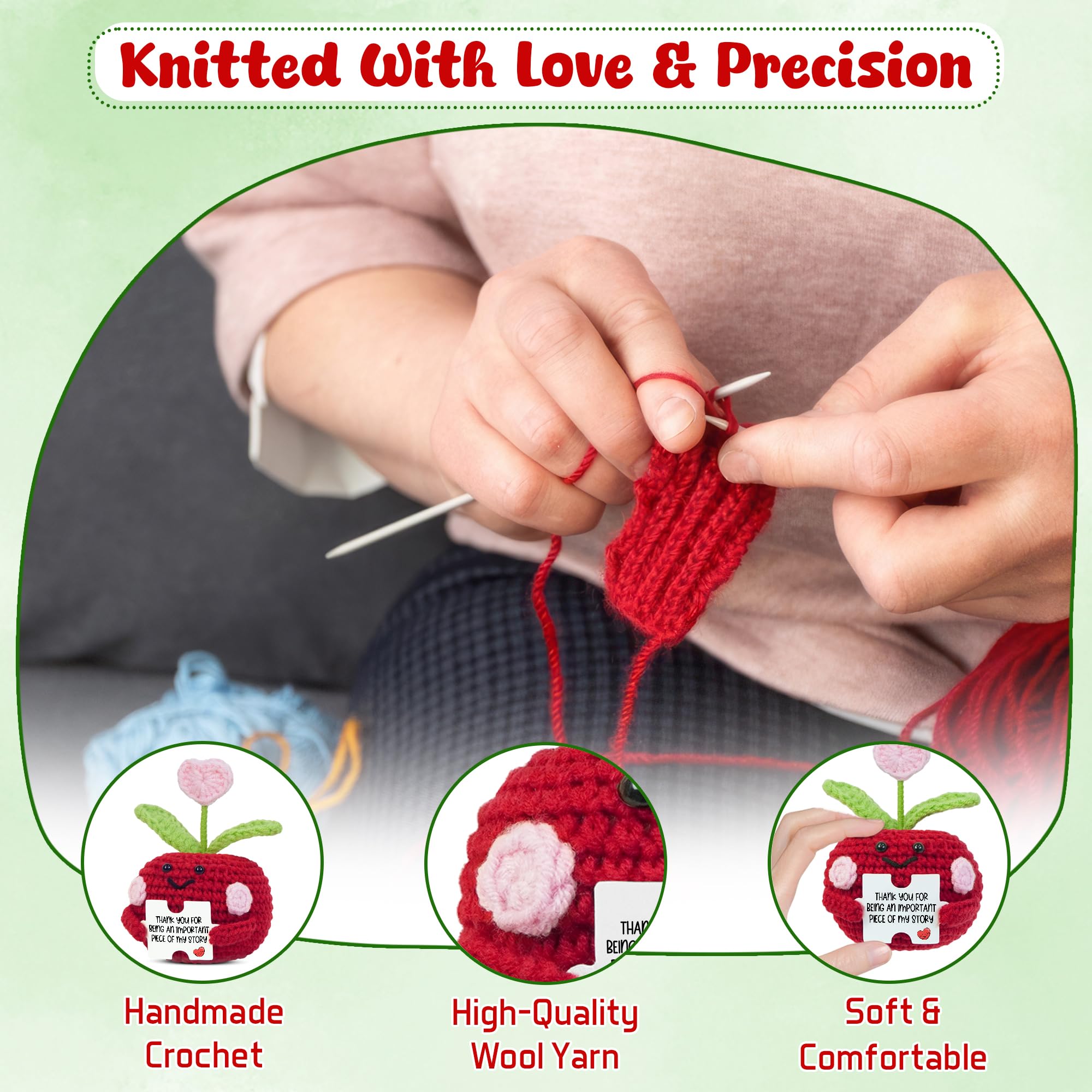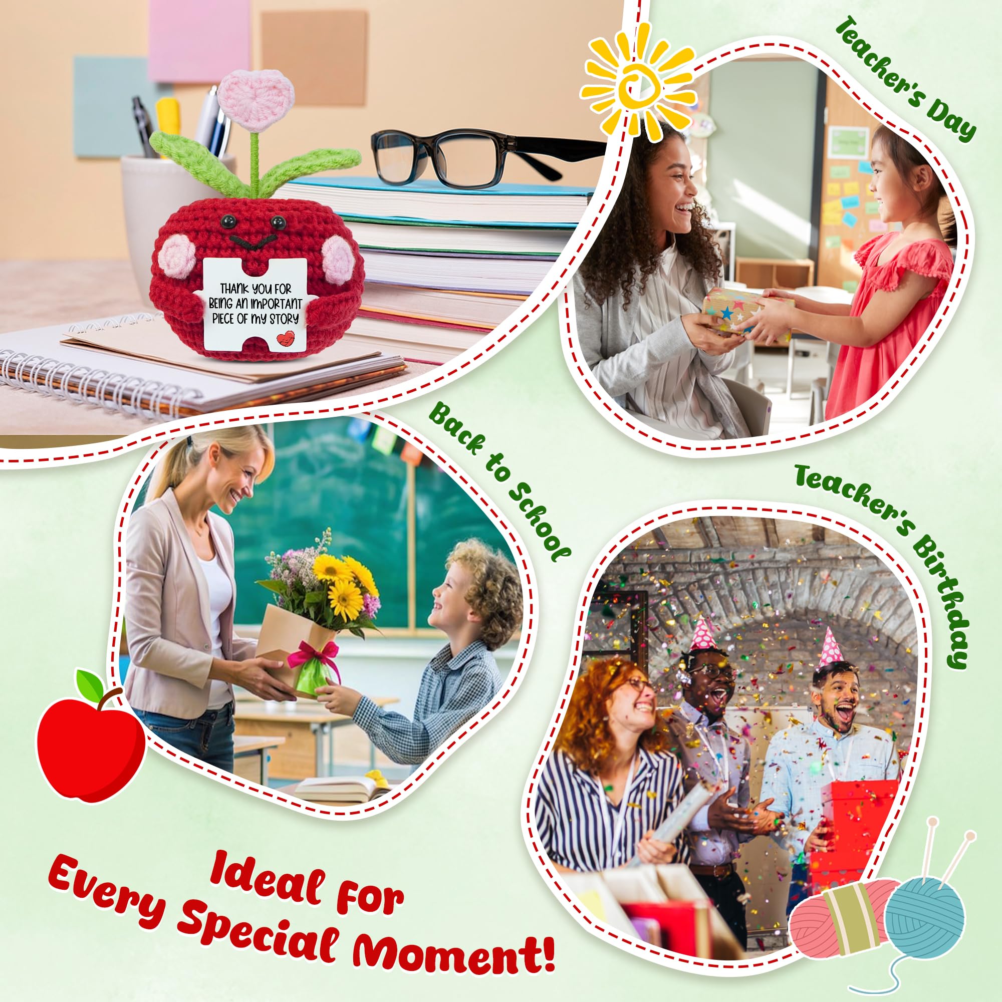 ADORABLE AND COMPACT – Measuring 4.13" x 3.35", this apple crochet is a charming reminder of appreciation. Beautiful for decorating a teacher's desk or as bulk teacher gifts for the whole department. Its compact design makes it perfect as office decor, room decor, and table decor, adding a cozy touch to any space.
