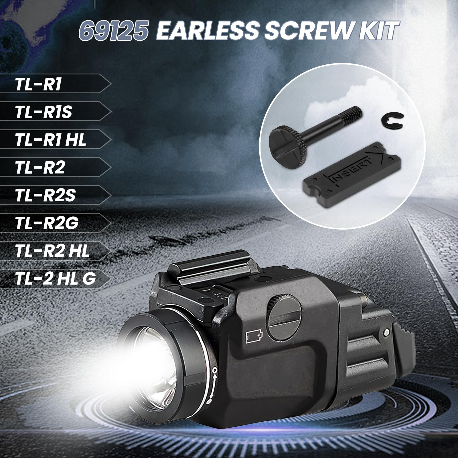 Compatibility: Earless screw kit 69125 compatible with Streamlight TLR flashlight TL-R1, TL-R1S, TL-R1 HL, TL-R2, TL-R2S, TL-R2G, TL-R2 HL and TL-2 HL G