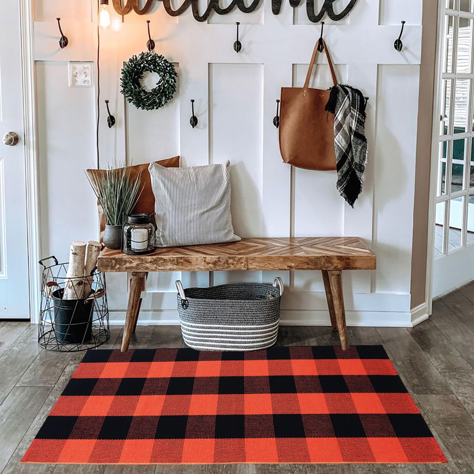 👍High Quality:Hand-woven buffalo plaid rug is made of fabric cotton, the thick cotton material is elegant and luxurious, durable and comfortable, a great outdoor rug.