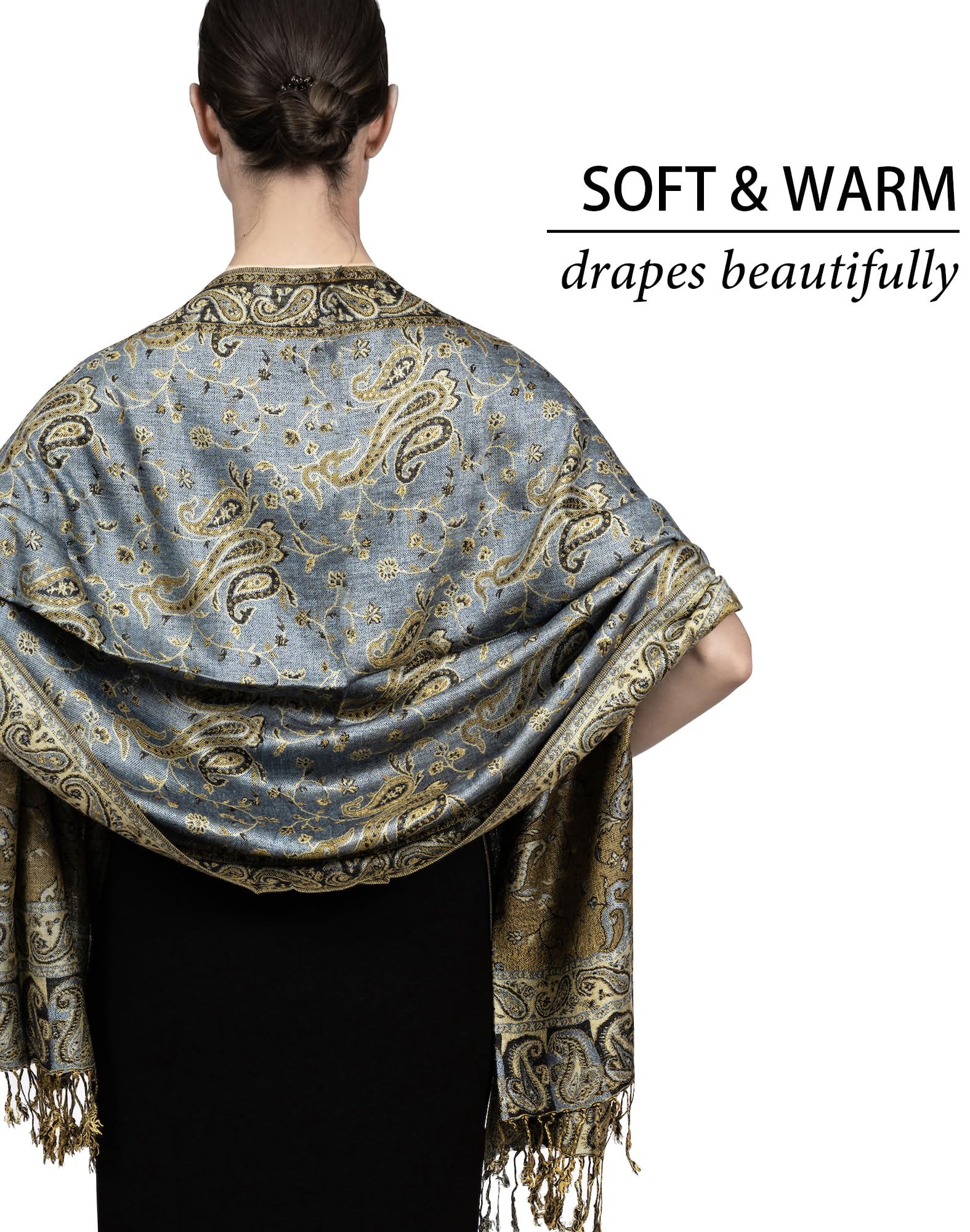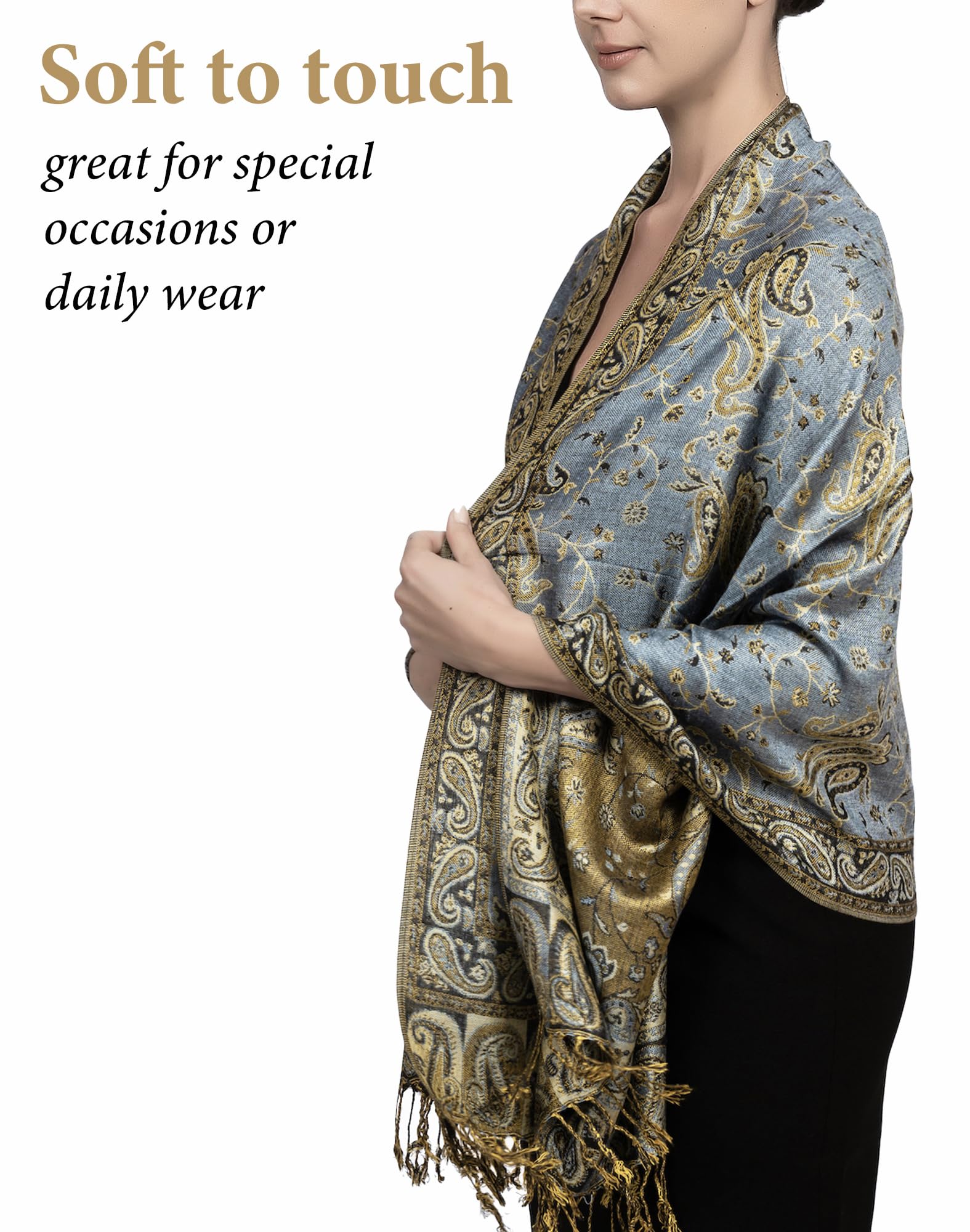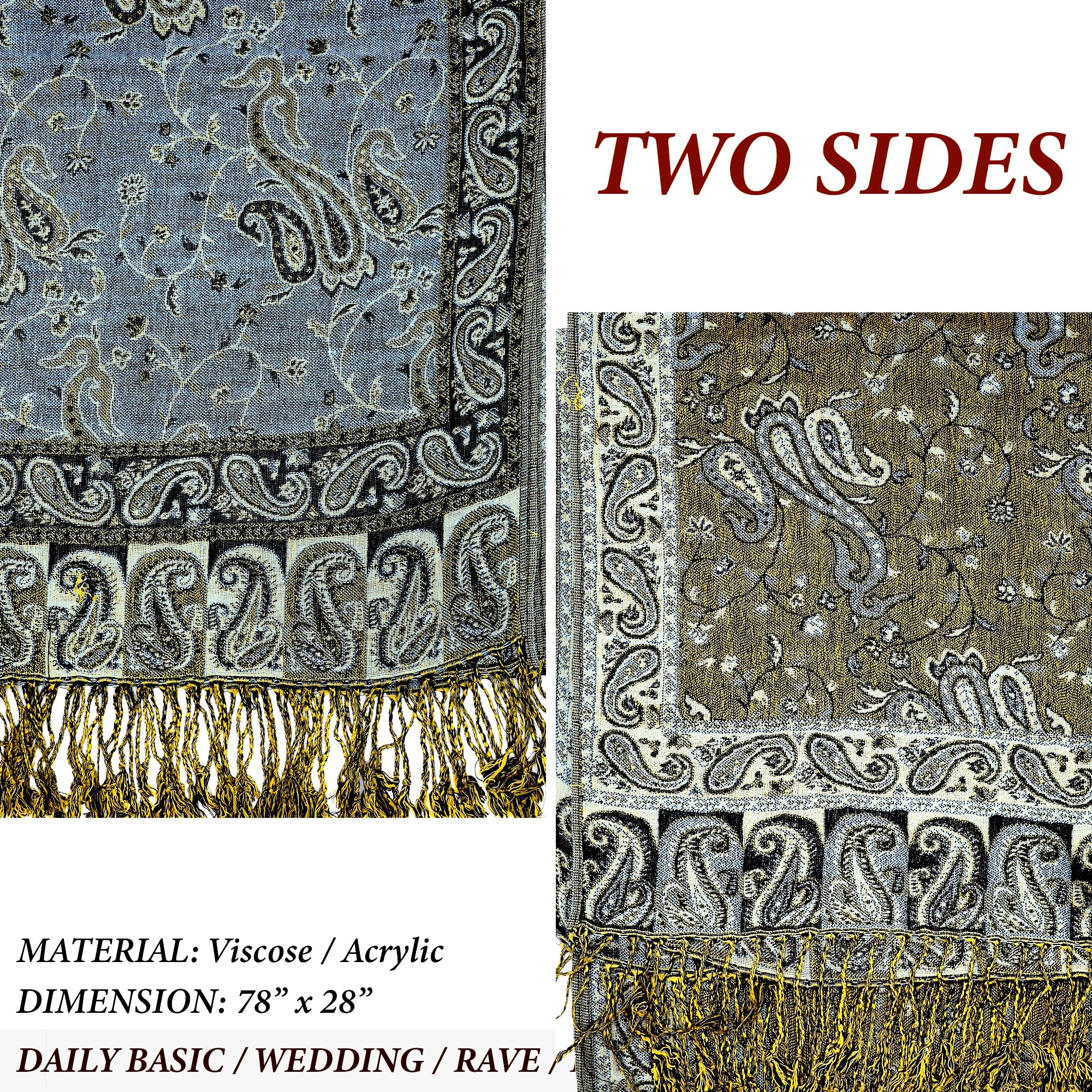 ✔️ Exotic Tapestry Look with Reversible Design – This reversible paisley shawl wrap for women features two beautiful color tones in one piece. It complements everything from evening gowns to rave outfits for men and women, offering vibrant style with graceful comfort.