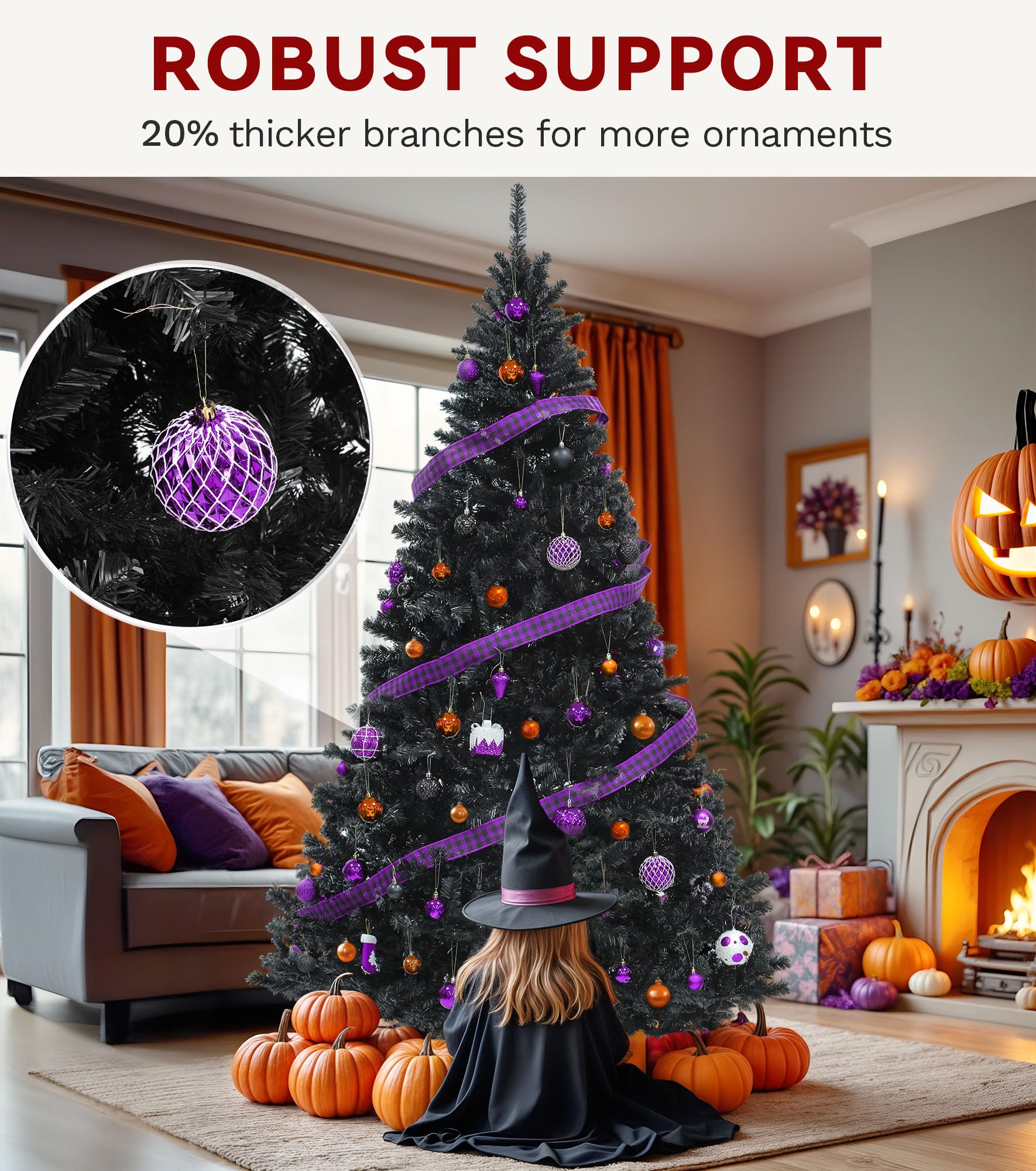 Thickened base & branches: The main trunk and branches of the black christmas trees with lights are thickened by 20%, which can better carry all kinds of decorations and won't be easily bent and deformed, and the base is designed with a thickened metal bracket, which presents a strong support capacity and stability as a whole