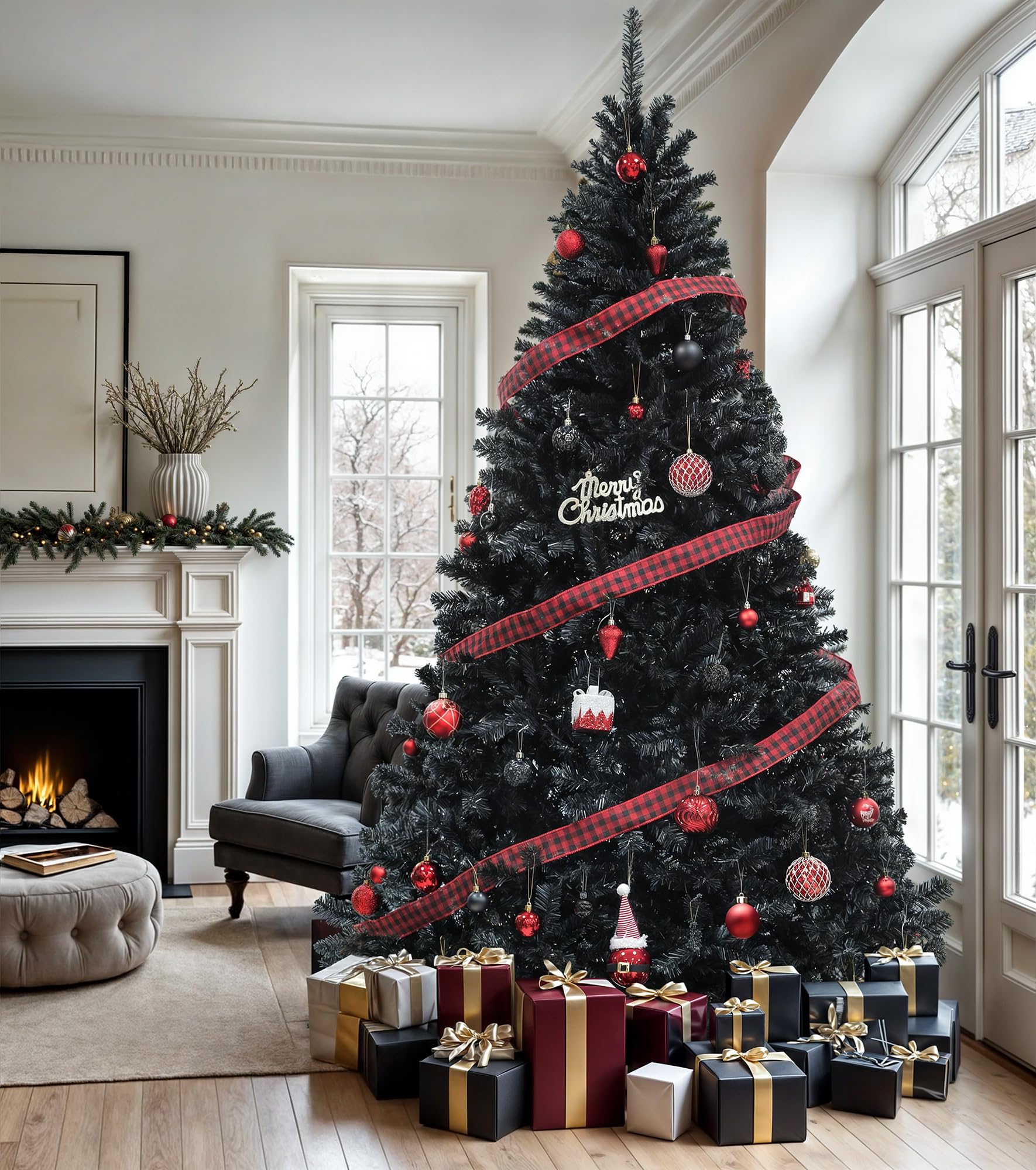 Classic Style Design: DWVO 6ft black christmas tree is made of high qualified PVC material, each needle is modelled on natural fir leaves, with unique 3D craft, it is just like the real tree, adding a strong holiday atmosphere to your home