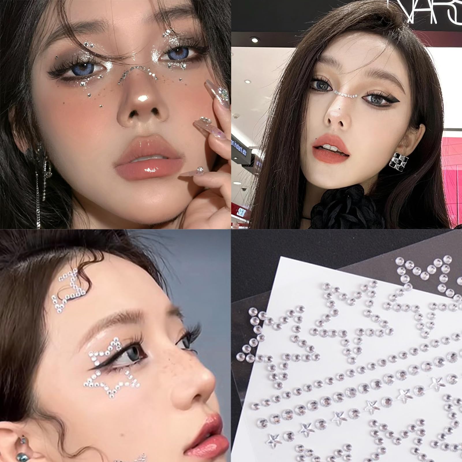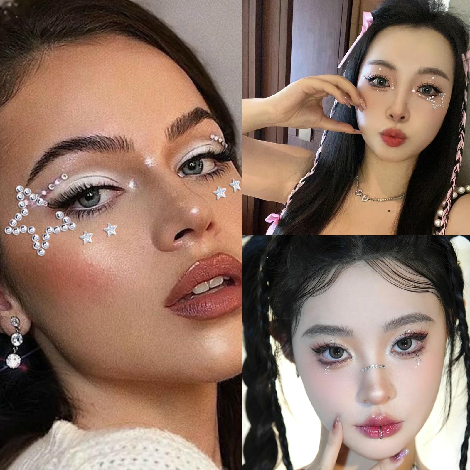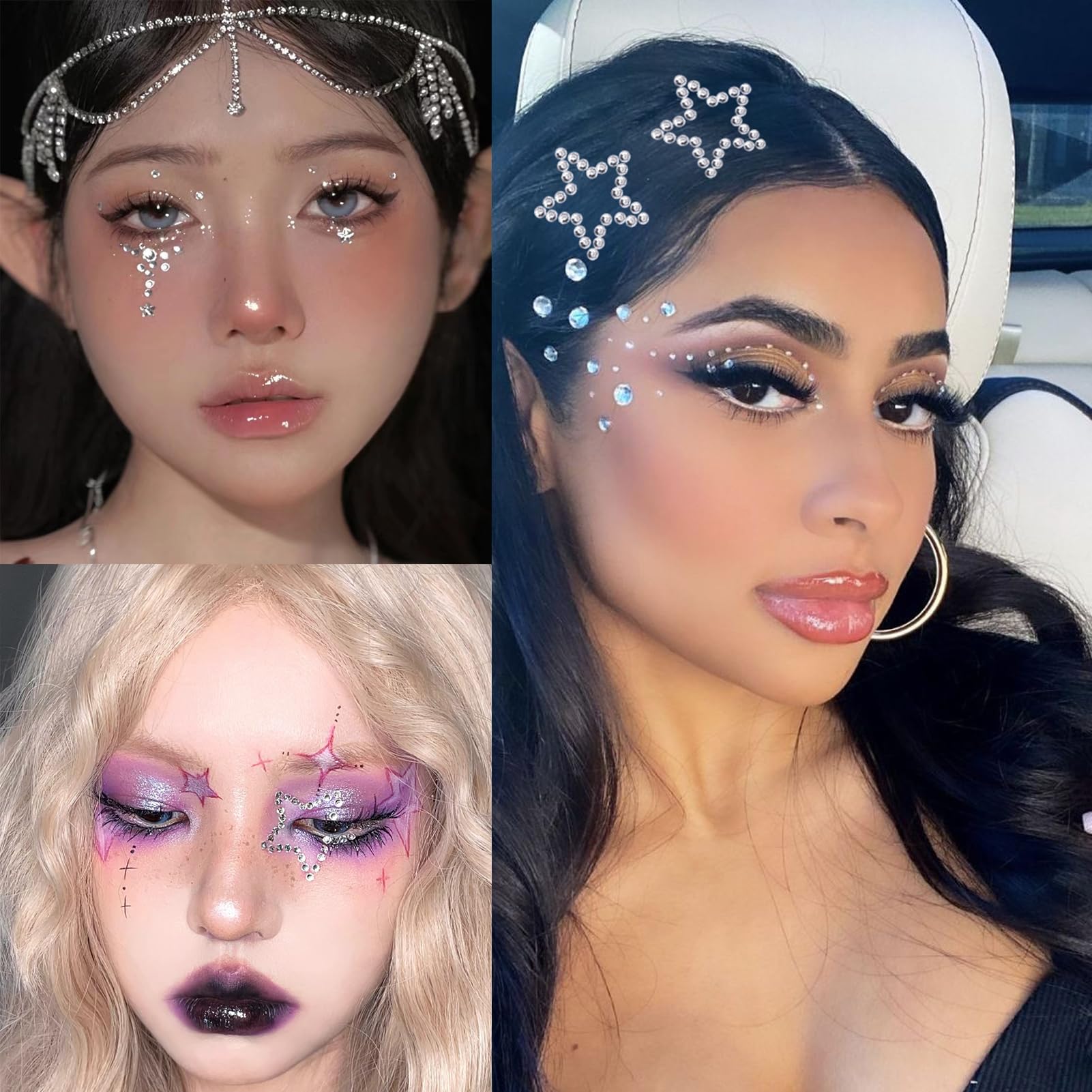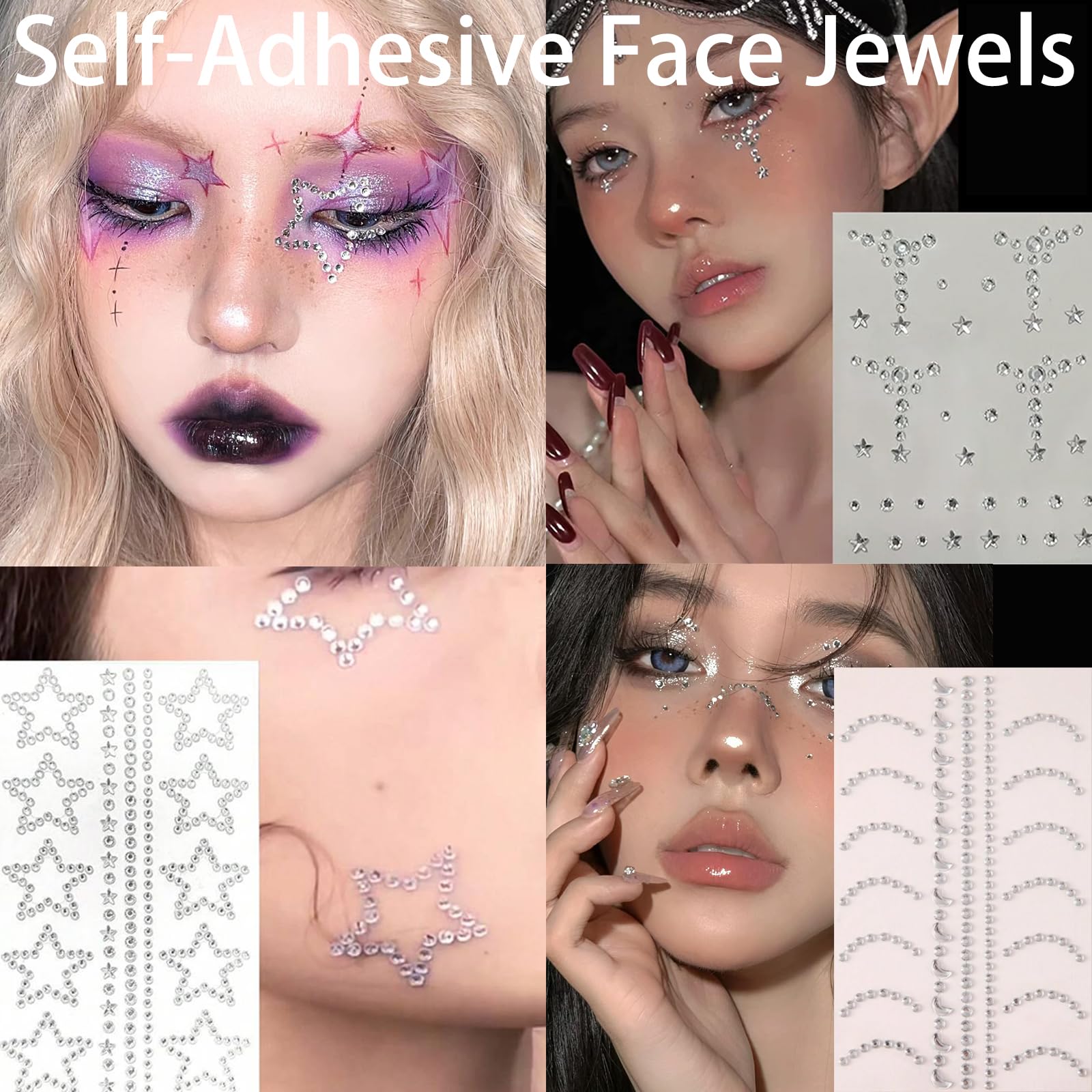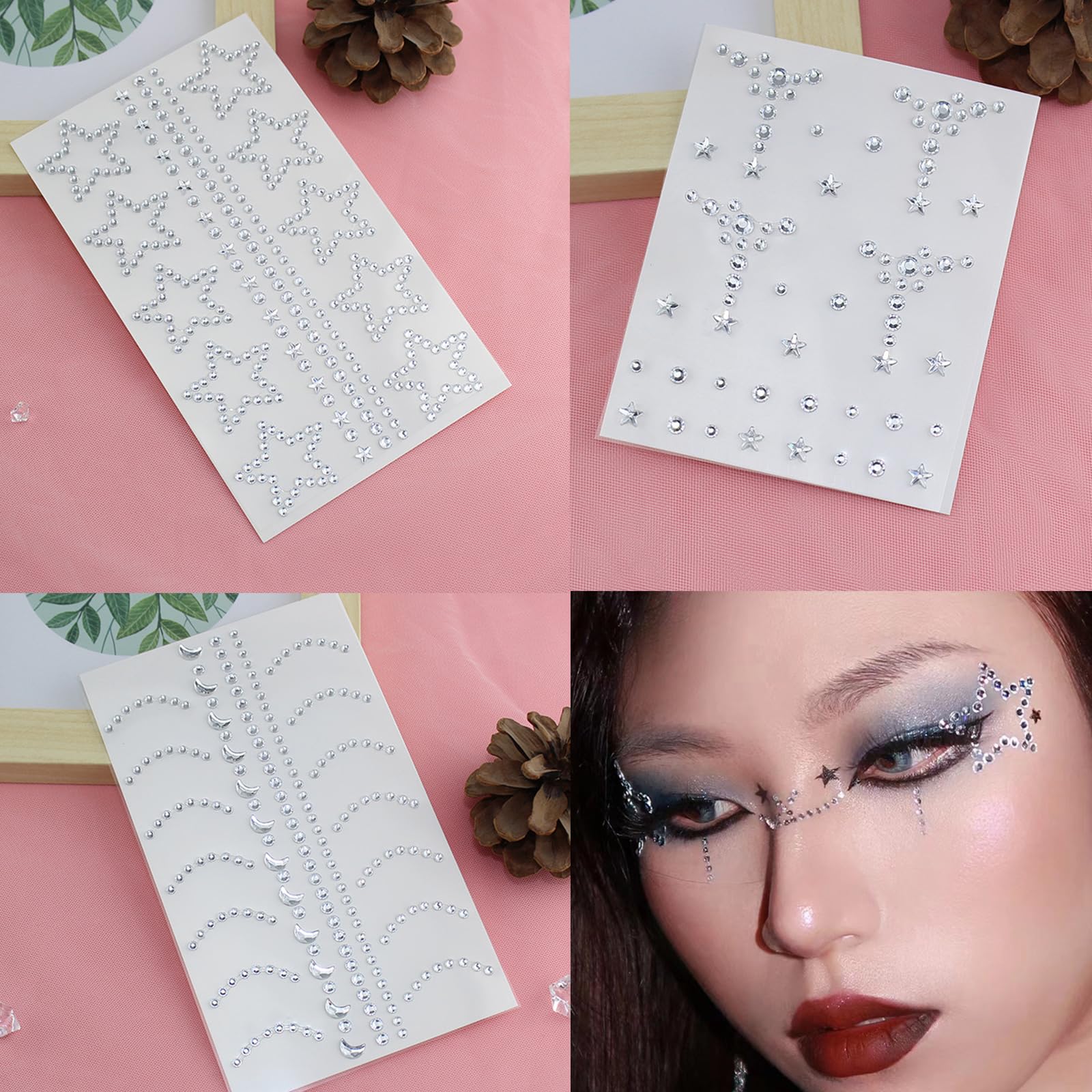 đăFace Jewels for Makeupă You will receive 3 facial face gems stickers, multiple elements of face jewels stickers (including fairy tears diamonds, large pentagram diamonds, moons, round diamonds) that can be used for freckles, hair, eye gems, makeup festivals, or anything you want!