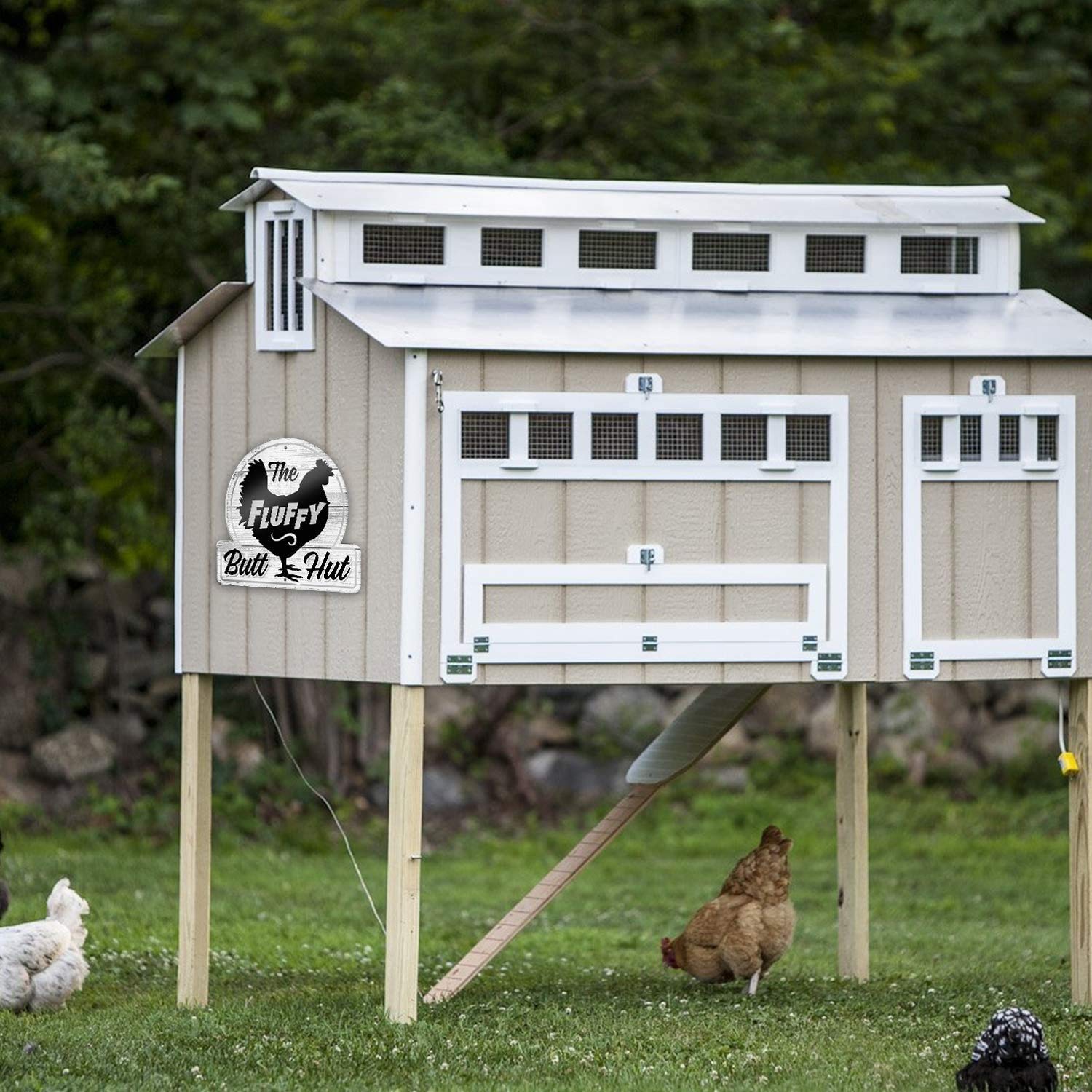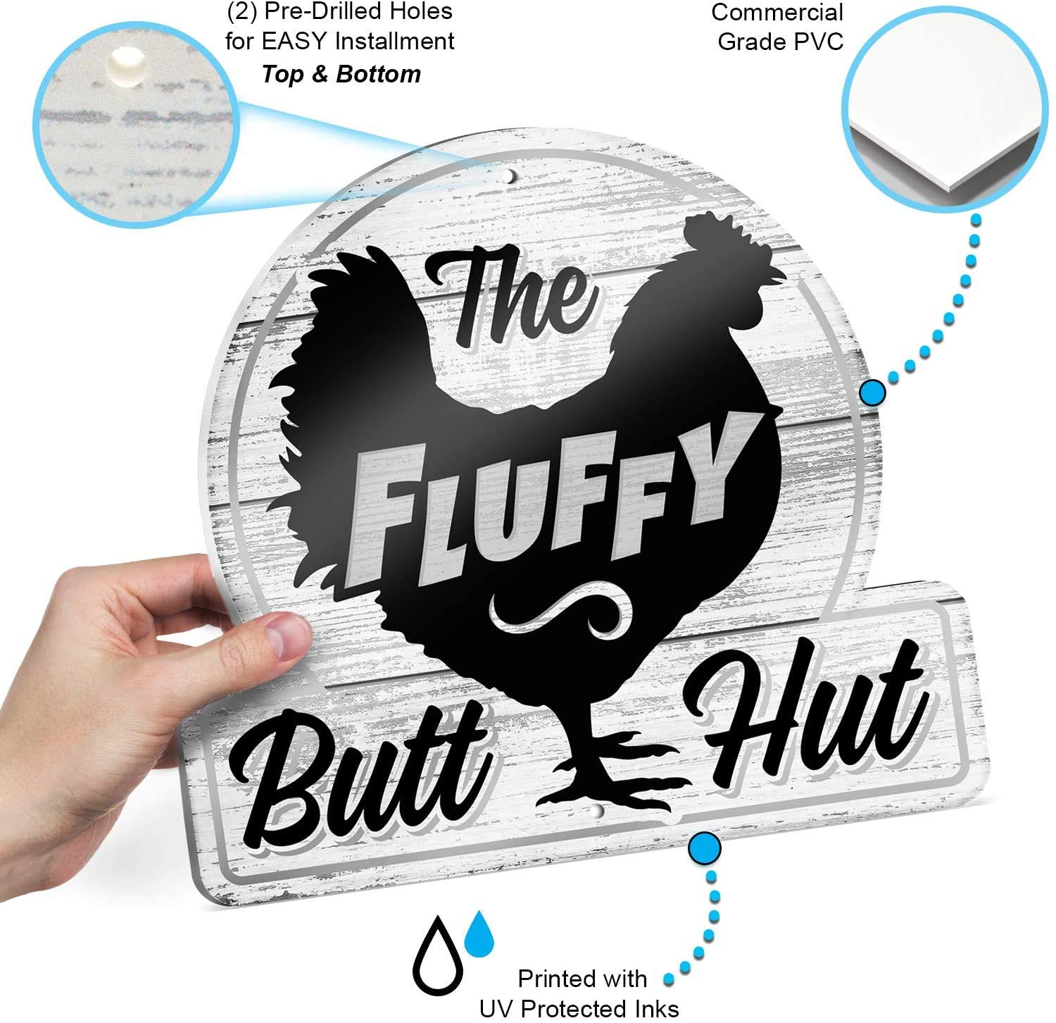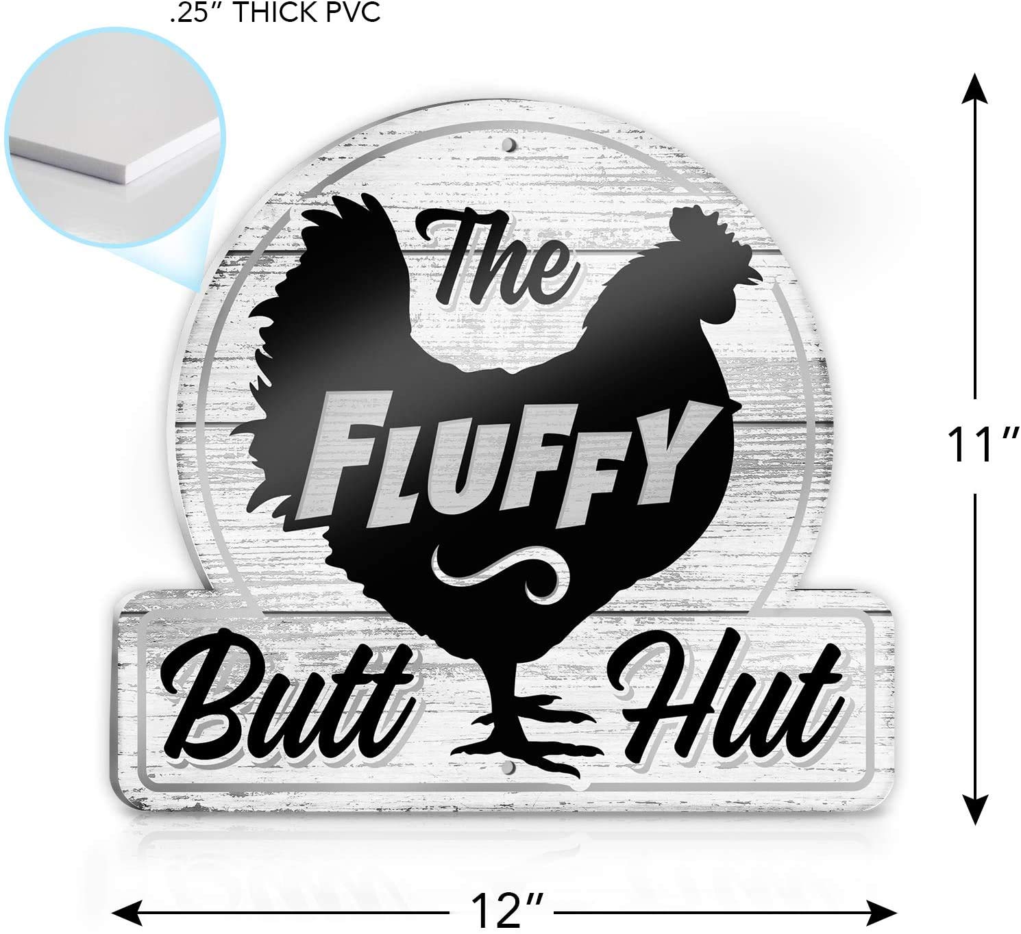 ideal Size For Coop Decor: This 12"x11" funny chicken coop sign is made of durable 5mm thick PVC material, perfect for coop and yard decoration; lightweight and easy to hang in any chicken coop