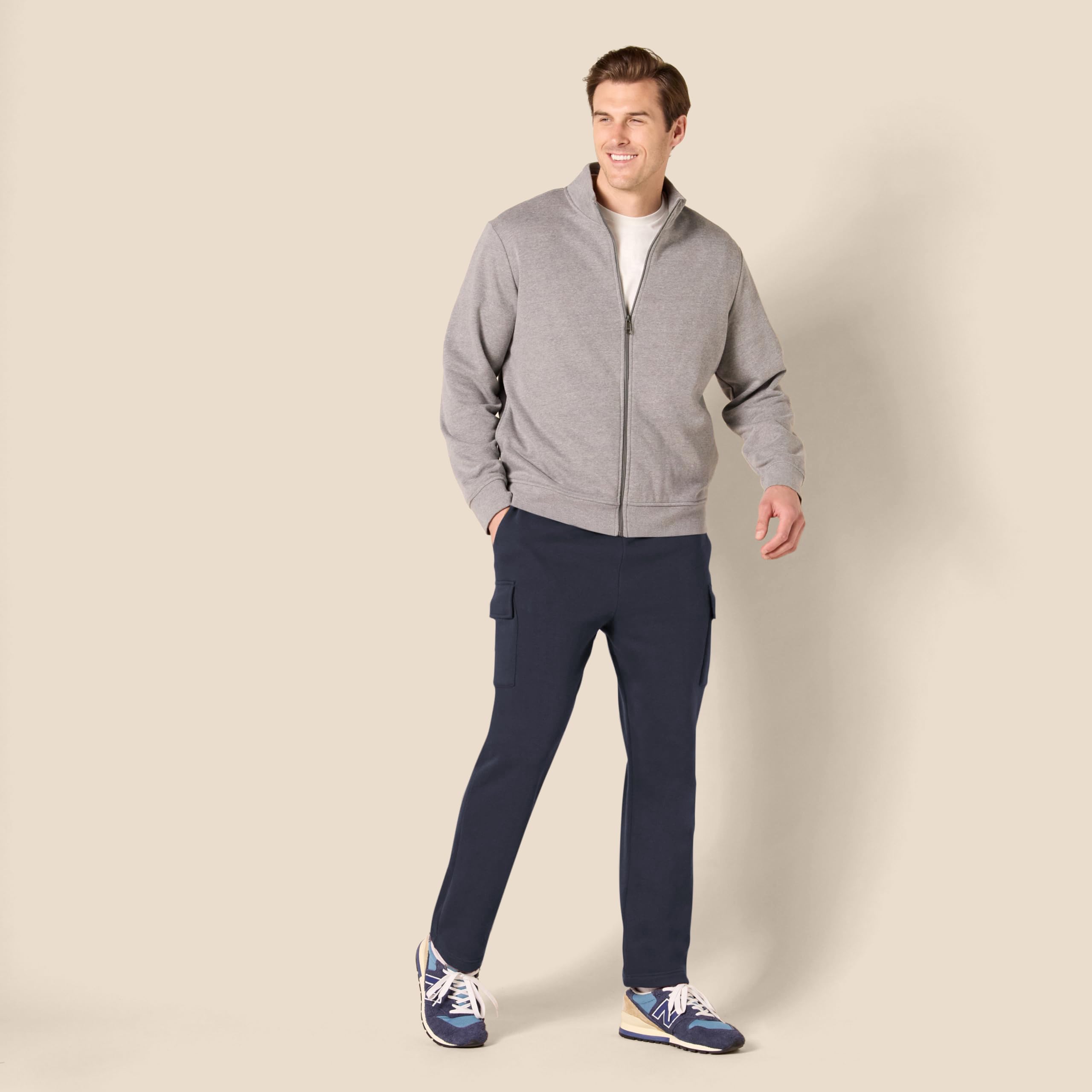 BRUSHED FLEECE: Cut from soft, brushed-back, cotton-polyester blend fleece in a midweight for staying cozy and keeping warm.