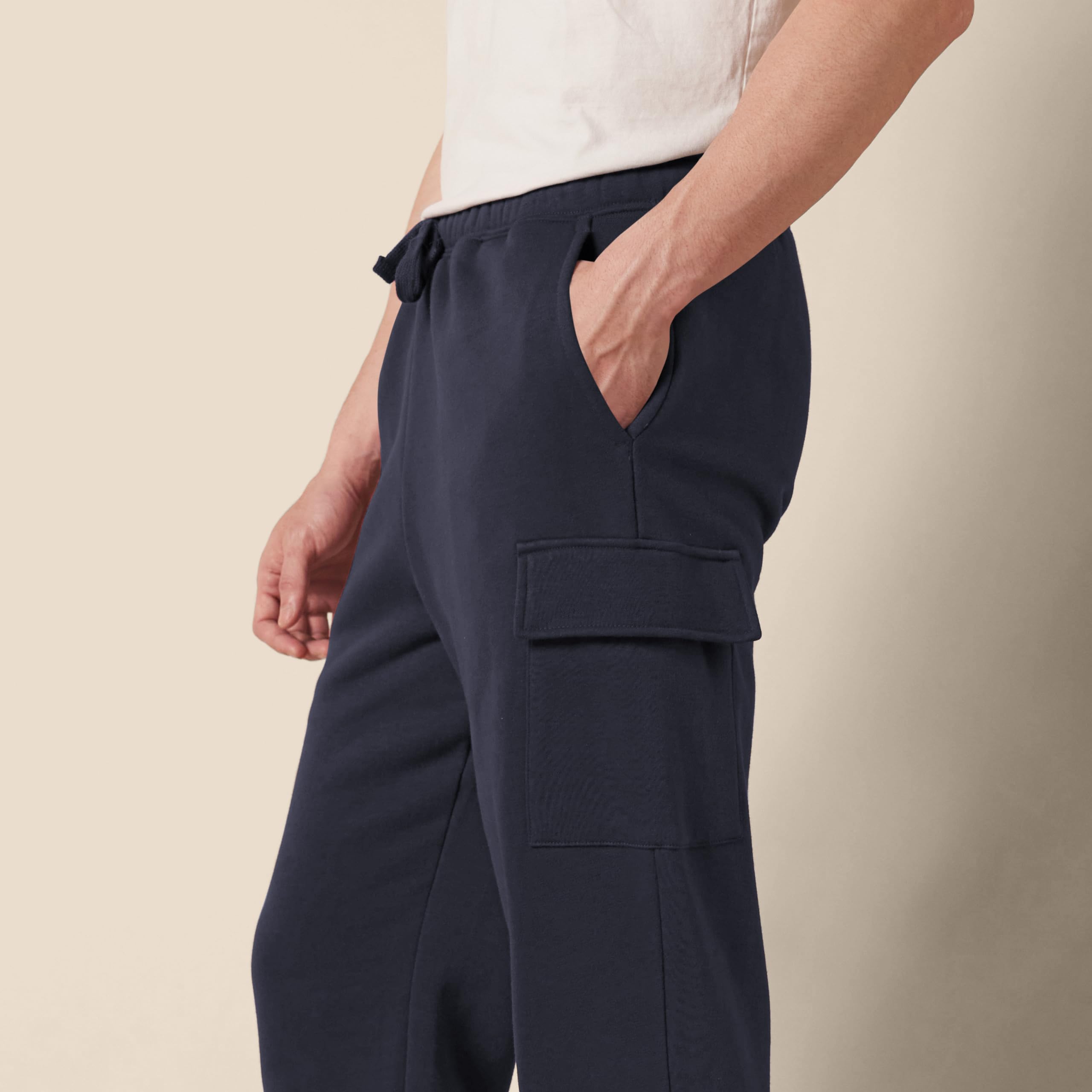 DETAILS: Features elasticated waistband with drawcord, two cargo pockets with hook and loop closures, and an open bottom leg.