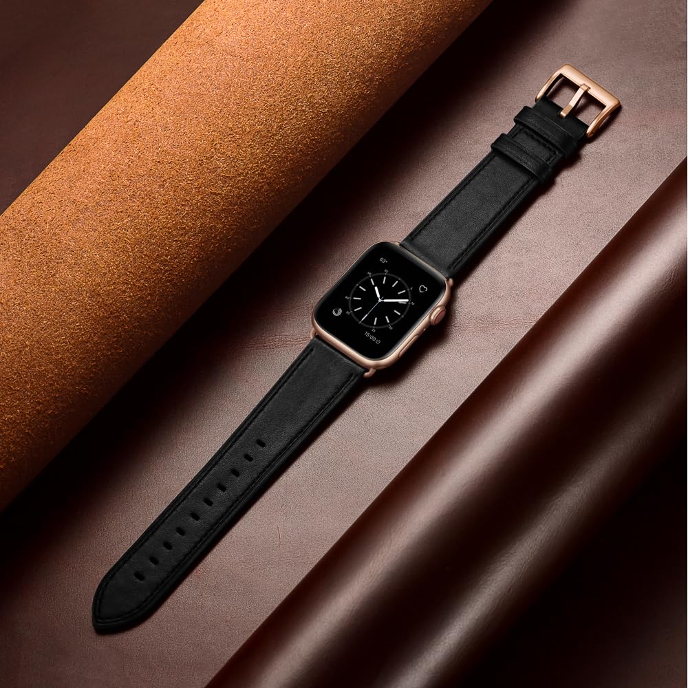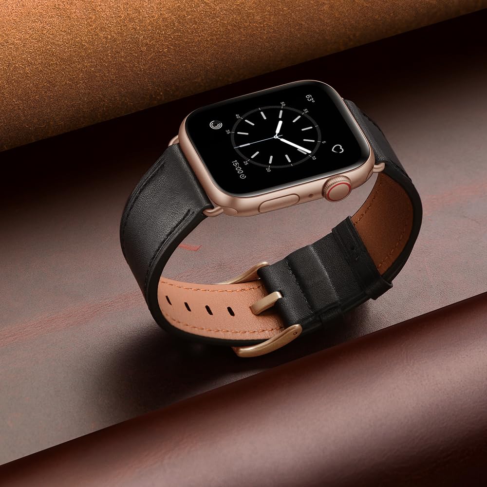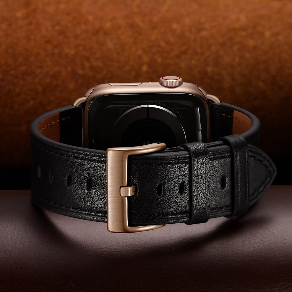 Design: OUHENG watch band uses fashionable leather style design with stainless steel buckle, convenient and easy to interchange. The watch band connectors and buckle are compatible with Apple watch Series 11/10/9/8/7/6/5/4/3/2/1/SE3/SE2/SE All models. It can be men's or women's, simple but attractive, look fantastic and giving a nice professional look on any occasion.