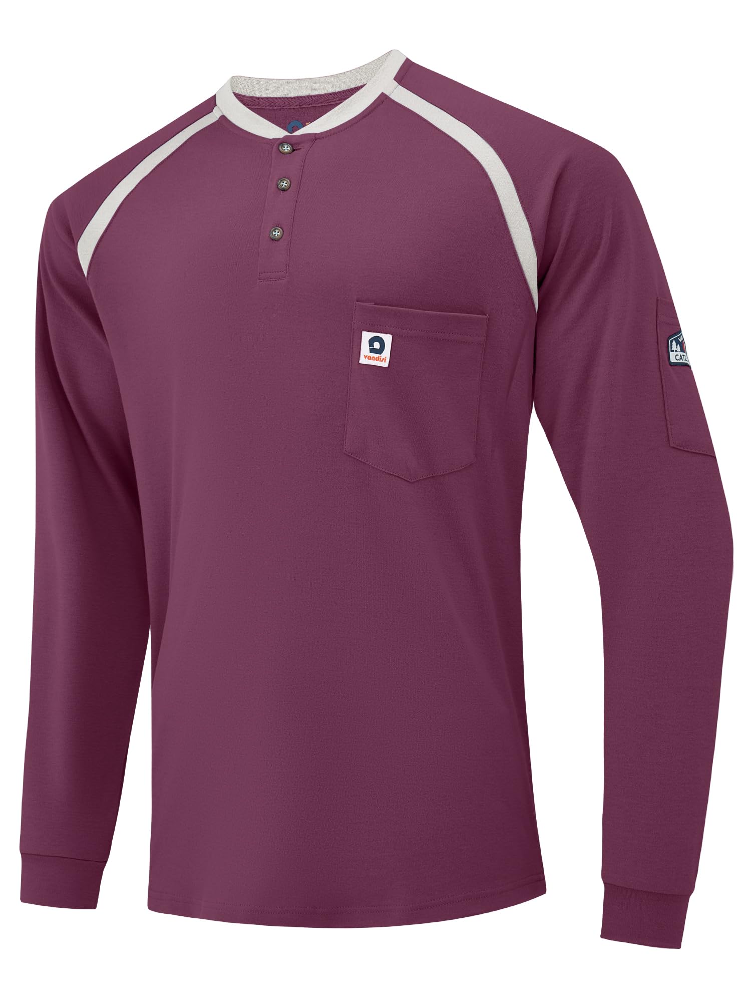 【Humanized Design】The Vandisi CAT 2 FR shirt features high-density seams and thermal transfer labels neckline for a true comfort experience. Henry collar and rib knit cuffs, enhanced fabric durability and stretch provide ease of movement and longer-lasting wear. Raglan sleeves significantly improve the fit of the shirt, 1 left chest pocket and 1 sleeve pocket for great convenience!