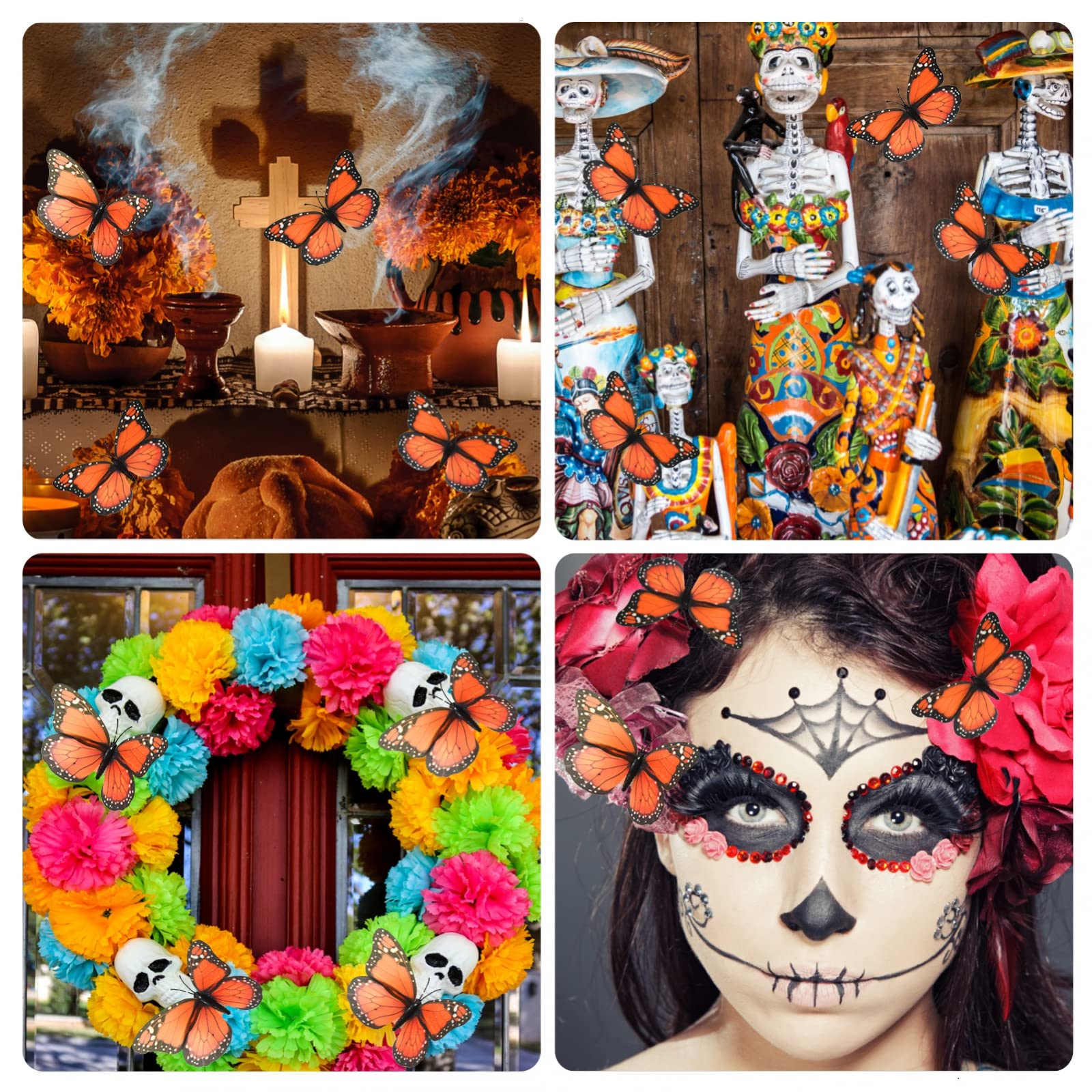 Realistic Monarch Butterfly: The dia de los muertos decor exquisite 4.72'' monarch butterfly looks real making people unbelievable that is the faux monarch butterfly