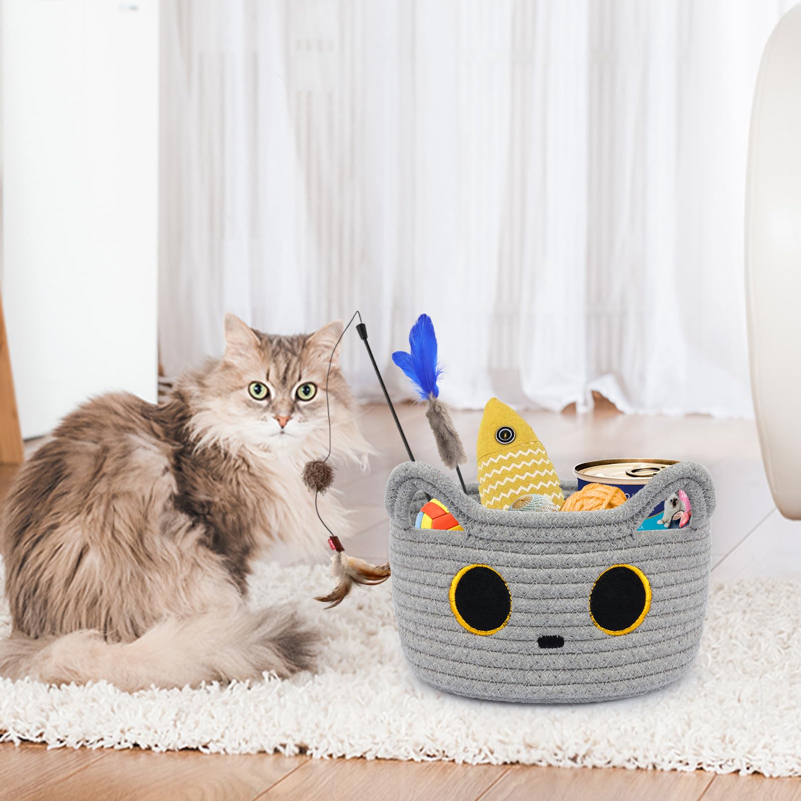 Soft and Long-lasting Material: We use cotton rope basket. No chemicals, odourless, soft edges, no hard objects and safe. It is finely sewn with cotton thread, no extra threads, good quality. Basket comfortable to touch. High quality grey cat cotton rope basket is long-lasting use, also can machine washable in a laundry bag or wash hand
