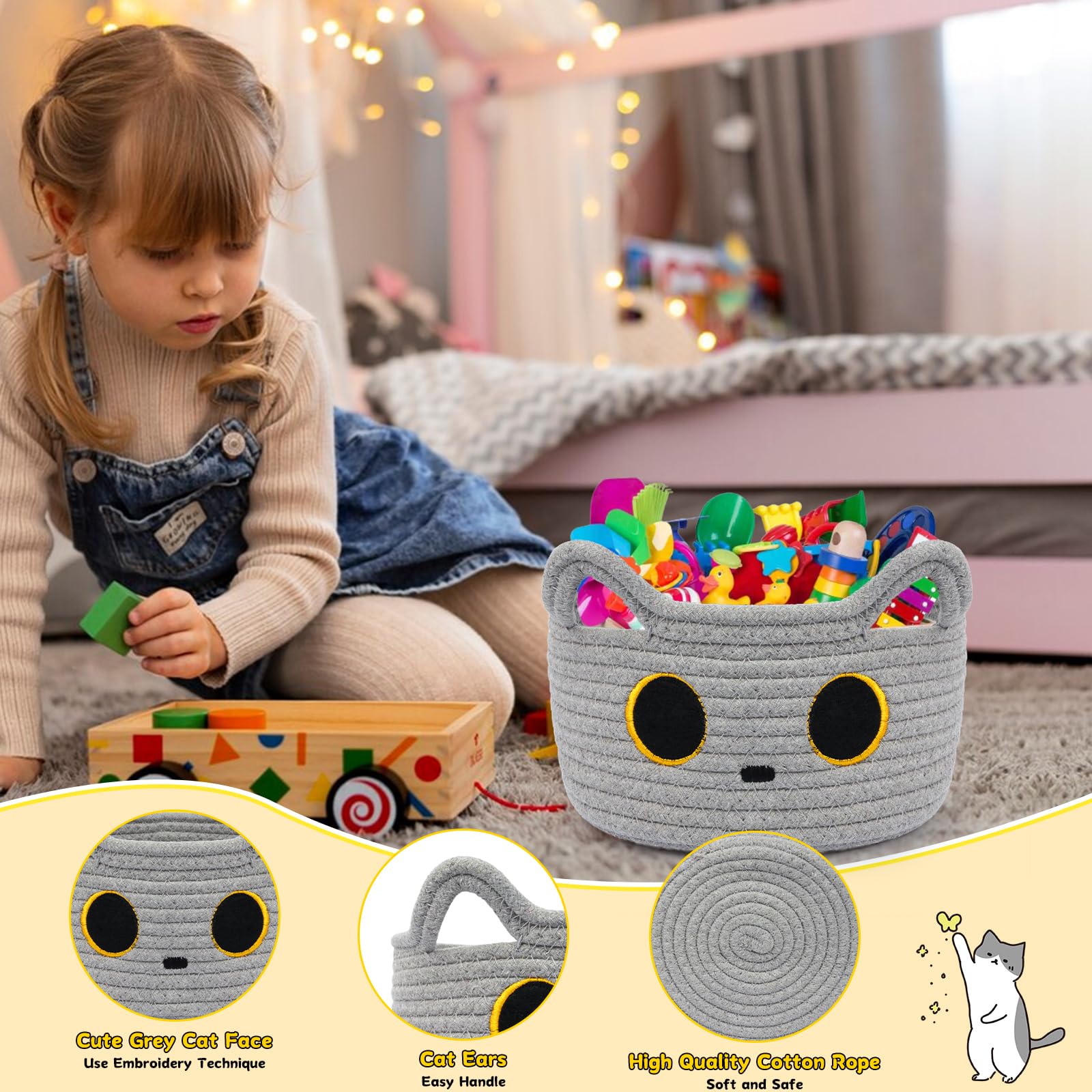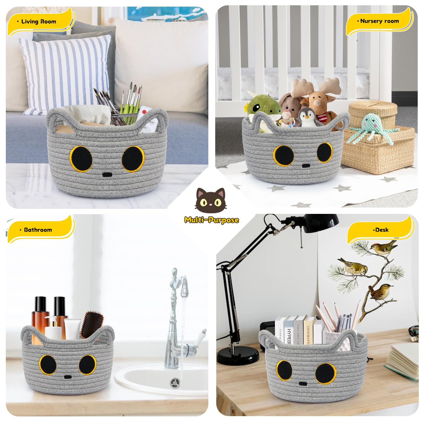 Cute Cotton Rope Basket Design: We've added a grey cat to the original cotton thread woven in a single colourway,cat pattern use embroidery technique. This makes it practical and fun to decorate your space. The materials used are also non-allergenic so that you and your family can use it with peace of mind. The ears can with handles for easy carrying. Good small cat storage basket