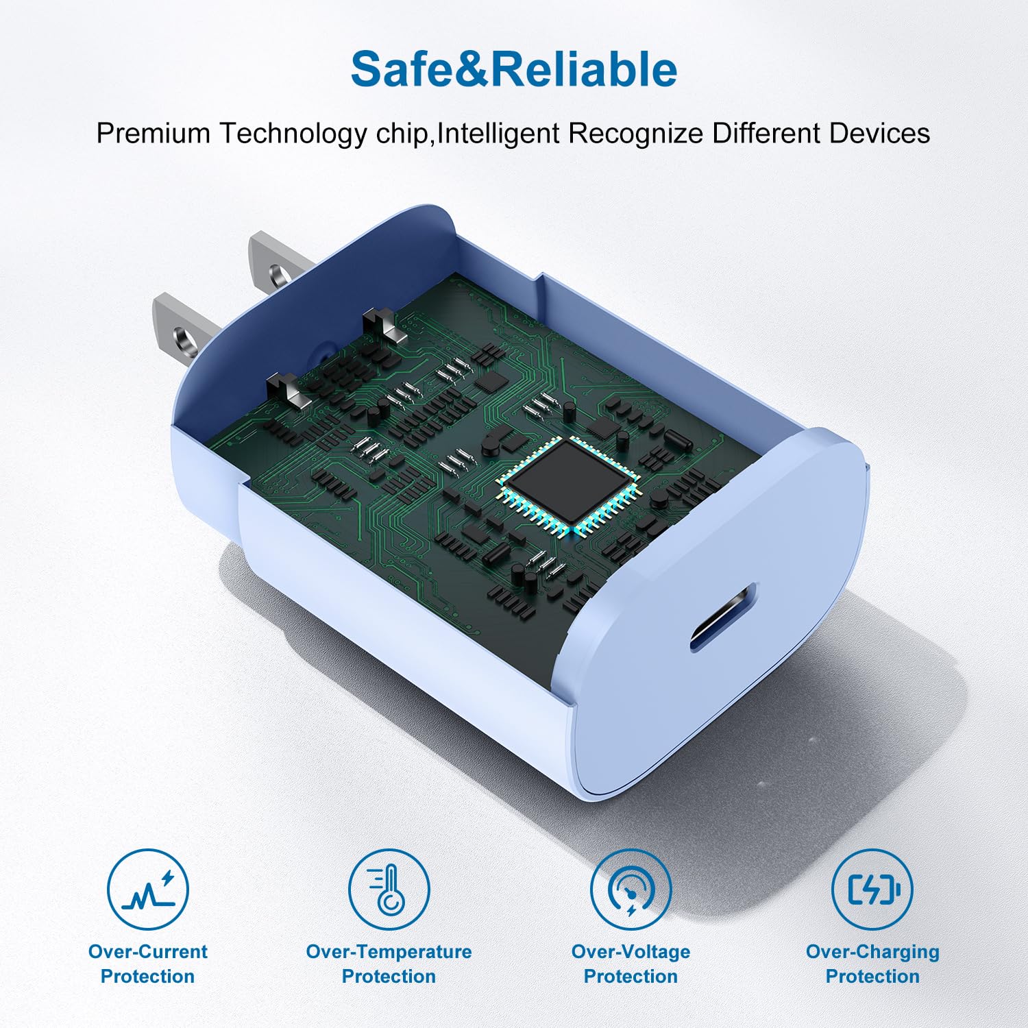 【Safeguard Protection】USB c Android chargers comes with premium built-in safeguards and intelligent IC identification technology to prevent against short circuit, over-current, over-voltage, over-heating and over-charging. It can intelligently recognize the battery type and status, will automatically stop charging when fully charged for a safety charging and long lifespan.