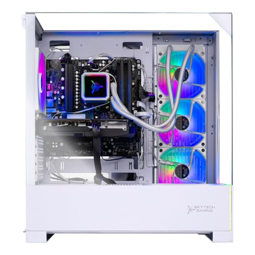 High-spec AIO liquid coolers used, delivering unmatched cooling performance for a perfect operational experience and unparalleled cooling performance. With hardware unrestricted by temperature limits, you can unleash its full potential. Whether gaming, creating, or working, you'll never suffer from thermal throttling again. | Skytech Archangel 5 Gaming Case with Tempered Glass, White | 1 Year Warranty on Parts and Labor | Free Technical Support | Assembled in the USA