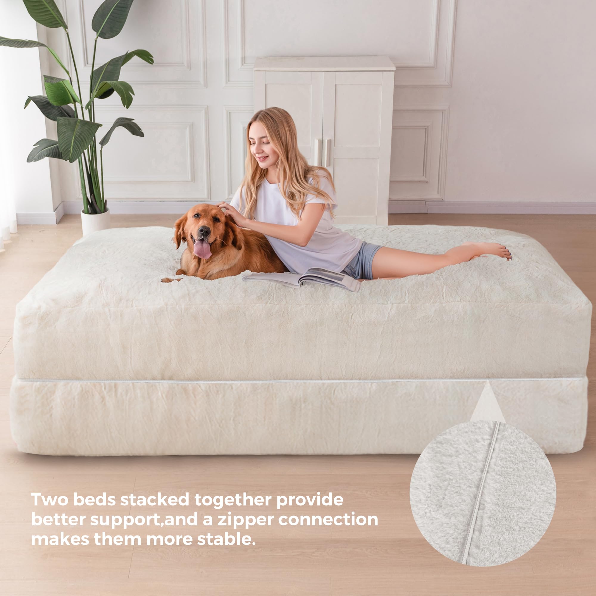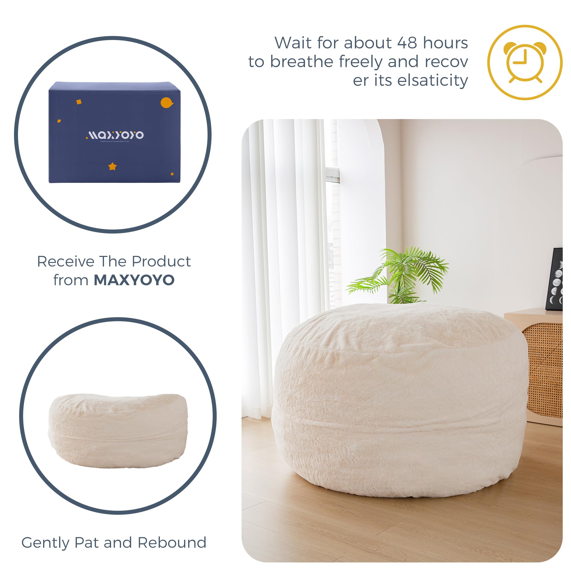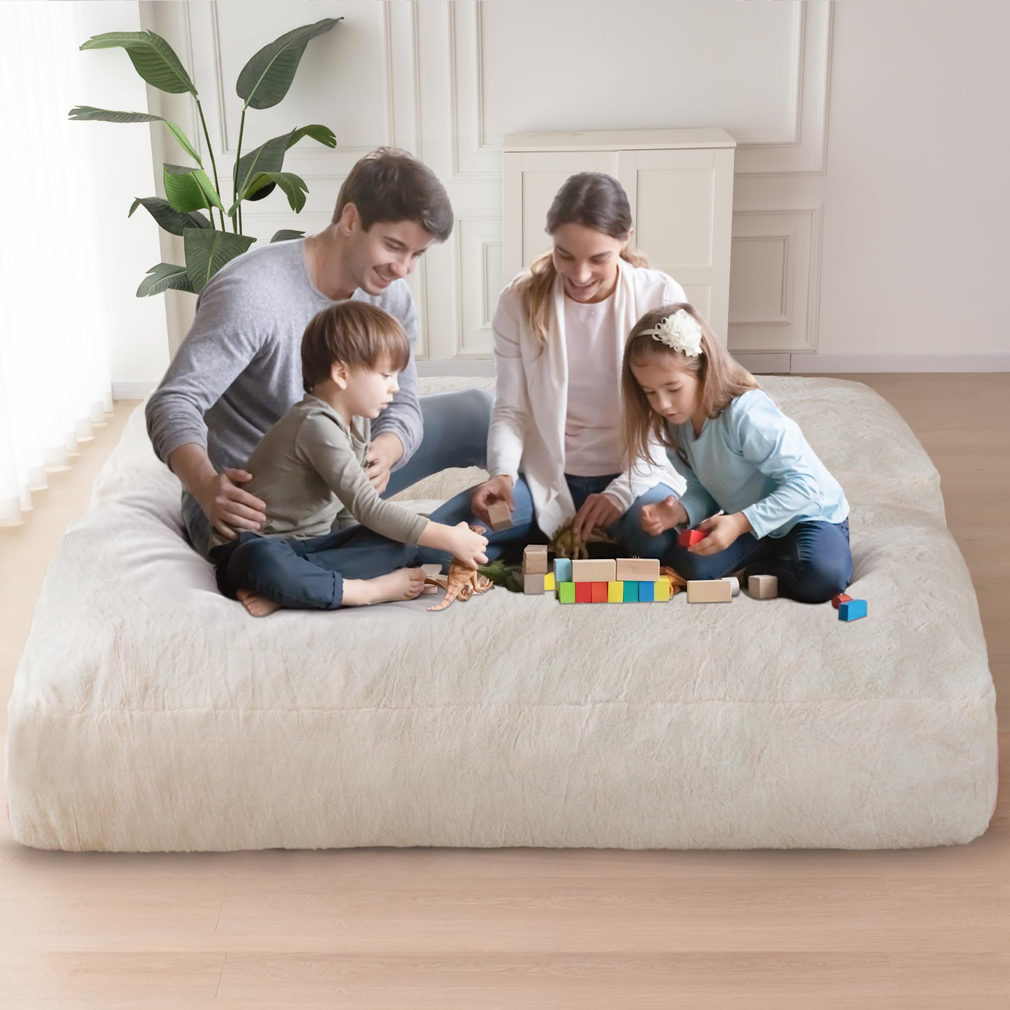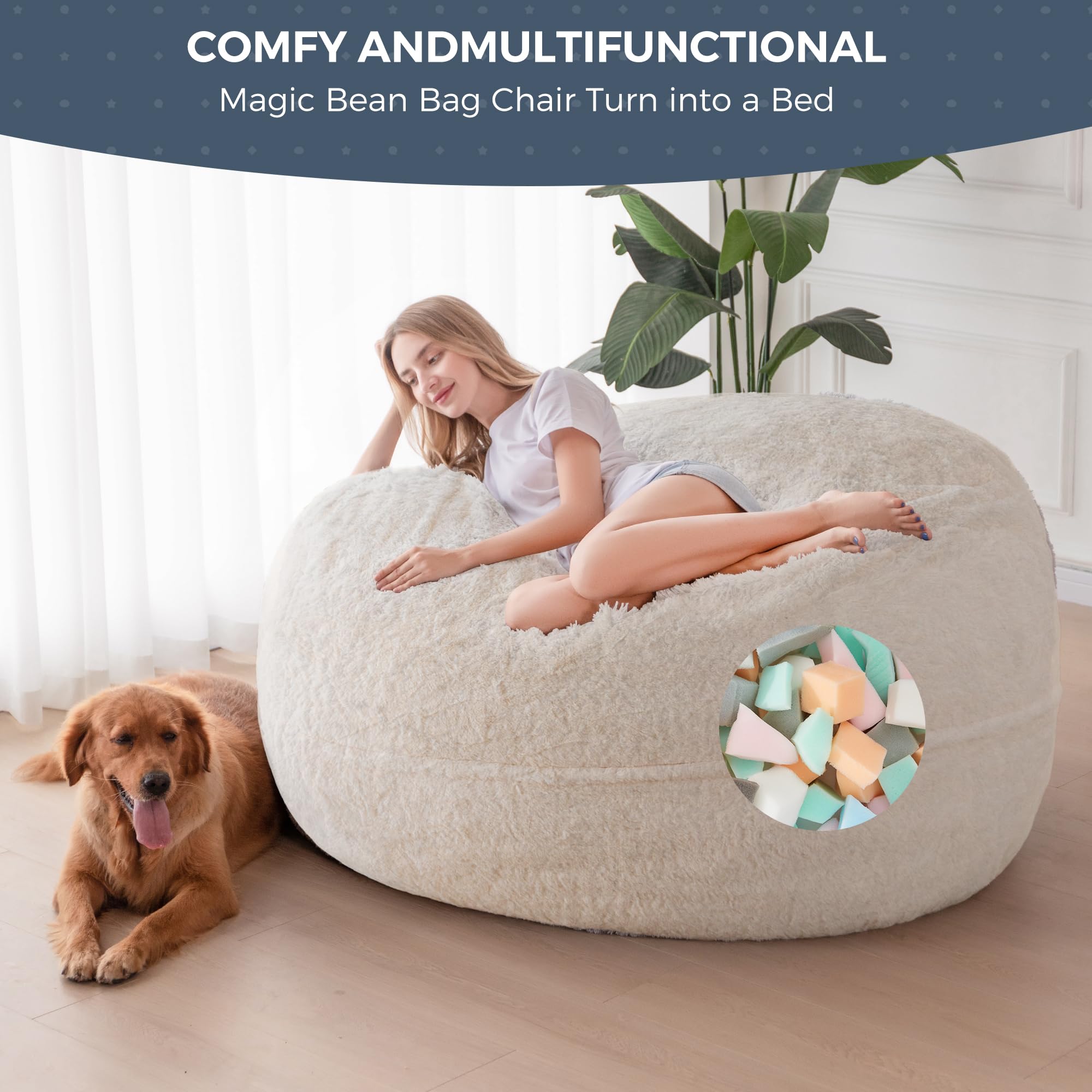 Comfort and Support Filling: Filled with high-density support foam, this bean bed offers optimal comfort and support. It takes approximately 2-3 hours for the huge bean bag chair to fluff up, and once it does, it plumps up evenly without any clumps. The fillers used are new eco-friendly high-density support foam, which is odorless and has high resilience, providing excellent support and durability.