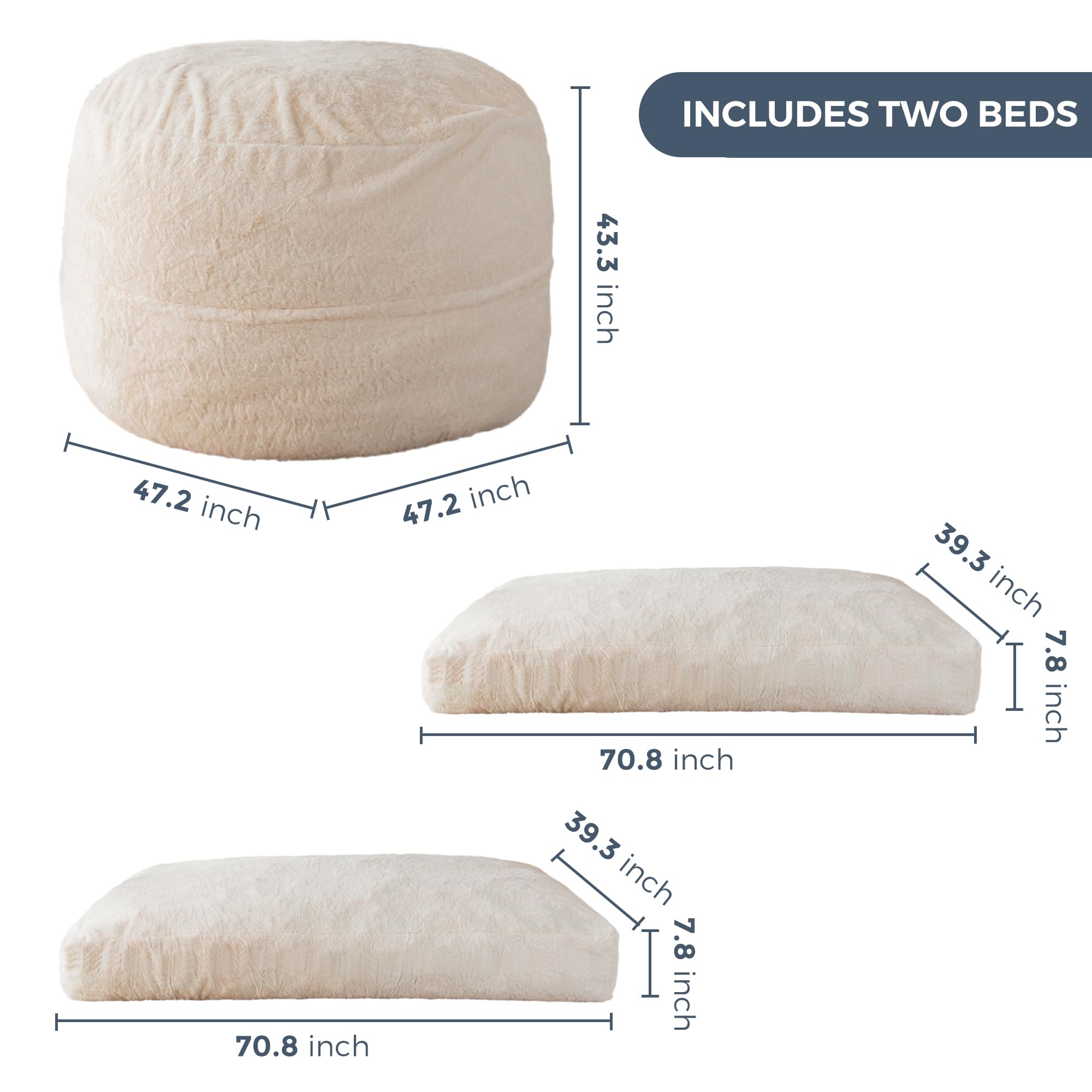 Washable & Comfy Cover: The outer cover of the bean bag chair is made of breathable premium corduroy fabric, which has a soft and skin-friendly texture. It's also machine washable, allowing for easy cleaning. The bean cover features a long zipper that runs the length of the bean bag, making it simple to take on and off. In case of spills or stains, the cover can be easily washed to restore it to a like-new condition.