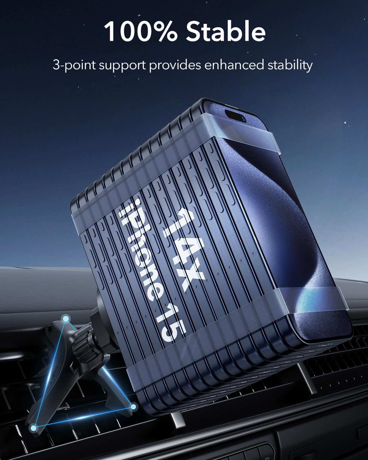 Unshakeable Stability: unique design hooks onto vents and locks firmly in place while mounting arms further enhance stability, ensuring peace of mind and a steady screen over even the bumpiest roads