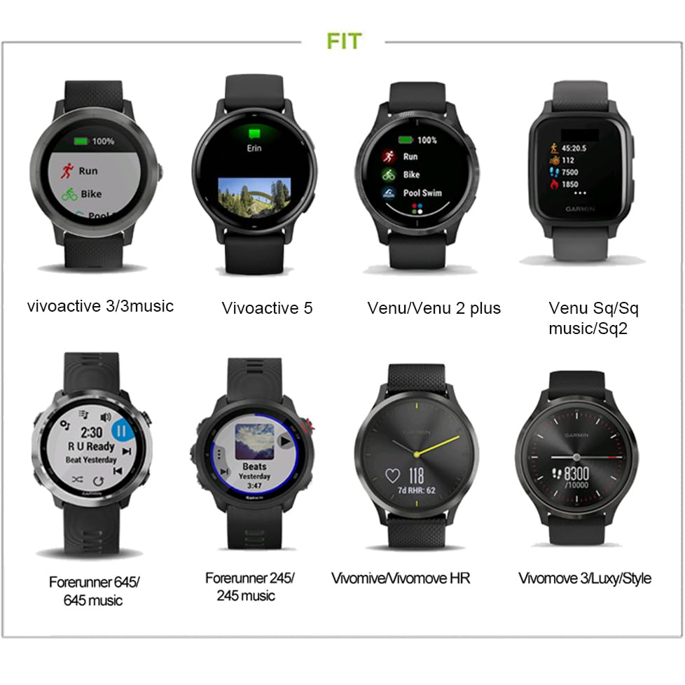 【Compatibility】RuenTech watch band retainer compatible with Garmin Watch Vivoactive 6, Vivoactive 5, Vivoactive 3, Vivoactive 3 Music, Forerunner 245&245 Music, Forerunner 645&645 Music, Venu&Venu Sq, Vivomove&Vivomove HR, Fenix 6S&6S pro&6S sapphire, Fenix 5S&5S plus&5S sapphire.