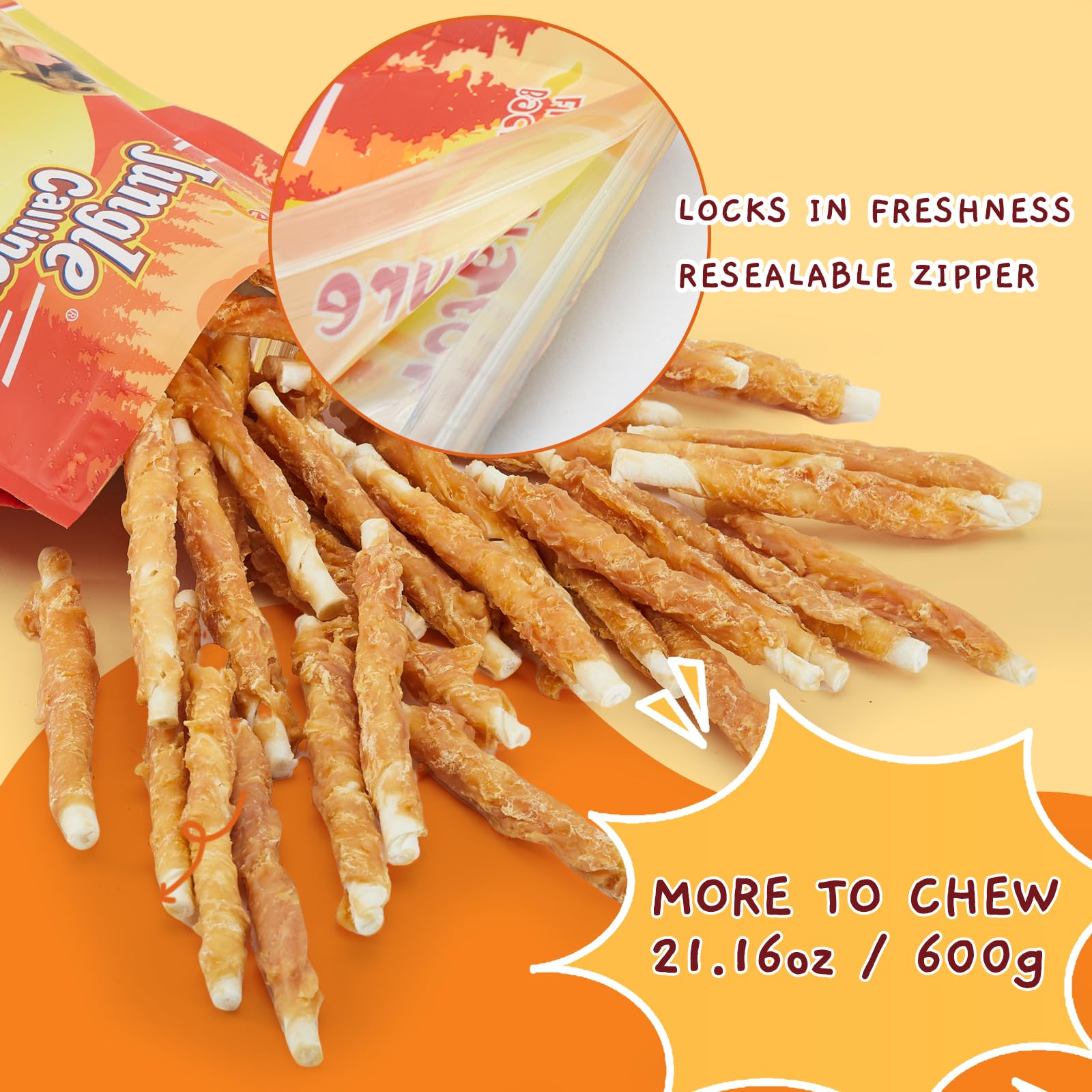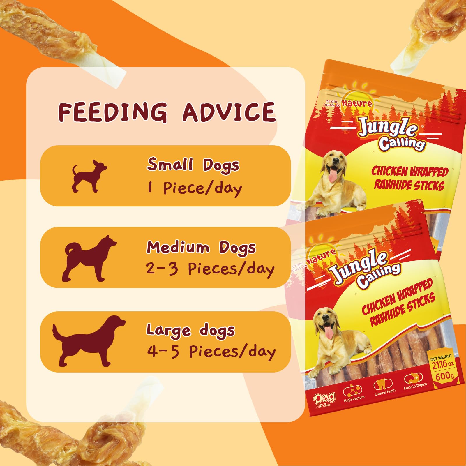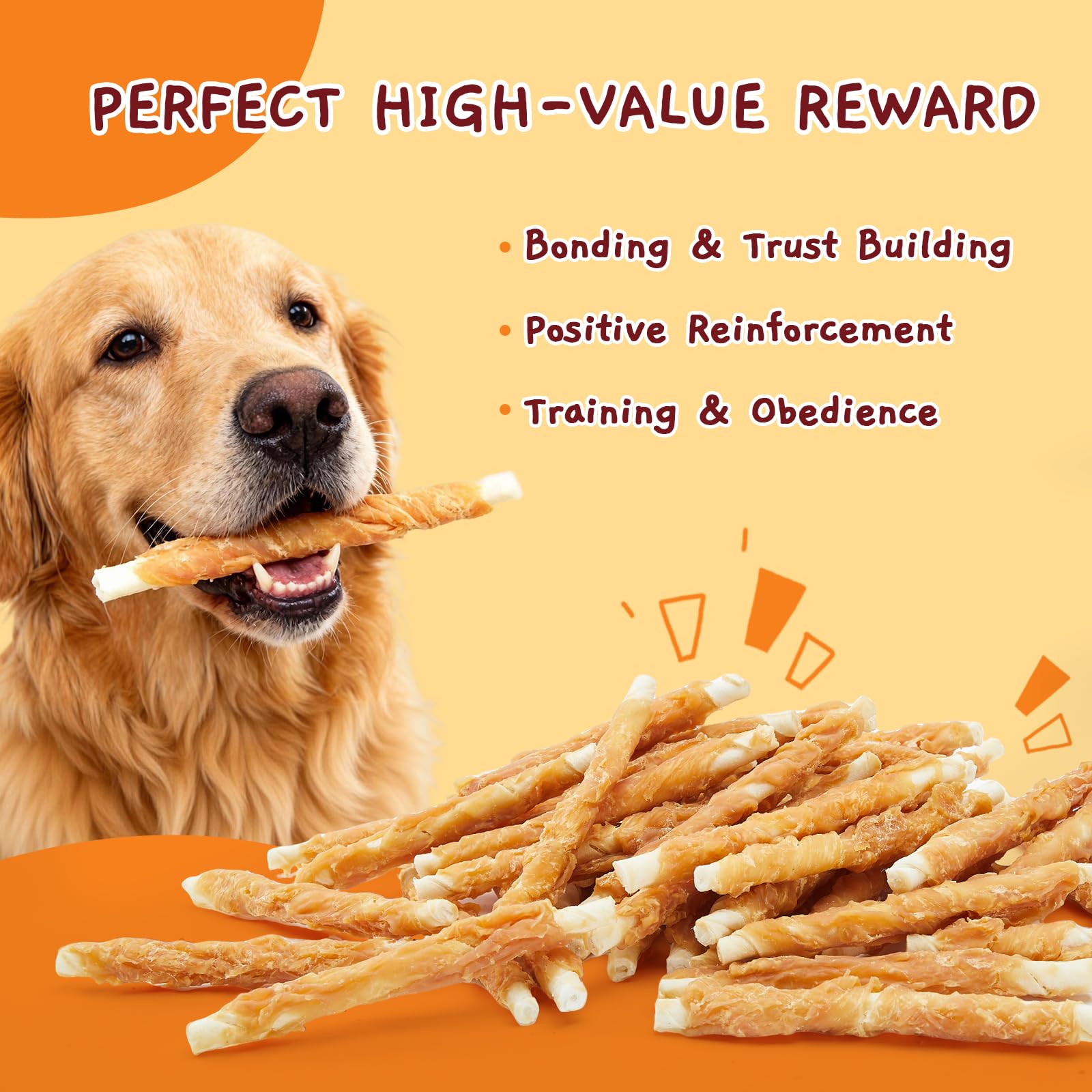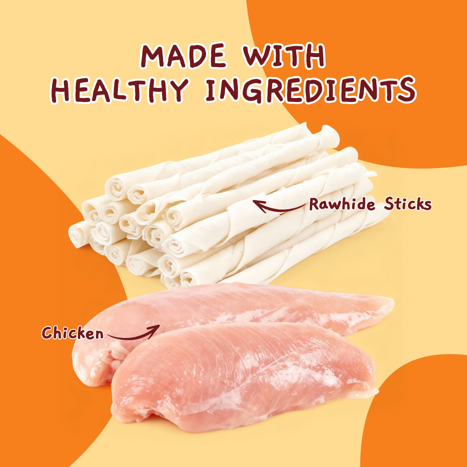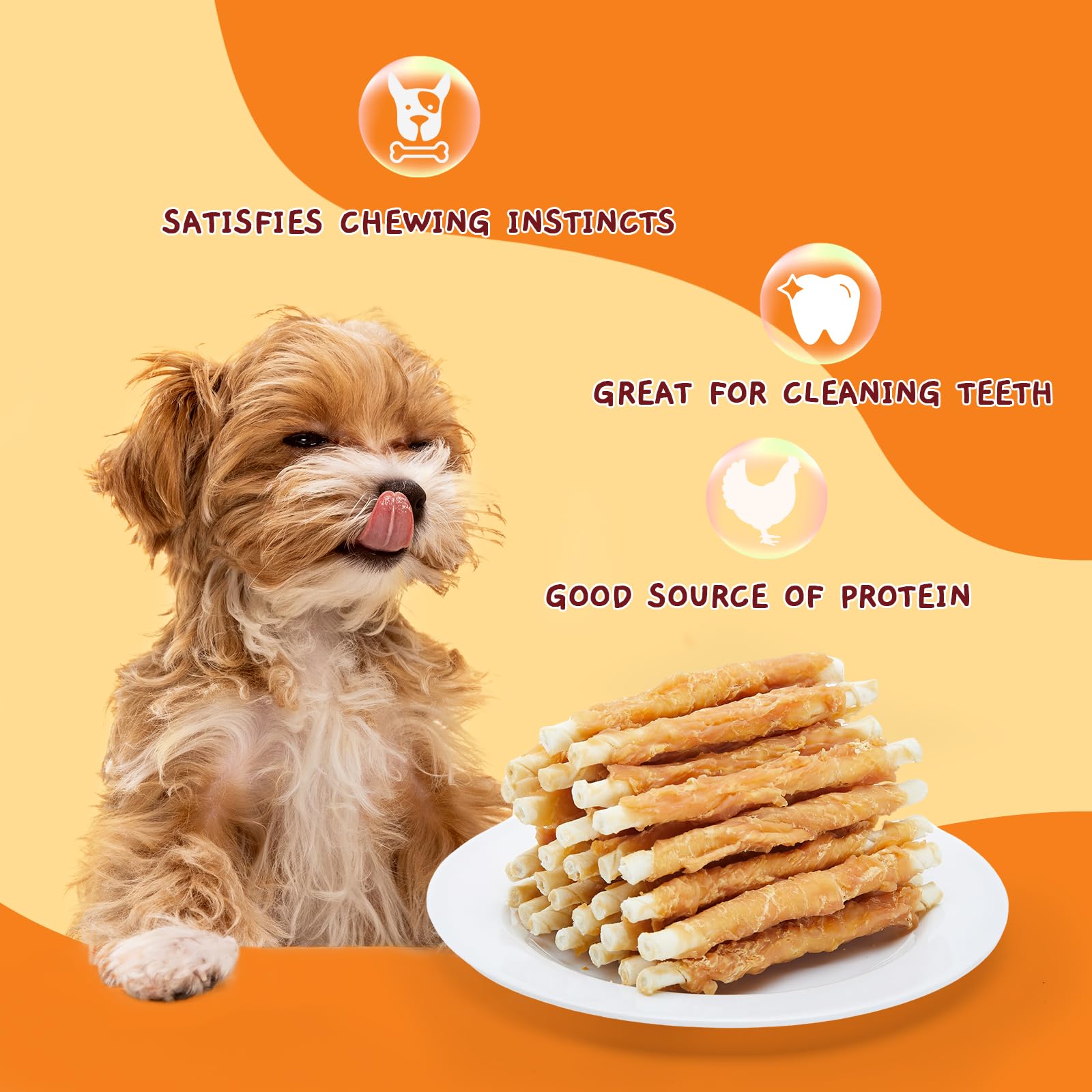 PREMIUM INGREDIENTS: Made with high-quality and fresh chicken, these rawhide sticks are specially crafted for dogs with sensitive stomachs-no artificial colors, additives or preservatives, they are gentle and easy to digest, supporting healthy gastrointestinal absorption for your furry friends