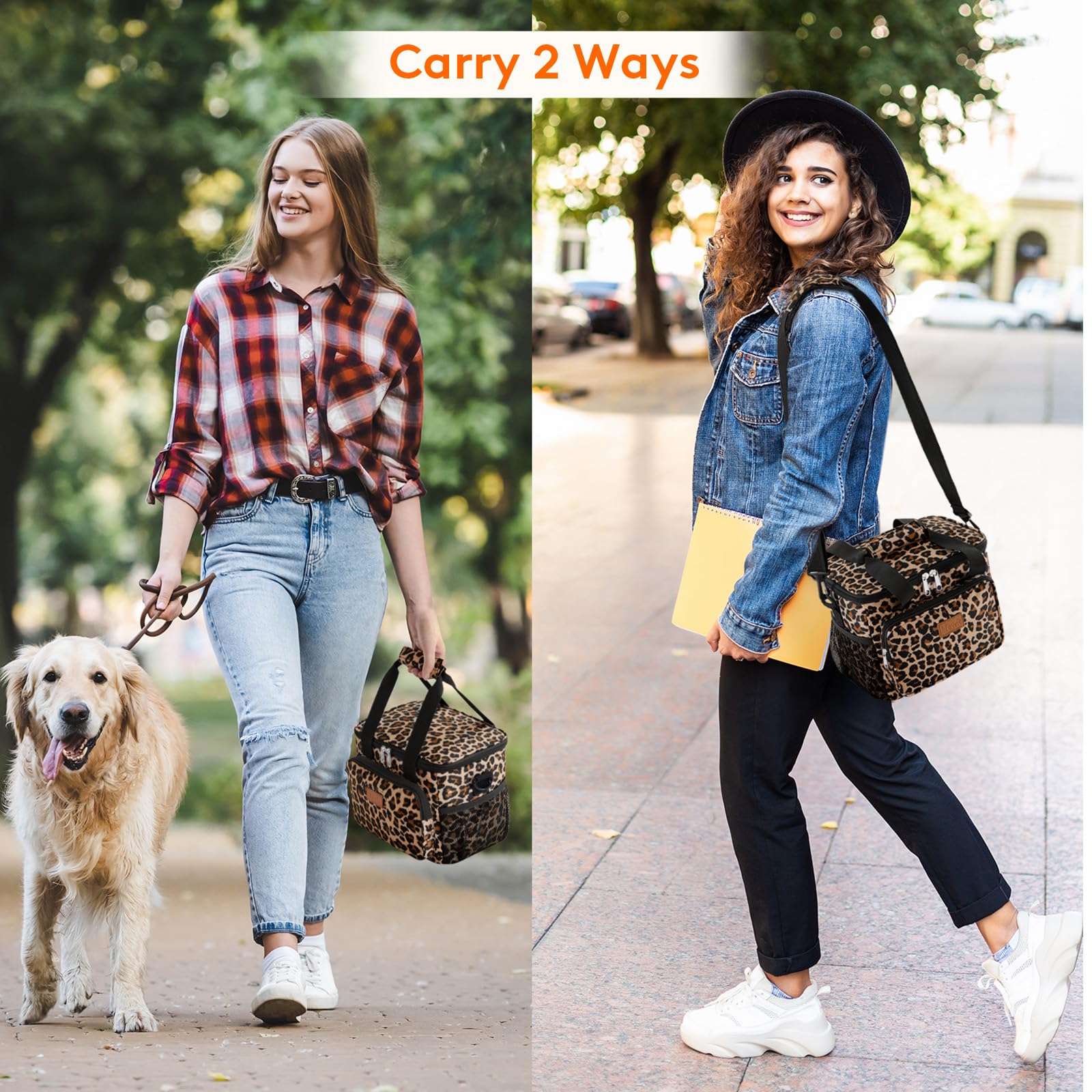 Convenient & Portable: The lid of this cooler lunch bag can be opened up widely with strong two-way zippers, which means you can put your lunch container into the bag and take out of the bag vertically. Prevent liquids from leaking out of the container and soiling inside the bag. Tough handles and shoulder strap allows you to carry it easily. Moreover, the front and side extra pocket can hold small items like keys and earbuds